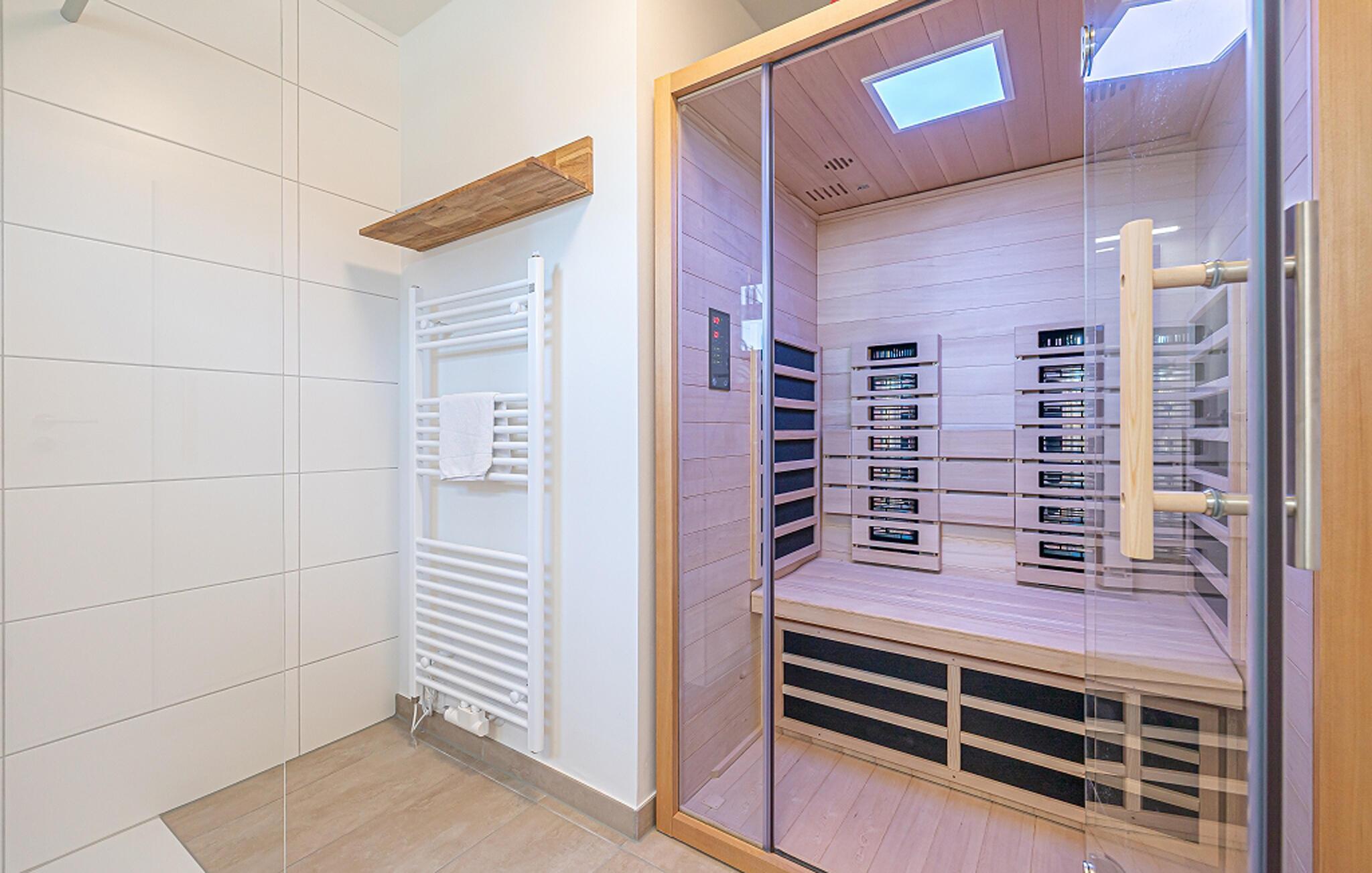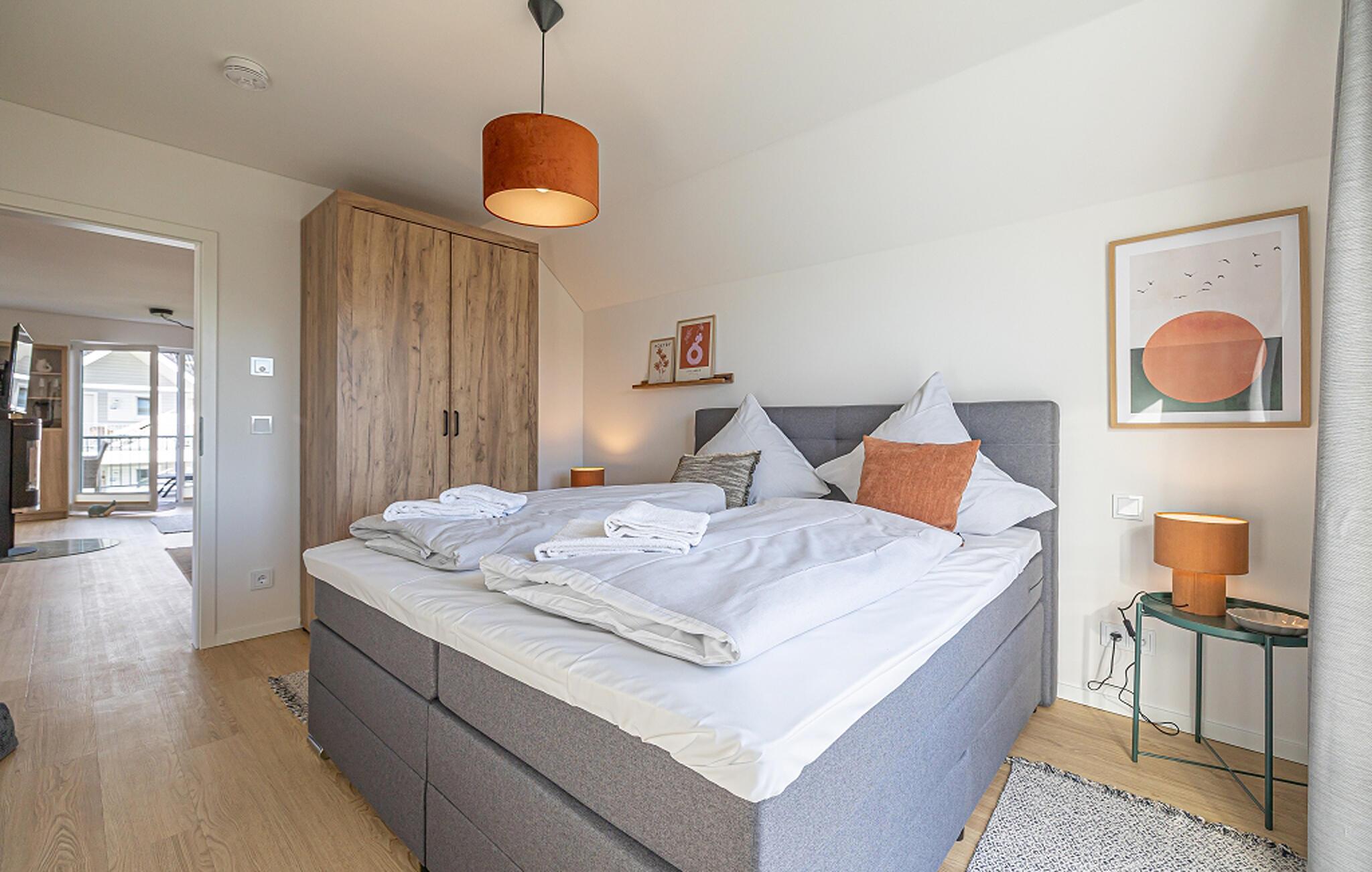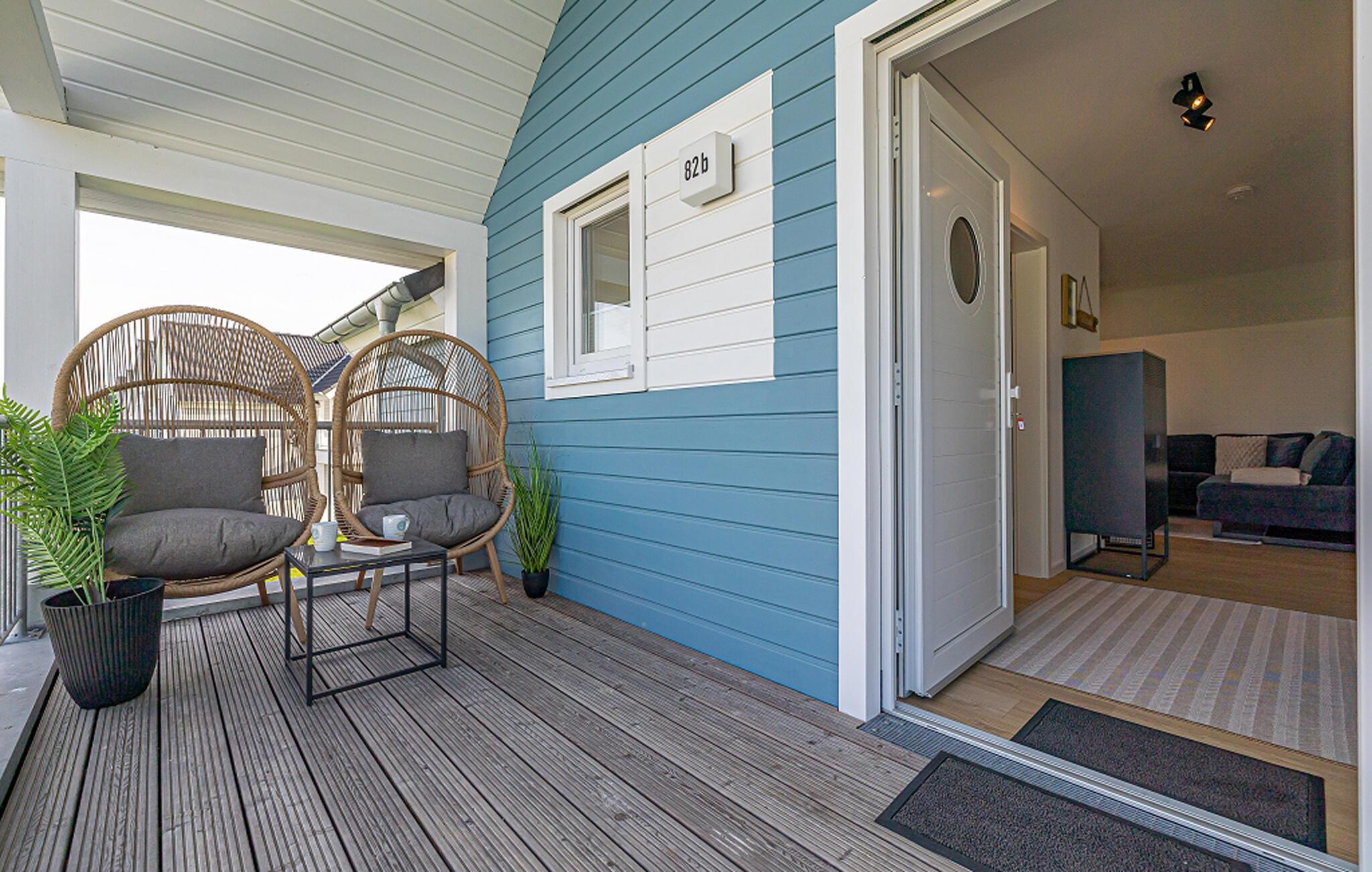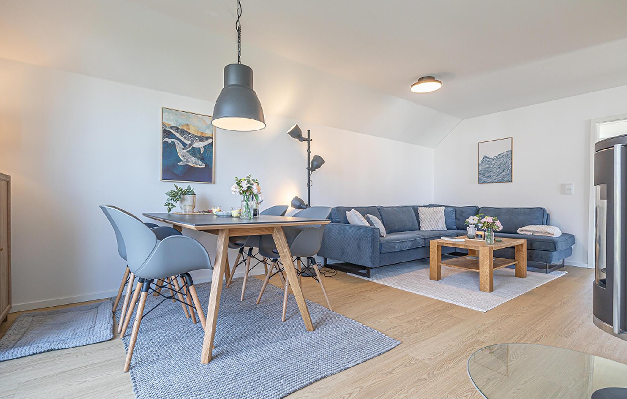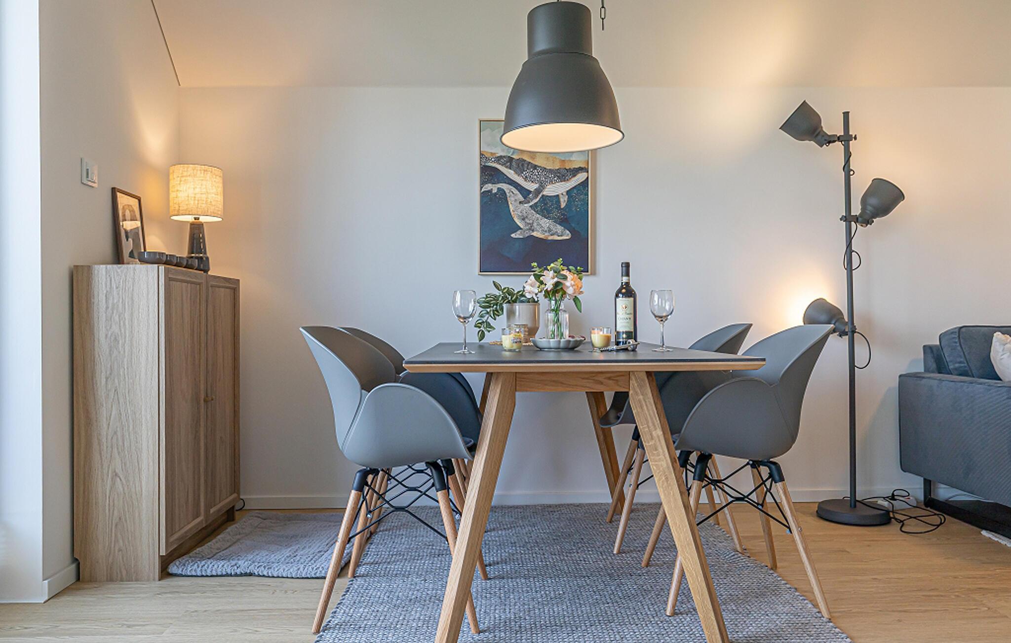 Die moderne und stilvolle Wohnung empfängt Sie in hervorragender Lage nahe dem Strand und eignet sich bestens für einen Urlaub mit wunderbaren Stunden am Meer und spannenden Unternehmungen in der Umgebung. Entspannen Sie nach einem aktiven Tag in der Infrarotsauna und machen Sie es sich am behaglich knisternden Kaminofen gemütlich.