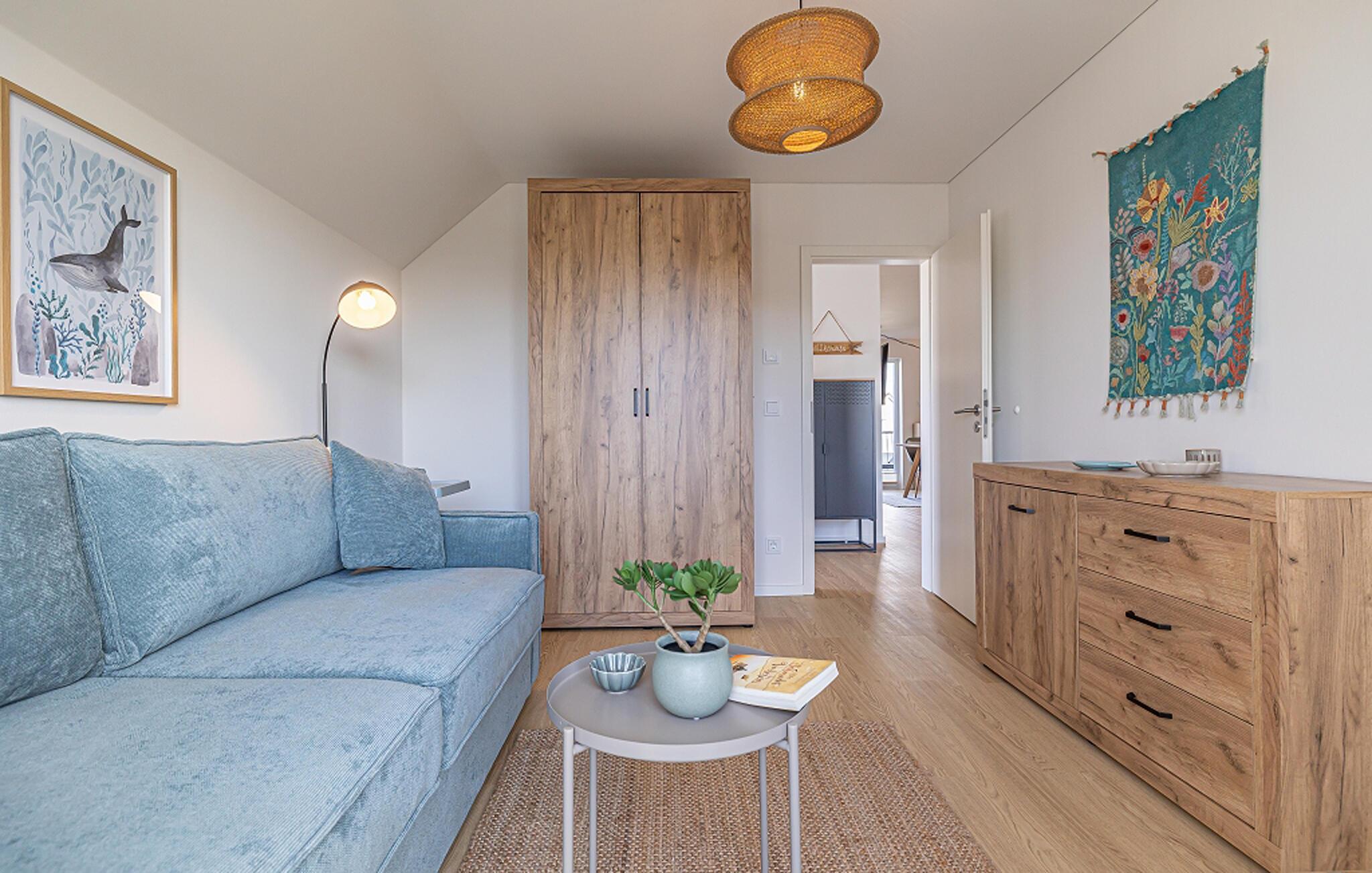 Komfortable Ferienwohnung im OstseeResort Olpenitz mit Kamin, Infrarotsauna und Balkon nahe Strand und Hafen.