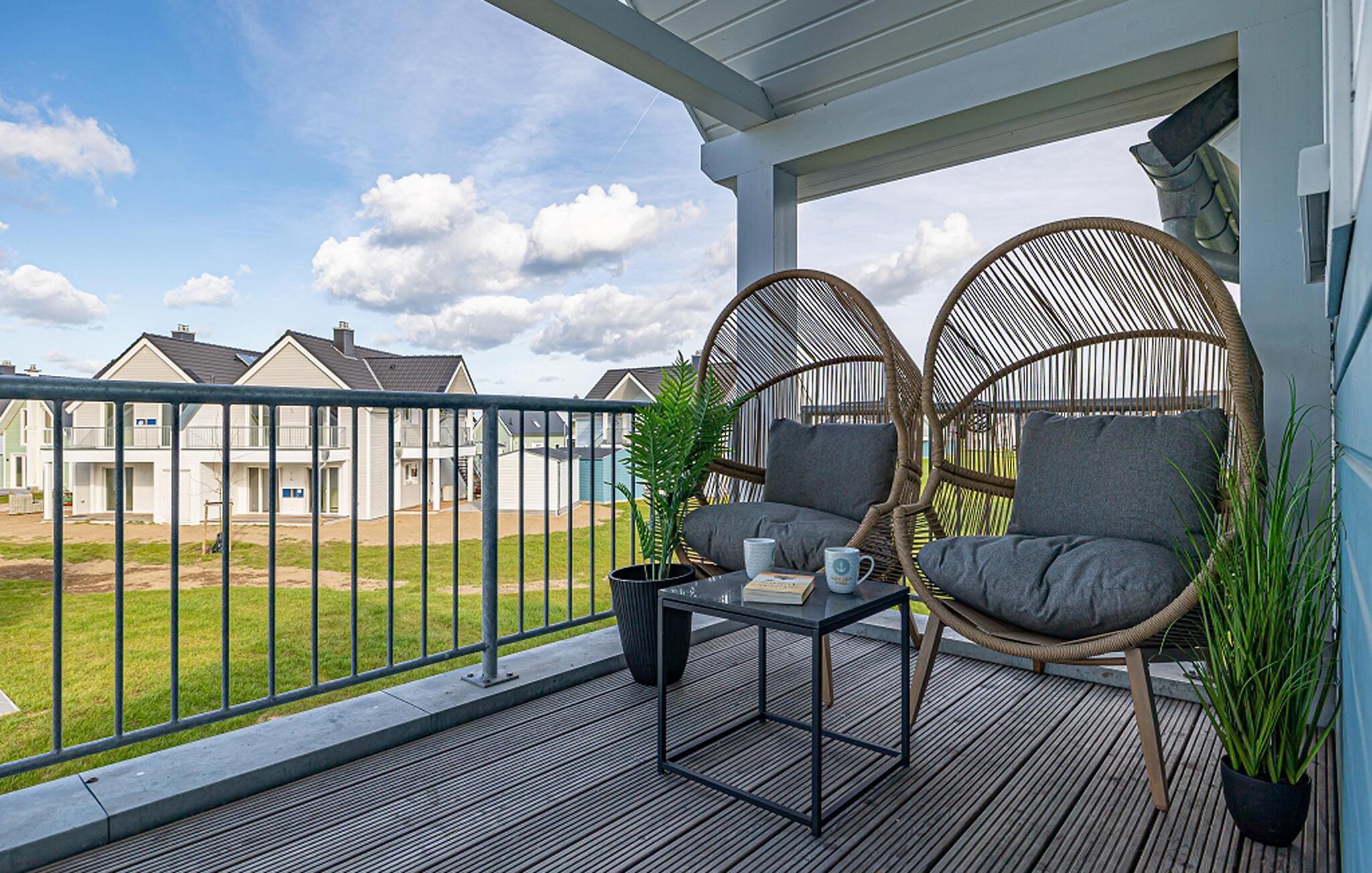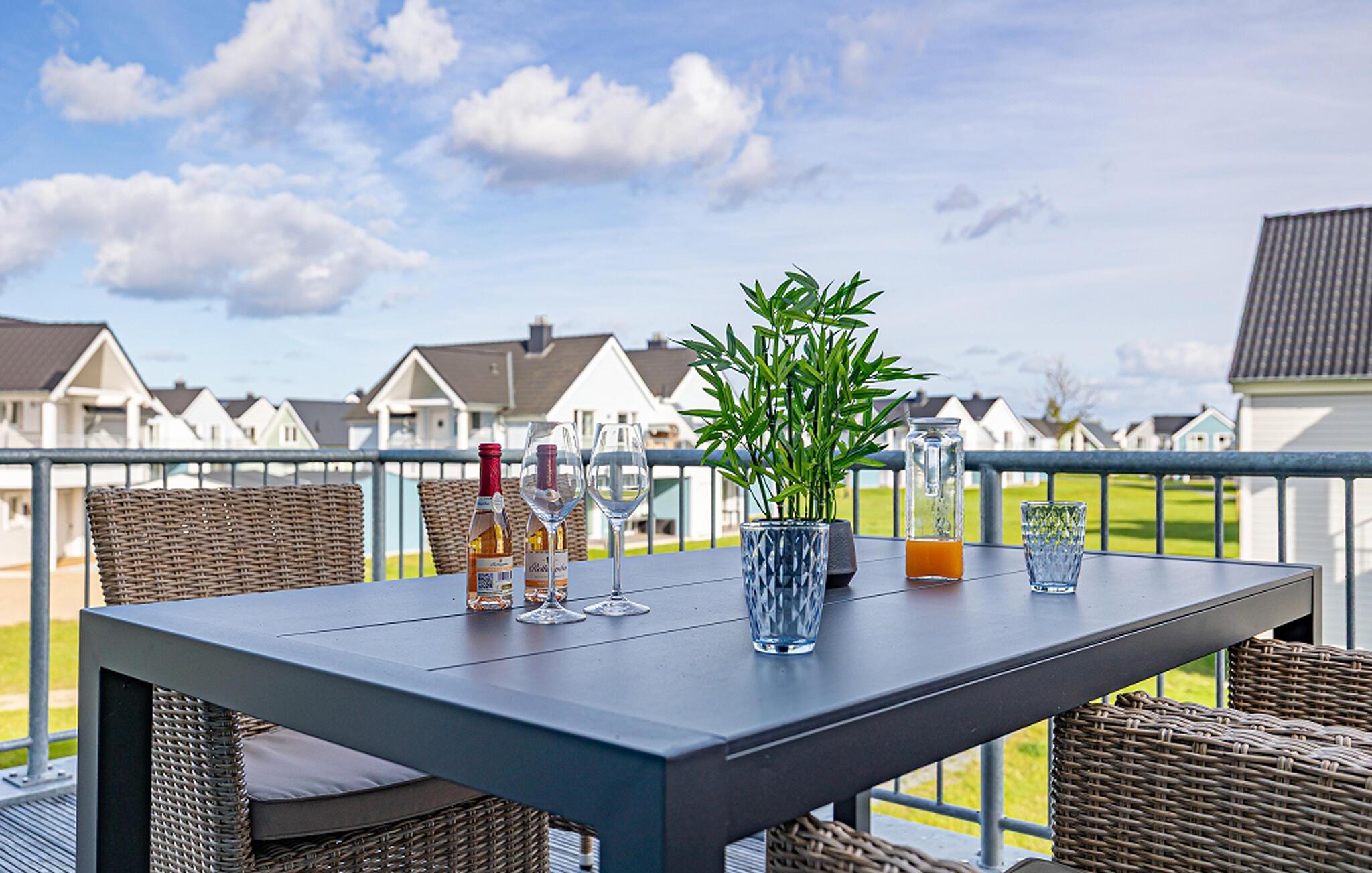 Auch auf dem Balkon können Sie viele entspannte Stunden verbringen, servieren Sie an warmen Tagen das Abendessen und ein paar kalte Getränke im Freien.