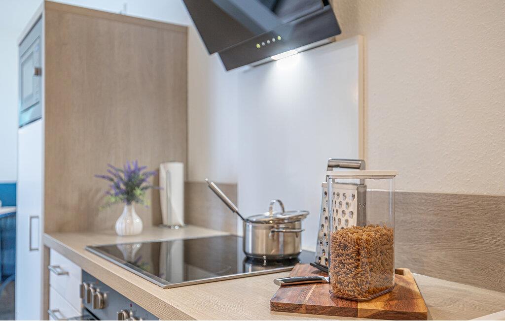 Genießen Sie in dieser Ferienwohnung stilvolle Erholung mit Meerblick und modernem Komfort.