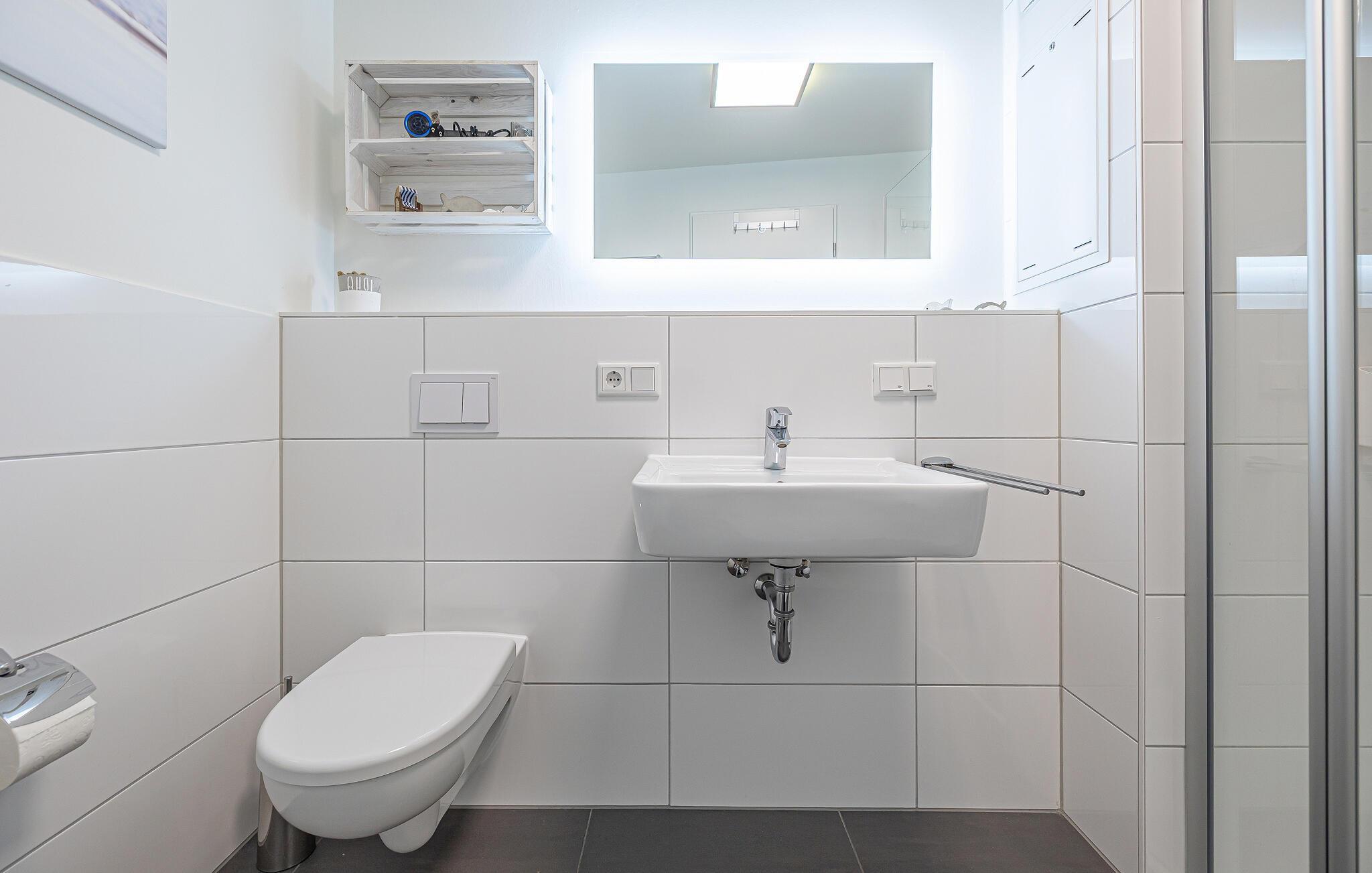 Badezimmer (nr. 1) - WC. Warmes und kaltes Wasser. Dusche
