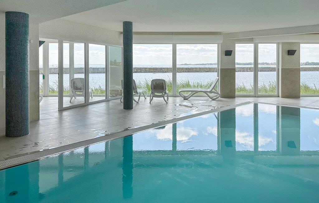 Gönnen Sie sich einen traumhaften Urlaub in diesem komfortablen Ferienhaus mit Innenpool, Sauna und Meerblick.