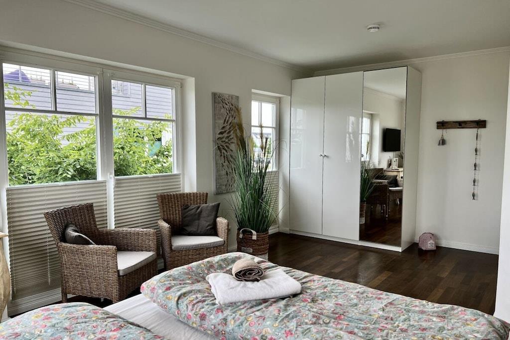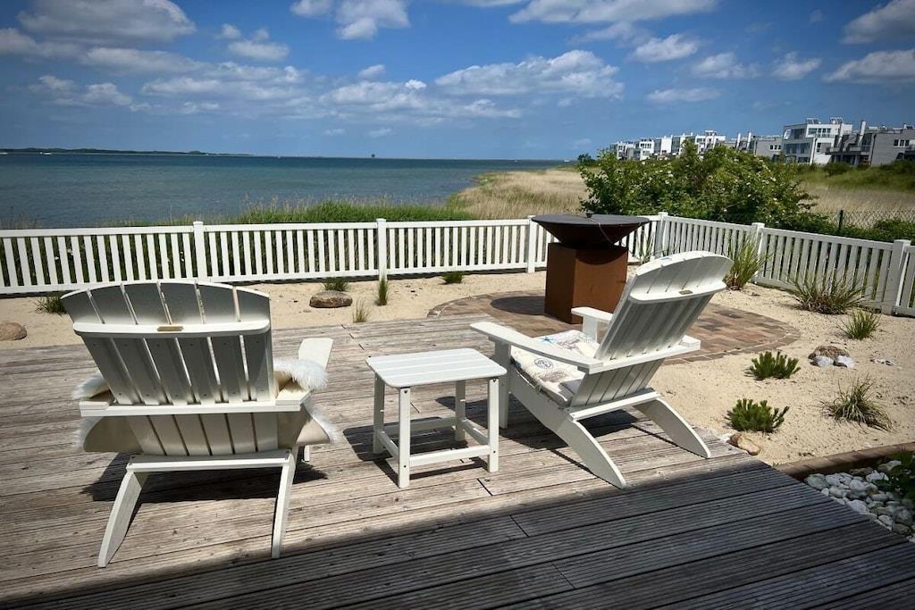 Exklusiv, edel und elegant, in der ruhigen Straße „Am Albatrosplatz 7“ im Ostseeresort Olpenitz, präsentiert sich das außergewöhnliche, alleinstehende Traumferienhaus „Sliminde by Seeblick Ferien ORO". Es ist einzigartig vom Baustil und überzeugt mit traumhaften Panorama-Ansichten auf Ostseefjord Schlei. Wer nach Erholung im gehobenen Stil strebt, wird hier sein neues Lieblings-Feriendomizil finden. Hier heißt es: Ankommen und Wohlfühlen. Im Fokus steht der perfekt umgesetzte lichtdurchflutete Wohn- und Essbereich mit bodentiefen Fenstern, einer gemütlicher Echtleder Sitzlandschaft, welche zusätzlich zwei Schlafplätze bietet und dem großen Esstisch, dem Mittelpunkt der Wohnung. Die geschmackvolle Einrichtung, verleihen dem Herz der Wohnung Charme und außergewöhnlichen Wohnkomfort, wobei die Fußbodenheizung das I-Tüpfelchen aufsetzt. Der holzbefeuerte Kaminofen, mit seinem prasselnden Feuer, sorgt in diesem gemütlichen Ambiente selbst bei nordischen Schietwettertagen, für heimelige Kuschelstunden. Der 55 Zoll Smart TV mit HD+ und das Internet Radio sorgen ebenfalls für Indoor-Unterhaltung damit man den Bezug zur Realität in diesem Ambiente nicht ganz verliert. Die um das ganze Haus verlaufene Veranda bietet die Möglichkeit immer ein windgeschütztes Plätzchen zu finden und die Zeit am Meer zu genießen. Der im Anschluss an die Terrasse in Richtung Wasser umzäunte Garten mit kleinem Strandabschnitt ist das Highlight und definitiv einzigartig. Ein Strandkorb, Gartenmöbel und zwei Adirondack-Stühle mit Tisch und Fußteil stehen zur Verfügung. Der Blick fällt hier auf die atemberaubende Wasserkulisse der Schlei. Unvergessliche Sonnenuntergänge mit vorbeifahrenden Segelschiffen, Möwen in der Luft und die umgebende Ostseebrise ist ein Naturschauspiel, von dem man nicht müde wird, zuzuschauen. Das ist Urlaub mit „Seeblick Ferien ORO“ in diesem Traumhaus „Sliminde“. Sollten Sie das Los gezogen haben, Ihre Mannschaft zu verköstigen, ist das auf keinen Fall eine Niete. Die offen gestaltete Küche bietet an hochwertiger Technik und Ausstattung alles, was das Kochherz begehrt und lässt die vermeintliche Arbeit zur Freude werden. Bis ins kleinste Detail liebevoll eingerichtet. Es liegt sogar ein Kindergeschirr bereit. Die direkt an den Essbereich angrenzende Terrasse verbindet den Wohnbereich mit der Natur und verspricht gesellige Grillabende der besonderen Art mit dem Ofyr-Grill oder romantische Candle-Light Dinners bei traumhafter Kulisse und Ambiente Beleuchtung. Für zusätzlichen Komfort sorgt ein Gäste WC, sowie ein Hauswirtschaftsraum mit Waschmaschine, Kondensations-Trockner und Spüle, welcher das Erdgeschoss komplettiert. Über eine imposante Wendeltreppe gelangt man in das Obergeschoss. Zwei großzügige Schlafzimmer mit hochwertigen Boxspringbetten für vier Personen, garantieren einen wunderbar entspannten Schlaf und schöne Träume. Doch möchte man eigentlich bei diesem Ausblick schlafen...? Das Beruhigende ist: man wacht mit demselben traumhaften Ausblick wieder auf. Jedes Schlafzimmer punktet insbesondere mit dem direkten Zugang zum Balkon und dem traumhaften Ausblick auf die Schlei, sowie einen kleinen Schreibtisch für diejenigen, die im Urlaub ein wenig Arbeiten müssen. High Speed WLAN über Glasfaser und ein 43 Zoll Smart TV in jedem Schlafzimmer, ist in diesem Ferienobjekt selbstverständlich. Das voll ausgestattete Badezimmer im Obergeschoss, mit bodengleicher Dusche, bietet maritime Wellness-Momente. In der separaten finnischen Sauna lässt es sich zu jeder Jahreszeit tiefenentspannen. Vor dem Haus stehen zwei eigene Parkplätze und ein abschließbarer Fahrradschuppen mit 220V Stromanschluß zur Verfügung. Abgerundet wird dies durch die Elektroladesäule (Wallbox 11Kw mit Typ2 Stecker) für das Elektroauto. !****Strom- und Heizkosten (Gas) sind nicht im Reisepreis enthalten und werden separat nach Verbrauch abgerechnet. Im Traumferienhaus Sliminde ist maximal ein Hund gegen Gebühr erlaubt. Bettwäsche und Handtücher können in Form von Wäschepaketen (ca. 21,-EURO pro Person) direkt bei der Agentur Seeblick Ferien ORO gebucht werden, Ihre Betten wären dann bei Anreise bereits bezogen****! Eine Kaution ist bei Anreise in Höhe von 300,-EURO in BAR zu hinterlegen, diese wird sofort beim Check Out nach Abzug der Verbrauchskosten, zurückerstattet wenn keine Schäden festgestellt wurden. Das Ostseeresort Olpenitz befindet sich momentan noch in einem ständigen Wandel mit Bautätigkeit. Dies ist bei der Preisberechnung bereits berücksichtigt und stellt keinen Mangel dar.
