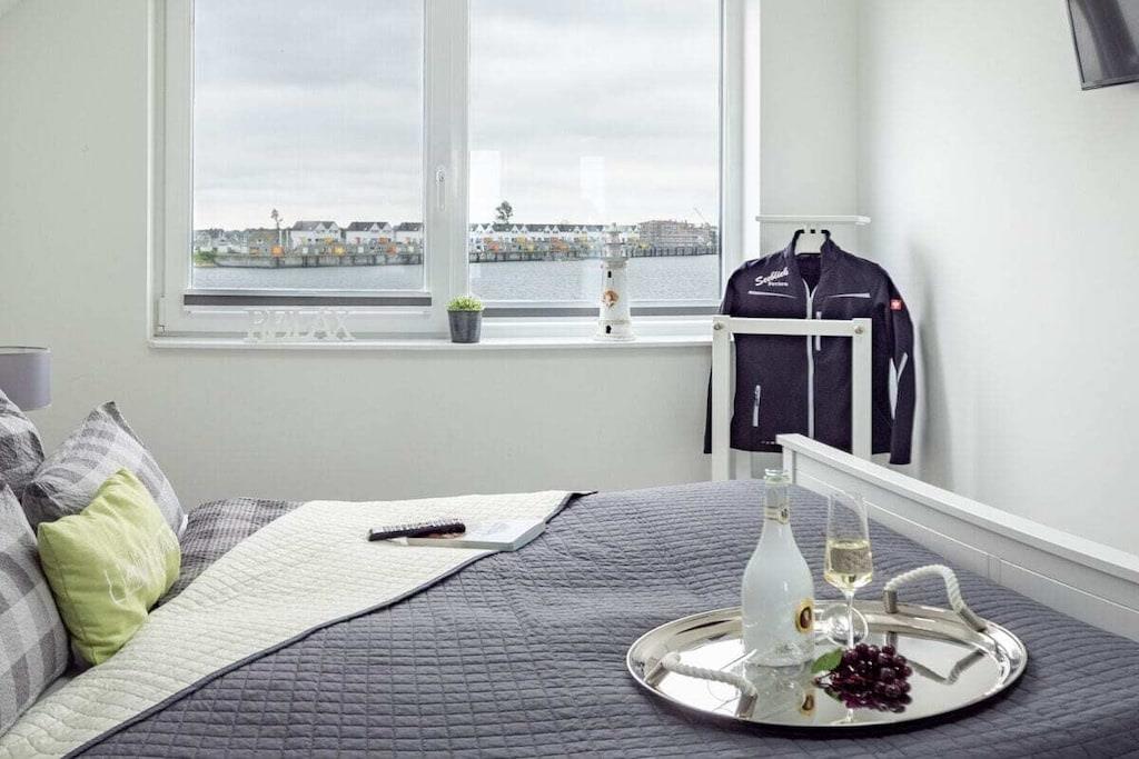 Direkt an der Ostsee entsteht in einer der schönsten Urlaubsregionen Deutschlands, im Nordosten Schleswig-Holsteins direkt zwischen Schleimündung und Ostsee ein neues, einzigartiges Ferienresort der Extraklasse, das durch seine Vielfalt besticht.Das Ostseeresort Olpenitz soll Nordeuropas größtes maritimies Ferienresort werden. Eingebettet in eine unvergleichliche Natur, ausgestattet mit allem, was den Aufenthalt das ganze Jahr über angenehm und abwechslungsreich macht: eine große Marina, Restaurants, Cafés, Shops und ein Freizeitangebot, das keine Wünsche für eine neue Erlebnis-Urlaubs-Welt offen läßt. Umgeben von Wasser – auf einer schmalen Landzunge zwischen dem Ostseefjord Schlei und der Marina des OstseeResort Olpenitz gelegen, in unmittelbarer Nähe zum kleinen Strand– überzeugt dieses Ferienobjekt mit seiner Großzügigkeit, einem traumhaften Wasserblick und ganztags Sonne auf dem gen Süden ausgerichtetem Balkon. Bei diesem Ferienobjekt handelt es sich um eine Maisonette Wohnung im ersten und zweiten Obergeschoss. Die Ferienwohnung Ostseeflair by Seeblick Ferien ORO betritt man über eine Außentreppe, von hier könnte man sofort auf den ersten Südbalkon (ca.25 m²) gelangen, der mit einem Strandkorb, Teak-Deckchair und weiteren gemütlichen Möbeln zum Relaxen auf Sie wartet. Der Eingangsbereich führt in den Wohn-und Essbereich mit zusätzlichem Duschbad und WC. Auf der zweiten Ebene befindet sich Ihr Badezimmer, dies lässt Wellnessherzen höherschlagen, denn es verfügt über eine bodengleiche XXL Walk-In-Dusche, eine Whirlpool-Badewanne, eine Sauna (Infrarotkabine) mit Farblichttherapie und ein Radio mit Bluetooth. An der Wellnessoase vorbei, folgen zwei gut gestaltete Schlafzimmer mit Platz für fünf Erwachsene und einen traumhaften Blick aufs Wasser. Das Masterbedroom verfügt über ein Doppelbett (1,80 x 2,00) mit zusätzlichem 40 Zoll Smart TV, Blick auf die Marina, während ein Etagenbett (unten1,40 x 2,00 max.180kg), (oben 90x200 max. 75 kg) für 3 Personen im zweiten Schlafzimmer mit Blick auf die Schlei, auf Sie wartet. Im Fokus steht aber der perfekt umgesetzte lichtdurchflutete Wohn- und Essbereich mit Holz befeuertem Kaminofen, bodentiefen Panoramafenstern, welcher Loftartig gestaltet ist, sodass alle Räume fließend ineinander übergehen und sich der Wohnbereich mit der Natur verbindet. Die Integration der offenen Küche mit hervorragender Ausstattung und funktionalem Design, steht dem gemütlichen Beisammensein auch beim Zubereiten von allerlei Köstlichkeiten nichts im Wege. Die Wasserkulisse vor dem Essbereich mit 180 Grad Panoramablick auf den gesamten Hafen und die Ostsee ist hierbei zum Greifen nah – das ist Ostseeflair. Den zweiten Nordbalkon (ca. 8m²) betritt man über den Wohnbereich, hier können es sich unsere Gäste auf einer zusätzlichen Bestuhlung gemütlich machen und bei einem Sundowner mit Abendsonne den Tag ausklingen lassen. Bei dieser Wohnung sind spektakuläre Sonnenlichtspiele durch die zwei Balkone in Süd- und Nordausrichtung zu erwarten. Der Einrichtungsstil entspricht der exklusiven Lage der Ferienwohnung: Landhausstil gepaart mit klaren Farben und Formen versprechen Ruhe und Rückzug, während einzelne Farbakzente für erfrischende Leichtigkeit sorgen. Die gesamte Ferienwohnung lässt sich über die Fußbodenheizung einfach temperieren und bietet dank des Kaminofens und der Sauna das ganze Jahr über eine angenehme Wärme und eine gemütlich-wohlige Atmosphäre. Für Unterhaltung sorgen im Wohnbereich ein 55 Zoll Smart TV mit Bluetooth und Samsung Soundbar, eine Playstation, Blu-ray-Player, ein separates Internet Radio sowie eine Spielesammlung. Der Weber Elektrogrill rundet die hochwertige Ausstattung ab. Sollten Sie das Los gezogen haben im Urlaub arbeiten zu müssen, ist das auf keinen Fall eine Niete. In dieser Unterkunft befindet sich ein portabler Schreibtisch, den Sie nach Ihren Vorlieben, nach der besten Aussicht oder Sonnenausrichtung, platzieren können. Darüber hinaus verfügt die Wohnung über einen Pkw-Stellplatz mit Elektroladesäule für Ihr Elektroauto direkt am Haus und einen abschließbaren Fahrradschuppen. Das laden an der Wallbox kann über die Kreditkarte abgerechnet werden, 1 kWh = 59 Cent. Solch eine Lage gibt es in Deutschland an der gesamten Ostseeküste wohl kaum noch ein zweites Mal! Wer einen ruhigen naturnahen Urlaub liebt, dürfte hier sicherlich “seine schönste Zeit des Jahres” verbringen können, auch wenn Umfeld und Infrastrukur im Ostseeresort Olpenitz momentan noch einem ständigen Wandel mit Bautätigkeit unterliegt. Dies ist bei der Preisberechnung bereits berücksichtigt und stellt keinen Mangel dar. Haustiere sind in dieser Fewo nicht gestattet. Unsere Fewo ist ein Nichtraucherobjekt. Kostenloses Highspeed WLAN über Glasfaser Ein Kinderreisebett und ein Kinderhochstuhl stehen für unsere kleinen Gäste bereit. Bettwäsche/ Handtücher können selbst mitgebracht oder aber in Form von Wäschepaketen ca. 21,00EURO pro Person von unserer Agentur ausgeliehen werden. Die Betten wären dann bei Anreise bezogen. Die Wäschepakete müssen Sie separat bestellen. Heizungs-, Strom- und Wasserkosten sind im Mietpreis der Fewo Ostseeflair by Seeblick Ferien inbegriffen. Eine Kaution in Höhe von 300,-EURO sind bei Anreise zu hinterlegen, diese werden sofort bei Check Out erstattet. Bei Fragen oder Problemen vor Ort stehen wir Ihnen gern zur Verfügung. Vor Ort ist außerdem unser Gästeservice, der Ihnen gern weiterhilft und mit Ihnen, ganz im Gegensatz zu einigen Mitanbietern, gemeinsam in die Wohnung fährt und Ihnen alles zeigt. Bei uns geniesen Sie die exklusivität eines persönlichen Check In und Out in Ihrer gebuchten Ferienwohnung. Es gelten verschiedene Preise und Mindestaufenthalte zu verschiedenen Saisonzeiten, welche technisch bedingt von der angegebenen Nächteanzahl abweichen können. Last Minute Anfragen und Kurzaufenthalte bis 2 Nächte, funktionieren nur direkt. Bitt
