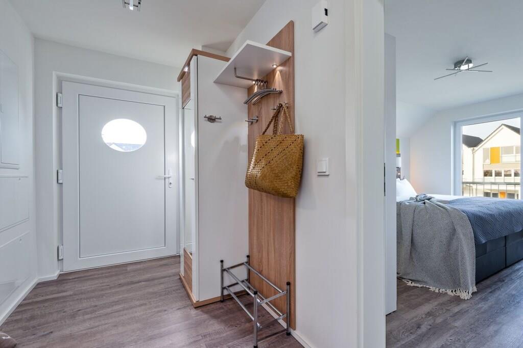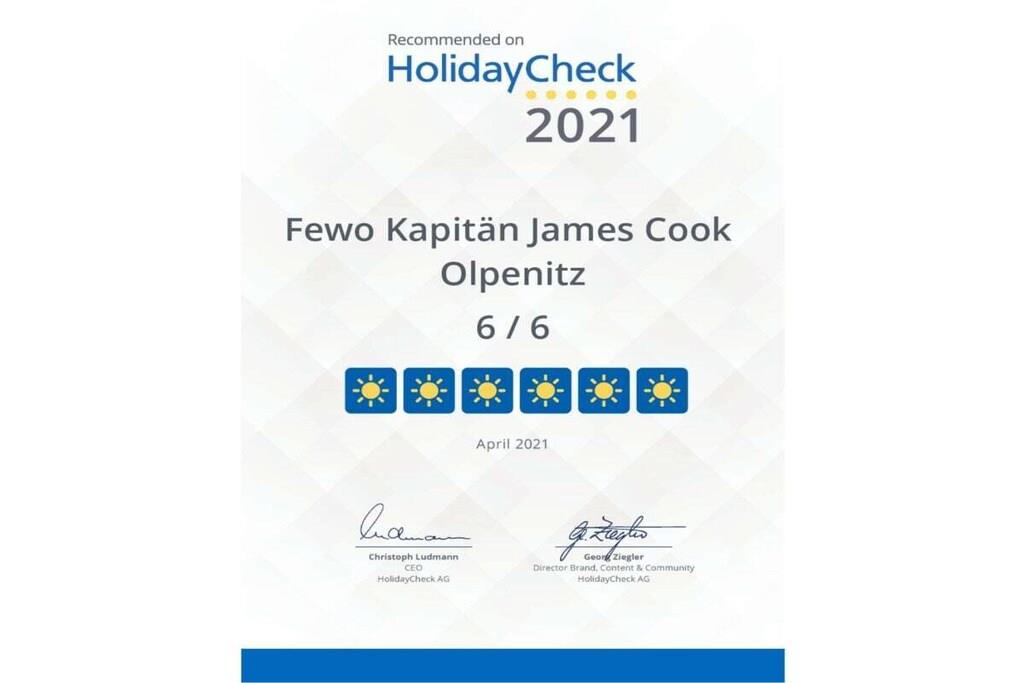 Direkt vom Eigentümer. Idyllisch auf der Kapitäns-Halbinsel des Ostsee Resort Olpenitz, in der Kapitänsstraße gelegen, bietet unsere 3 Zimmer “Fewo Kapitän James Cook Olpenitz” von allen "Sternhäusern“ hier den mit Abstand schönsten Blick und die beste Lage, einen Anlaufpunkt für Erholungsurlaub auf 77m² in der ersten Etage. Die Fewo Käpt`n James Cook Olpenitz betritt man über eine Außentreppe zum überdachten ersten Balkon (10m²), dieser ermöglicht auch bei Regen, den Aufenthalt an der frischen Luft. Der Eingangsbereich führt vorbei an einem schönen Badezimmer, dies lässt Wellnessherzen höher schlagen, denn es verfügt über eine ebenerdig geflieste Walk In Dusche und über eine Sauna (Infrarotkabine) mit Farbblichttherapie. Auf der anderen Seite folgen zwei geschmackvoll eingerichtete Schlafzimmer mit Platz für vier Erwachsene und einen traumhaften Blick auf`s Wasser. Das Masterbedroom verfügt über ein Wasserbett mit mittlerer Beruhigung (1,80 x 2,20), während ein Boxspringbett (1,80 x 2,00) im zweiten Schlafzimmer, bei mit zusätzlichem Flat TV, auf Sie wartet. Im Fokus steht aber der perfekt umgesetzte lichtdurchflutete Wohn- und Essbereich mit Holz befeuertem Kaminofen, bodentiefen Fenstern, durch die sich der Wohnbereich mit der Natur verbindet. Die Integration der offenen Küche mit hervorragender Ausstattung und funktionalem Design, steht dem gemütlichen Beisammensein,auch beim zubereiten von allerlei Köstlichkeiten nichts, im Wege. Der runde Kaminofen zwischen Wohnzimmer und Essbereich verleiht dem Raum eine besondere Atmosphäre. Vor allem in den kalten Wintertagen verbreitet der Ofen ein kuscheliges Wohlfühlambiente mit angenehmer Wärme. Den großzügigen zweiten Balkon (Südbalkon14m²) betritt man über den Wohnbereich. Hier können es sich unsere Gäste auf einer bequemem Bestuhlung gemütlich machen und die Sonne so zu jeder Tageszeit genießen oder sich etwas leckeres auf dem Elektrogrill zubereiten. Bei dieser Wohnung sind spektakuläre Sonnenlichtspiele durch die zwei Balkone in Süd- und Westausrichtung zu erwarten. Der Einrichtungsstil entspricht der exklusiven Lage der Ferienwohnung: klare Farben und Formen, sowie der Einsatz natürlicher Materialien, versprechen Ruhe und Rückzug, während einzelne Farbakzente für erfrischende Leichtigkeit sorgen. Die gesamte Ferienwohnung lässt sich über die Fußbodenheizung einfach temperieren und bietet dank des Kaminofens und der Sauna das ganze Jahr über eine angenehme Wärme und eine gemütlich-wohlige Atmosphäre. Für Unterhaltung sorgen im Wohnbereich eine Musik-Anlage mit Bluetooth, Wlan, CD, SD und USB Slot, sowie eine Spielesammlung und Bücher. Darüber hinaus verfügt die Wohnung über einen Pkw-Stellplatz mit Elektroladesäule direkt am Haus. Bettwäsche/ Handtücher können selbst mitgebracht oder aber in Form von Wäschepaketen (ca.EURO 21,-p.Paket) ausgeliehen werden. Die Betten wären dann bei Anreise bezogen. Der Buchungskalender hier auf Traum Ferienwohnungen ist immer TOP Aktuell. Buchungslücken sind buchbar (auch nur eine Übernachtung). Schreiben Sie uns unverbindlich an.