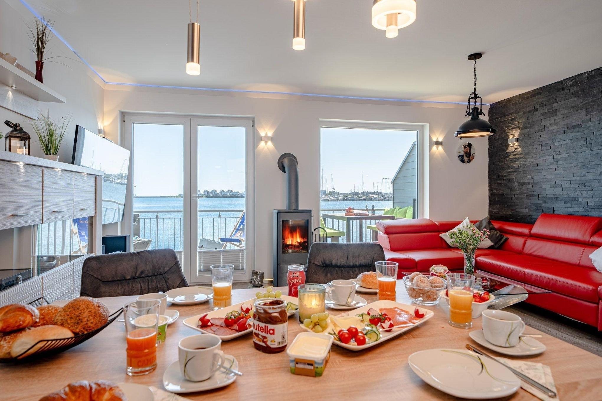 Modern eingerichtetes Ferienhaus mit Sauna, Wasserbett und Meerblick in Olpenitz.