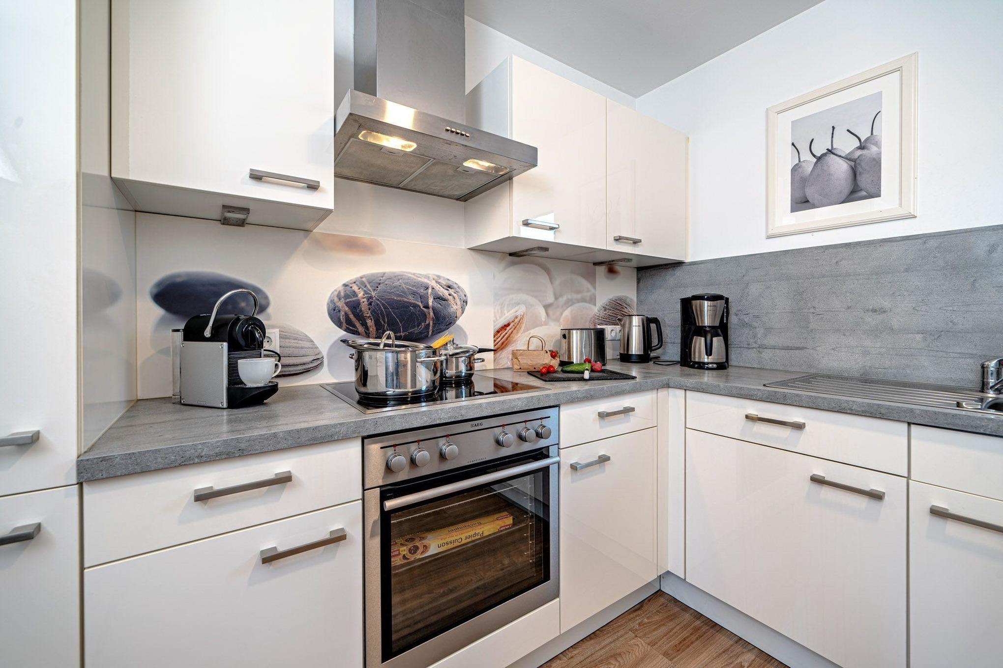 In der hochwertig ausgestatteten Küche stehen Ihnen eine Nespressomaschine für den perfekten Start in den Tag zur Verfügung. Ein extra Gefrierschrank ist in der Küche integriert.