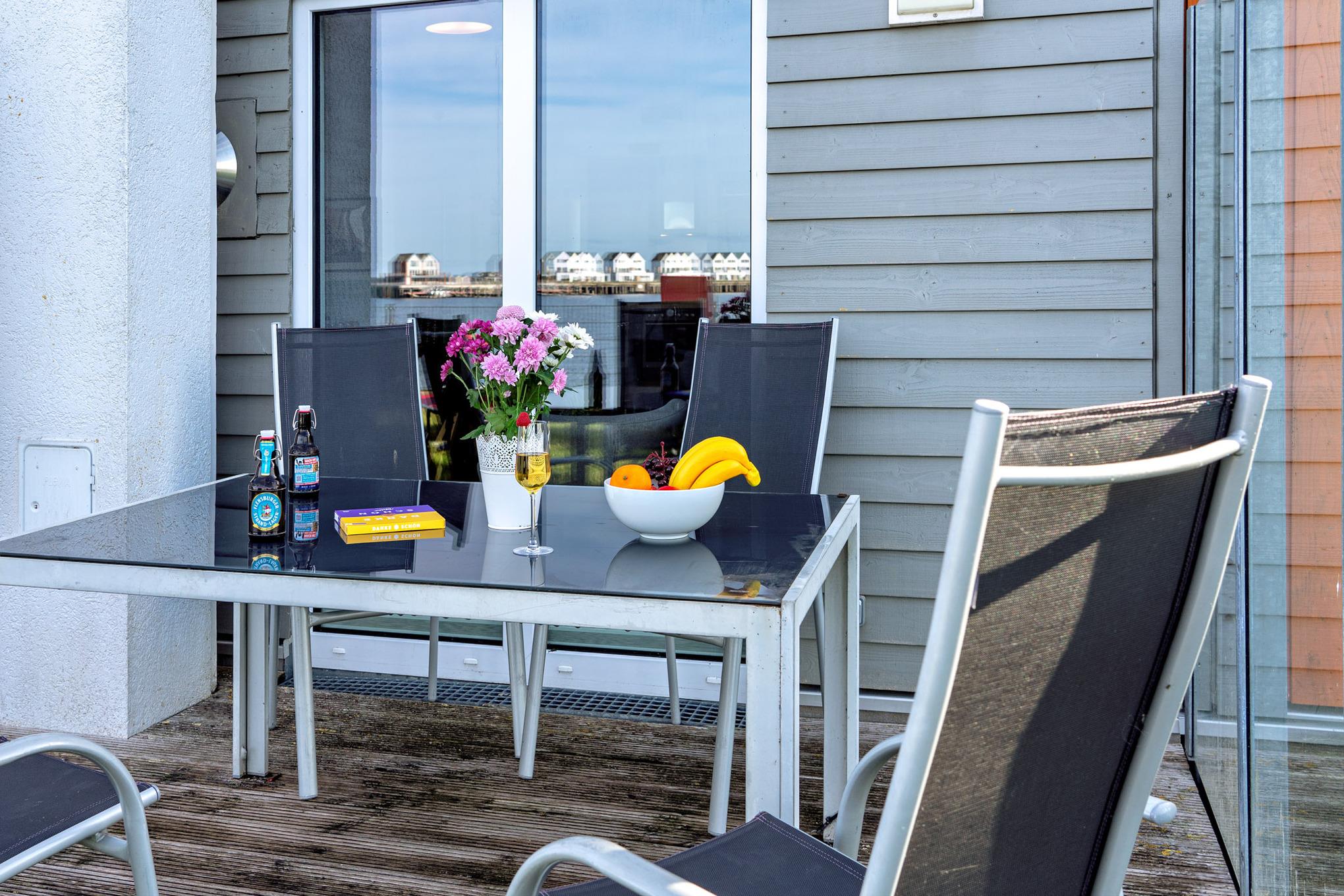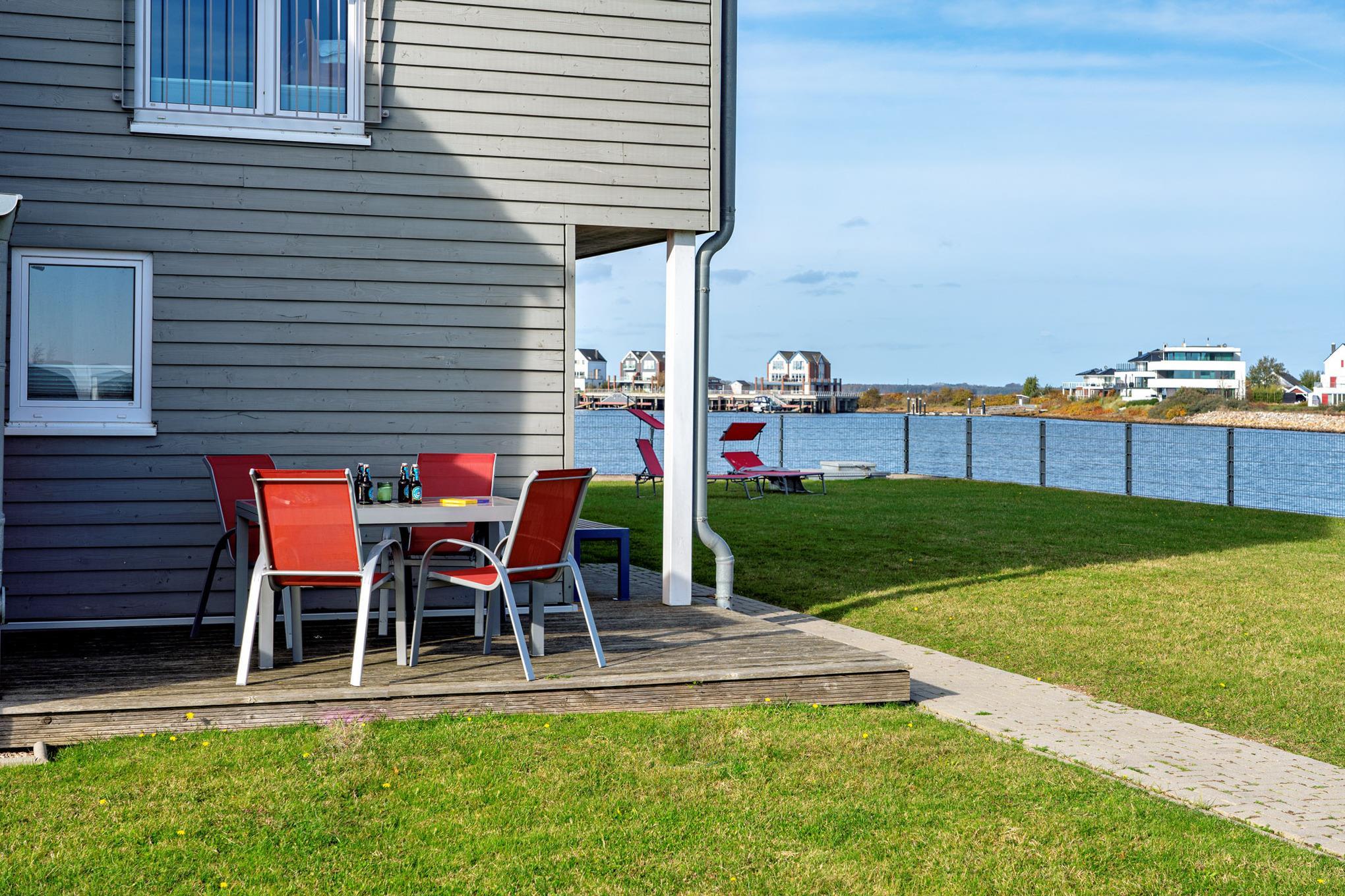 Das Ferienhaus Am MEER verfügt über eine Terrasse vor und hinter dem Haus. Von hier aus können Sie das "Hafenkino" mit vorbeifahrenden Segel- und Sportbooten hautnah erleben. Die eigene riesige exklusive Rasenfläche direkt am Haus lädt zum Verweilen und Spielen ein - der perfekte Ort für erholsame Stunden im Freien.