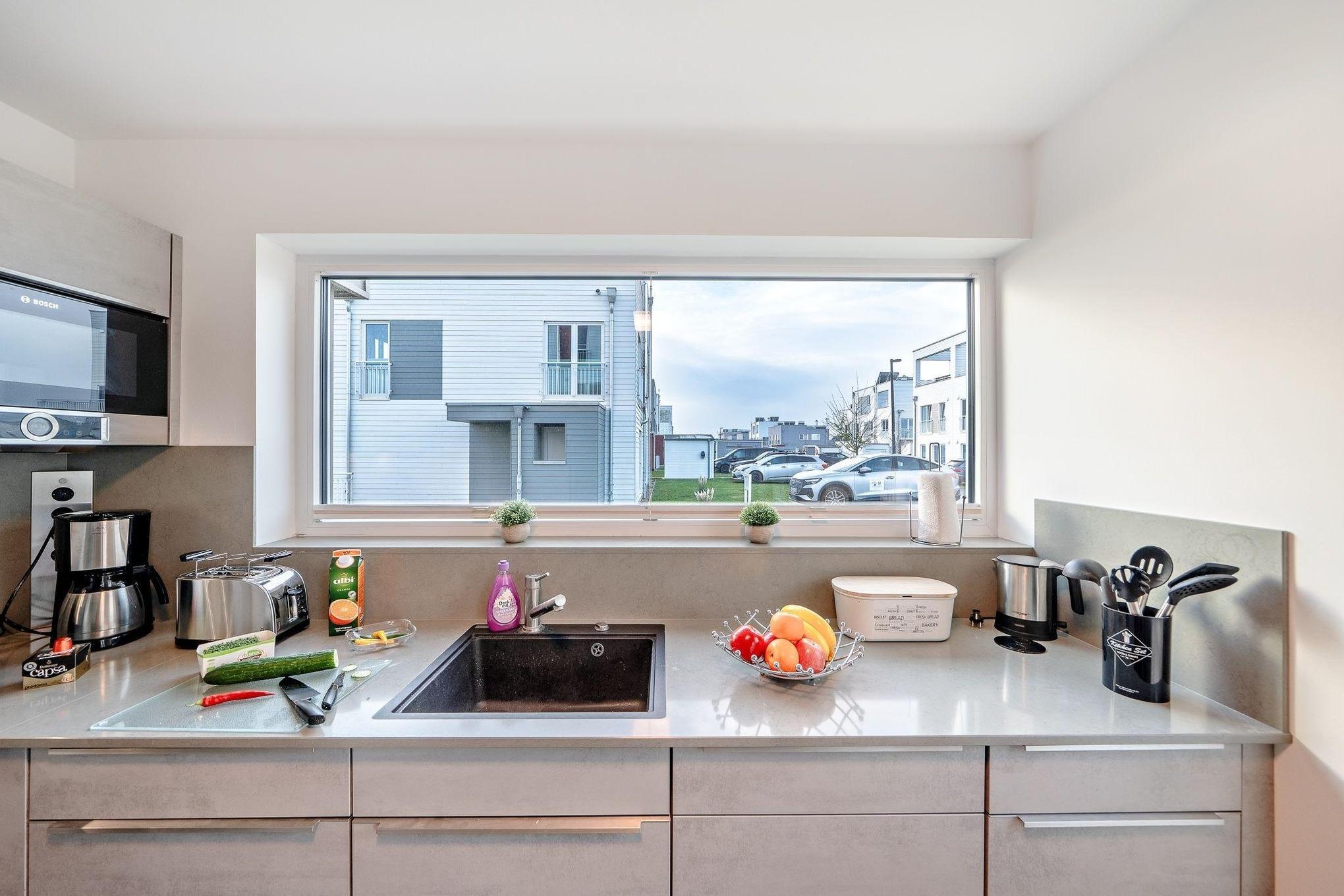 Die Schleivilla Ahoi by Seeblick Ferien ORO bietet auf 146 m² großzügigen Platz für bis zu sechs Personen. Der offene Wohn- und Essbereich ist mit einem gemütlichen Kaminofen, einem 75 Zoll Fernseher sowie einer Nintendo Wii U und LEGO ausgestattet. Die moderne Einbauküche lädt zum Kochen ein, während ein Gäste-WC mit Waschmaschine den Aufenthalt erleichtert. Im ersten Obergeschoss befinden sich zwei helle Schlafzimmer und ein größeres Badezimmer mit Badewanne und Dusche. Das Masterbedroom im zweiten Obergeschoss verfügt über ein Boxspringbett, einen Fernseher und ein modernes Duschbad mit bodengleicher Dusche. Eine finnische Sauna sorgt für Entspannung nach einem Tag am Strand. Bettwäsche und Handtücher können gegen Gebühr dazugebucht werden. Haustiere sind nicht erlaubt, was die Unterkunft besonders für Allergiker attraktiv macht.