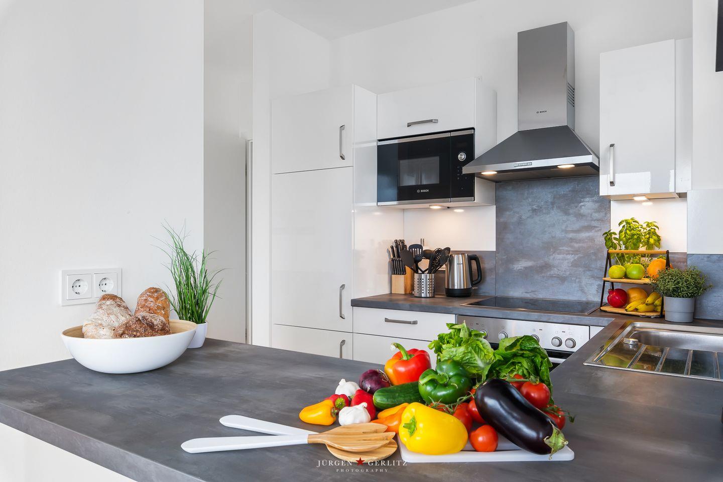Die hochwertige Küche ist mit allem ausgestattet, was das Herz begehrt, um gemeinsam mit Deinen Liebsten leckere Gerichte zu zaubern. Das Apartment beherbergt zwei moderne Schlafzimmer: In einem erwartet Dich ein komfortables Doppelbett, im anderen zwei Einzelbetten, die bei Bedarf zu einem weiteren Doppelbett arrangiert werden können. Beide Schlafzimmer sind mit Plissees ausgestattet.