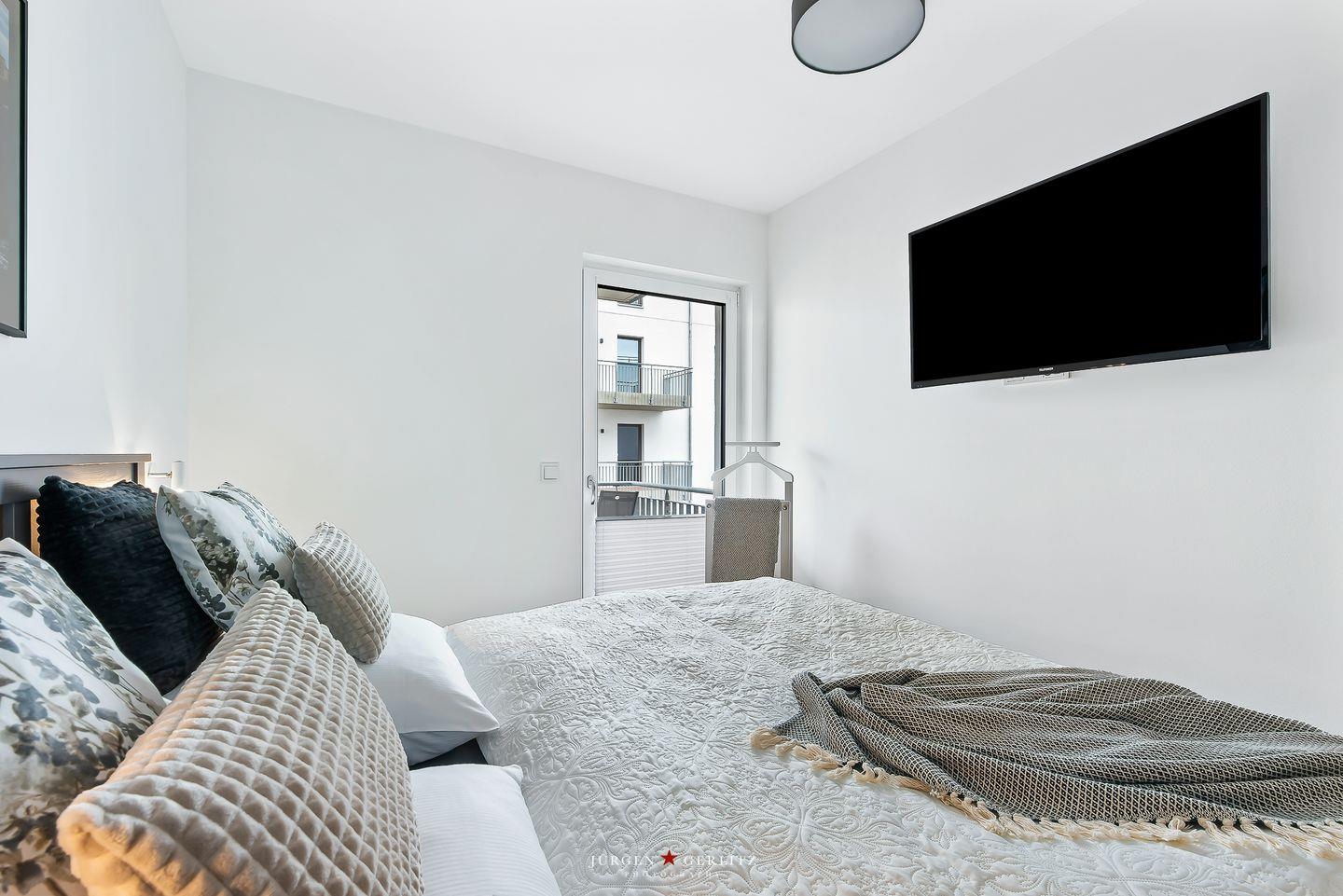 Modernes, barrierearmes Apartment Ocean's 16 mit Kamin, zwei Balkonen und Meerblick in Olpenitz.