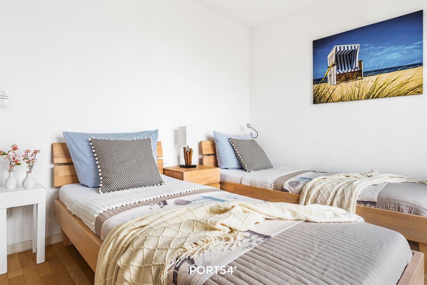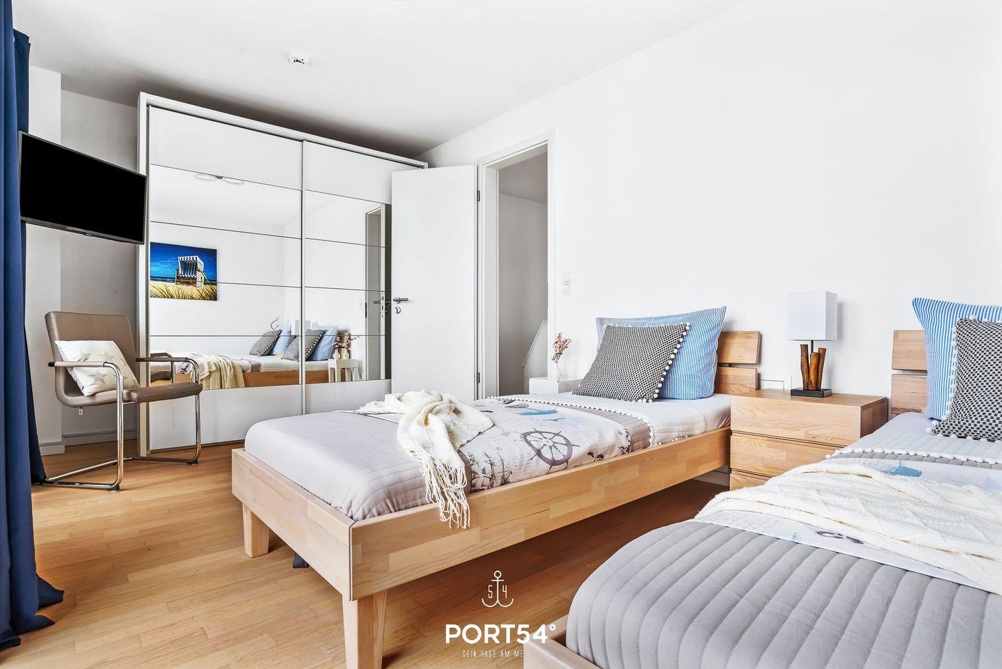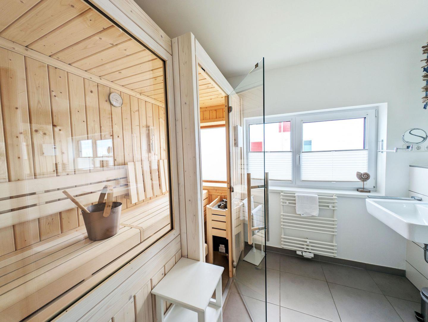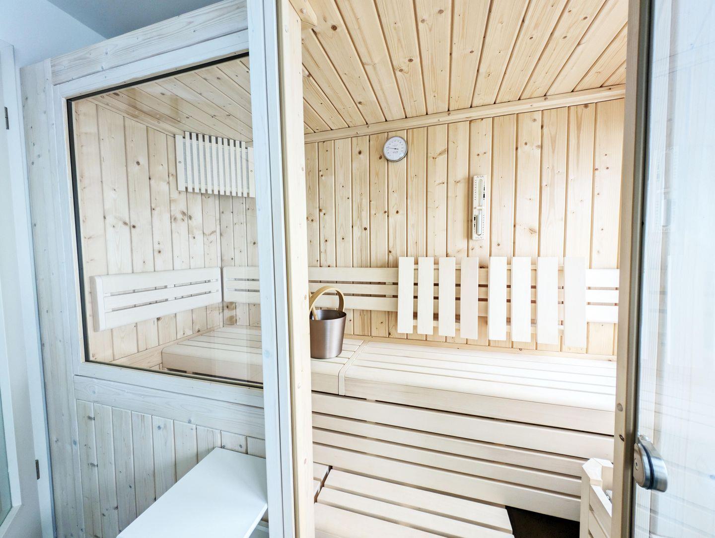 Die zwei Schlafzimmer liegen im ersten Obergeschoss und verfügen beide über einen Flachbild-TV. Eines der Schlafzimmer ist mit einem Doppelbett ausgestattet, das andere mit zwei Einzelbetten. Das Badezimmer auf dieser Etage bietet Dir eine großzügige finnische Sauna mit Ausblick sowie eine Dusche. Somit steht auch in der kalten Jahreszeit Deiner Entspannung nichts im Wege.
