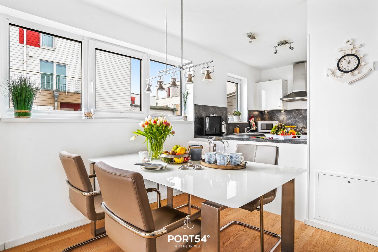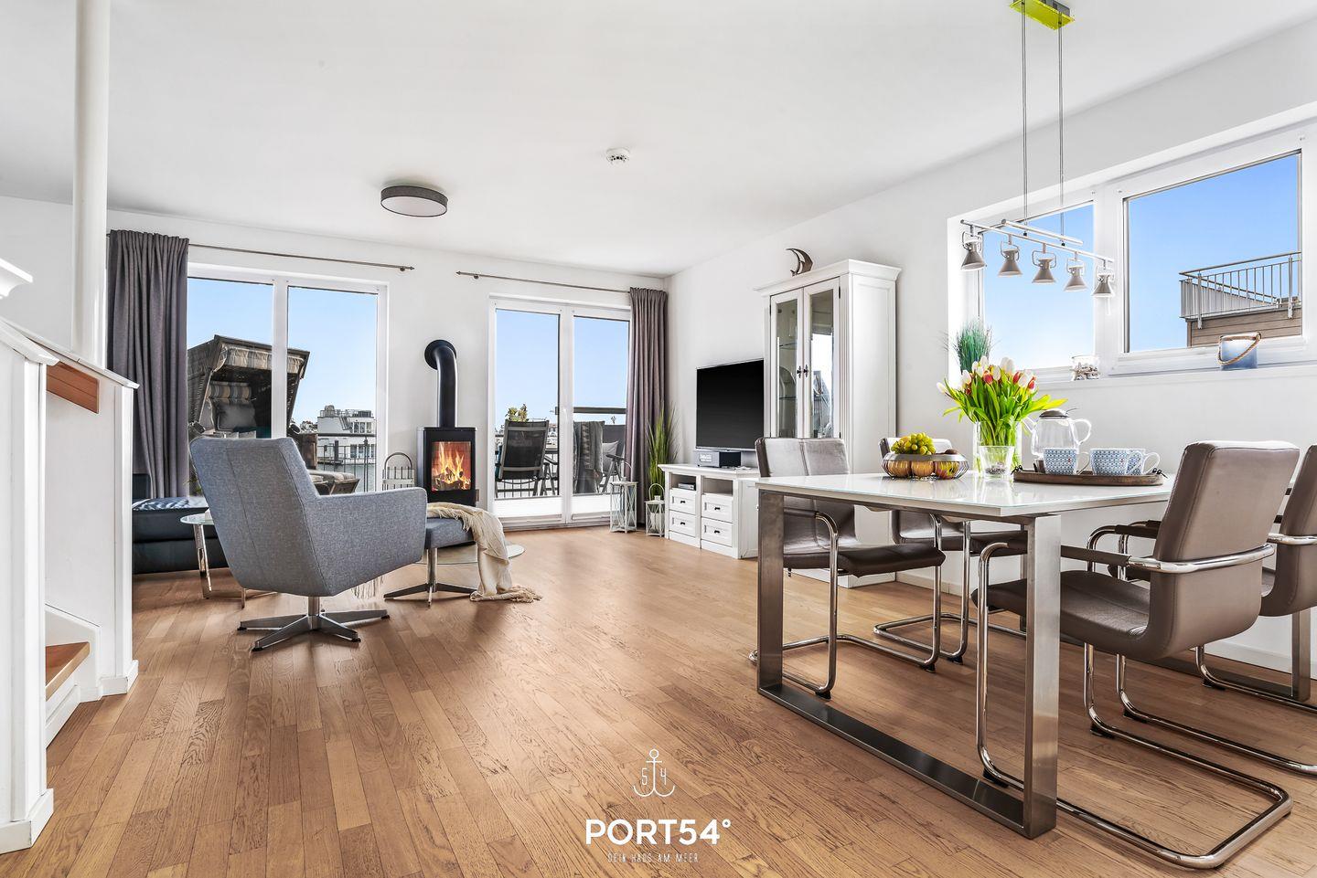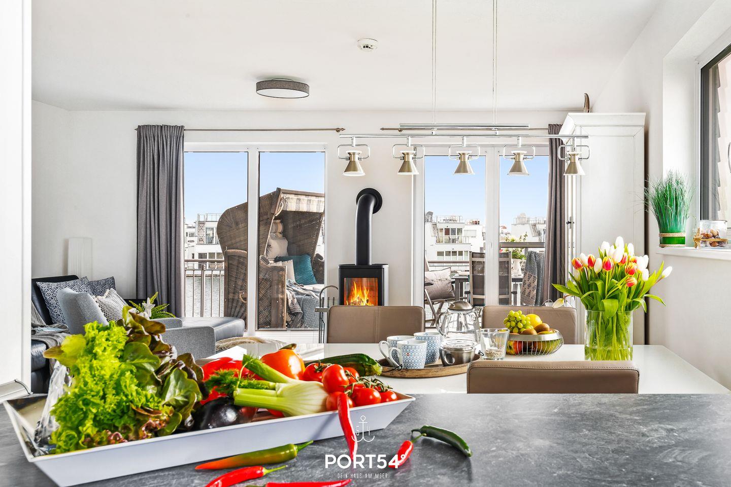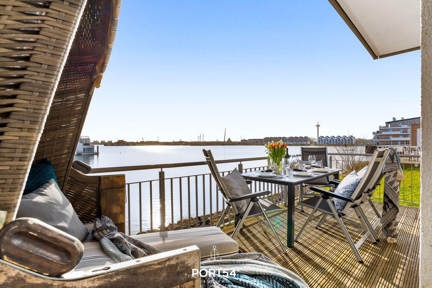 Von der 25 m² großen Dachterrasse hast Du einen atemberaubenden Blick auf die Schlei, die Ostsee und den Hafen des Resorts. Dies ist der ideale Ort, um den Tag entspannt ausklingen zu lassen.