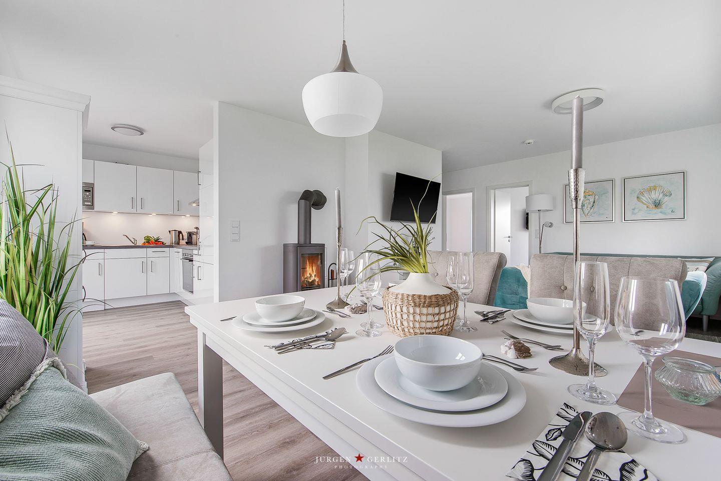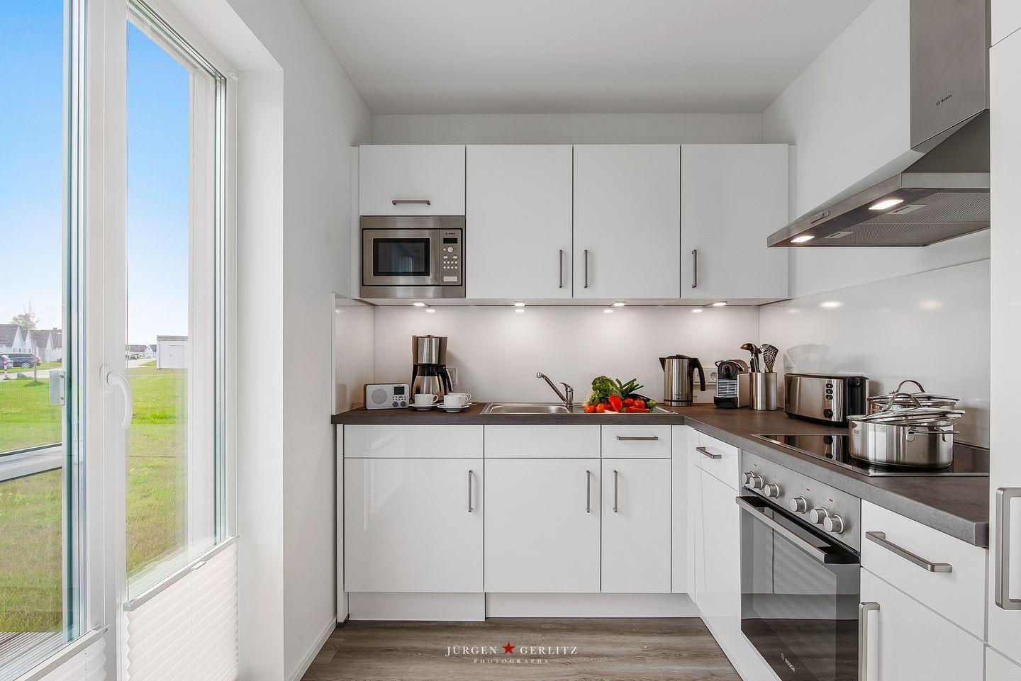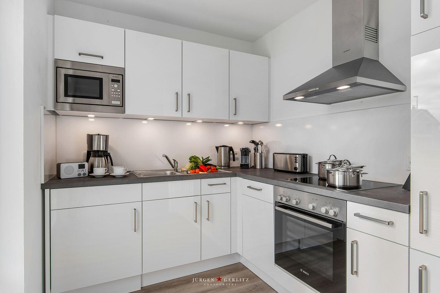 Die voll ausgestattete, moderne Küche bietet Dir alle Annehmlichkeiten, um kulinarische Köstlichkeiten zu zaubern und gemeinsame Mahlzeiten zu genießen.