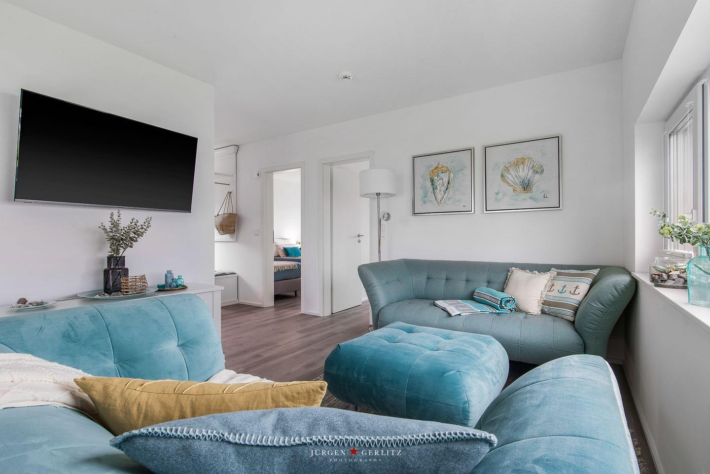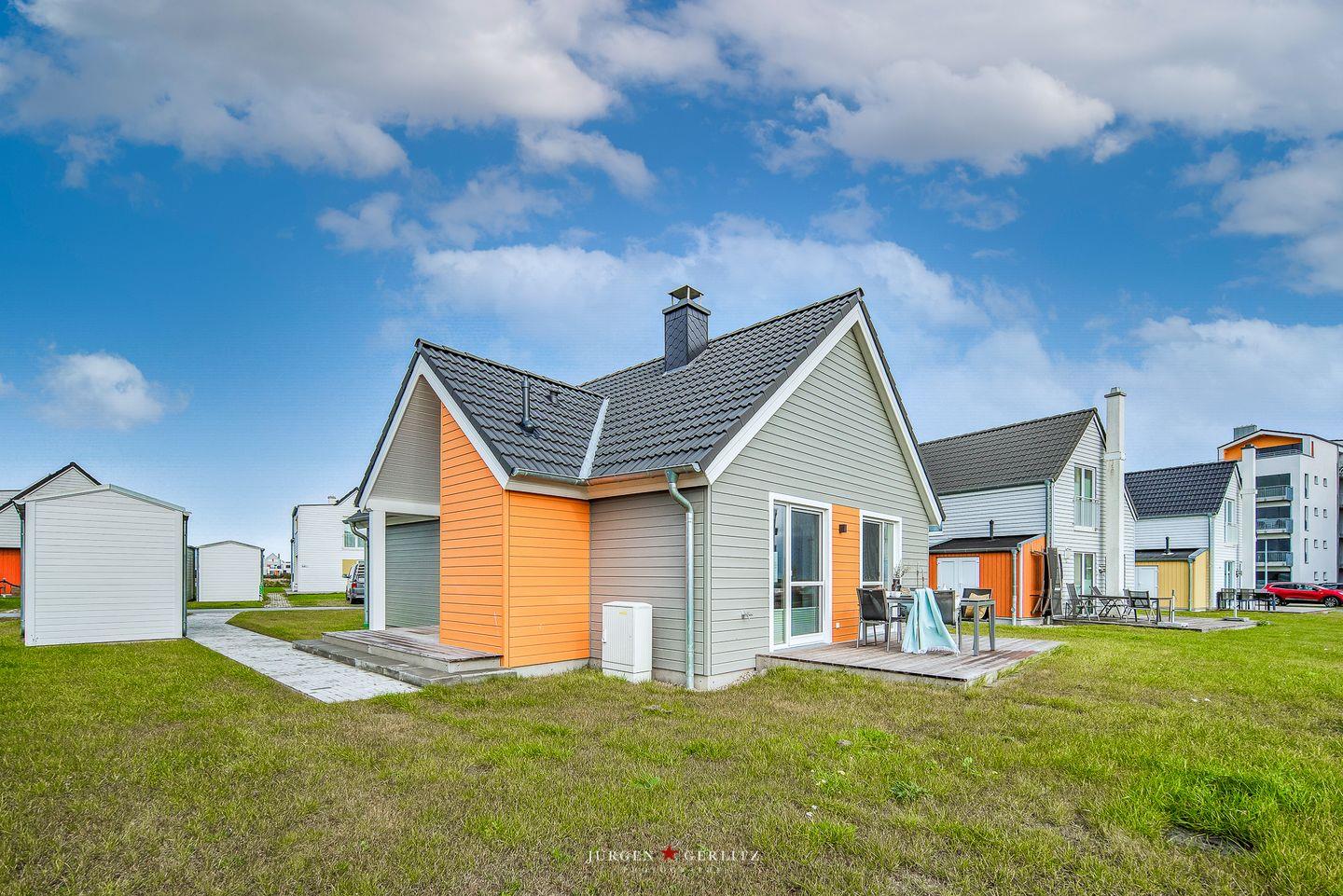 Entdecken Sie das freistehende Ferienhaus "Blue Heaven" mit Sauna, Whirlwanne, Kamin und Terrasse nahe dem Strand in Olpenitz.