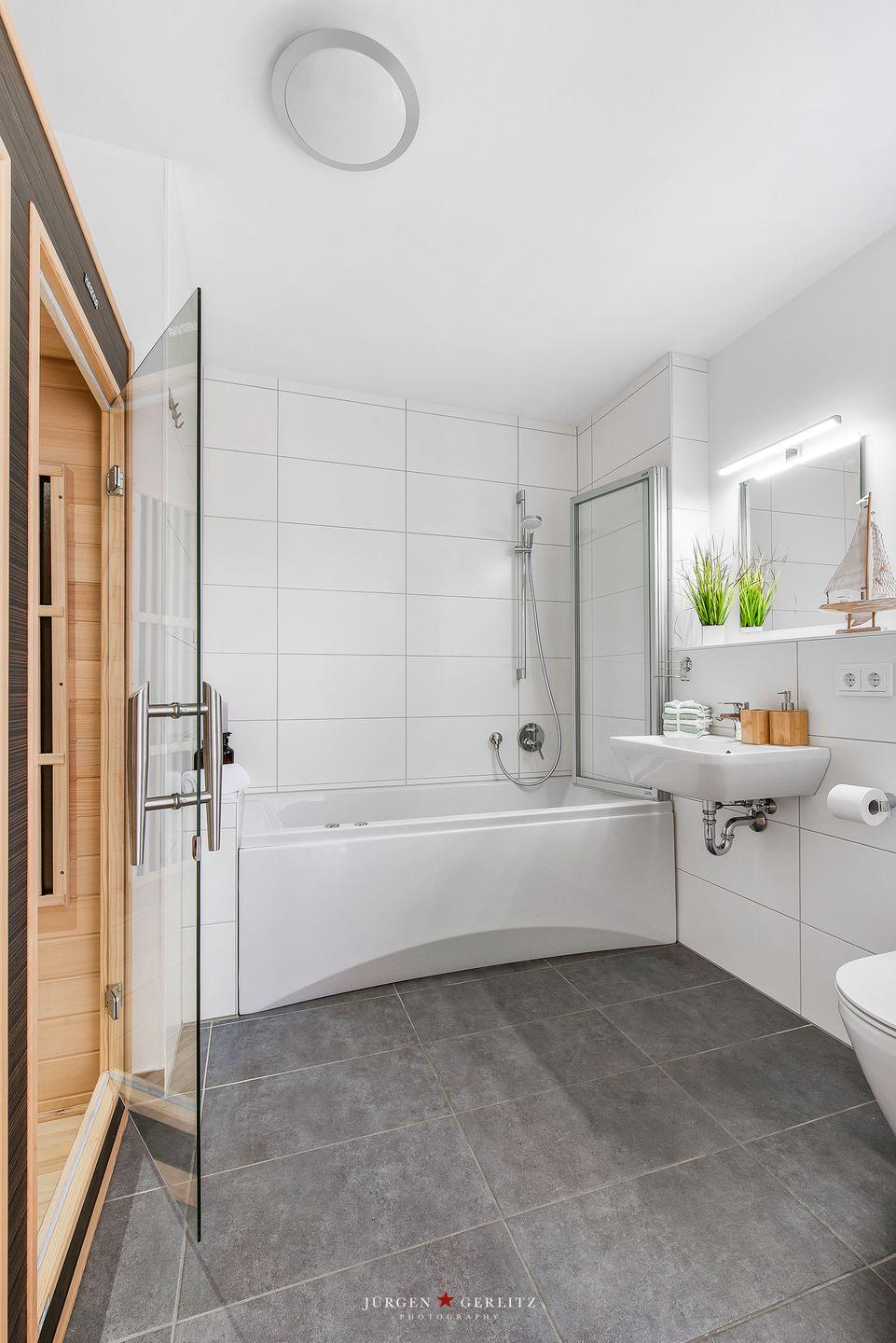 Das Badezimmer des „Blue Heaven“ ist nicht nur zweckmäßig, sondern verspricht Dir echtes Wellnessvergnügen. Hier erwartet Dich eine verlockende Whirlwanne, in der Du Dich nach einem erlebnisreichen Tag entspannen kannst. Als Highlight steht Dir außerdem eine Infrarot-Sauna zur Verfügung, die nicht nur für wohlige Wärme sorgt, sondern auch Deine Sinne verwöhnt.