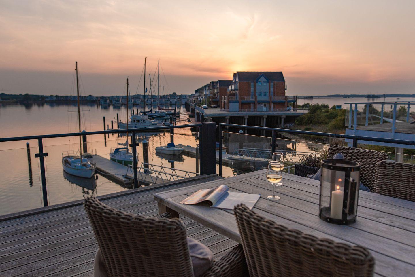 Luxuriöse Ferienwohnung in Olpenitz mit Sauna, Balkon und traumhaftem Meerblick direkt am Wasser.