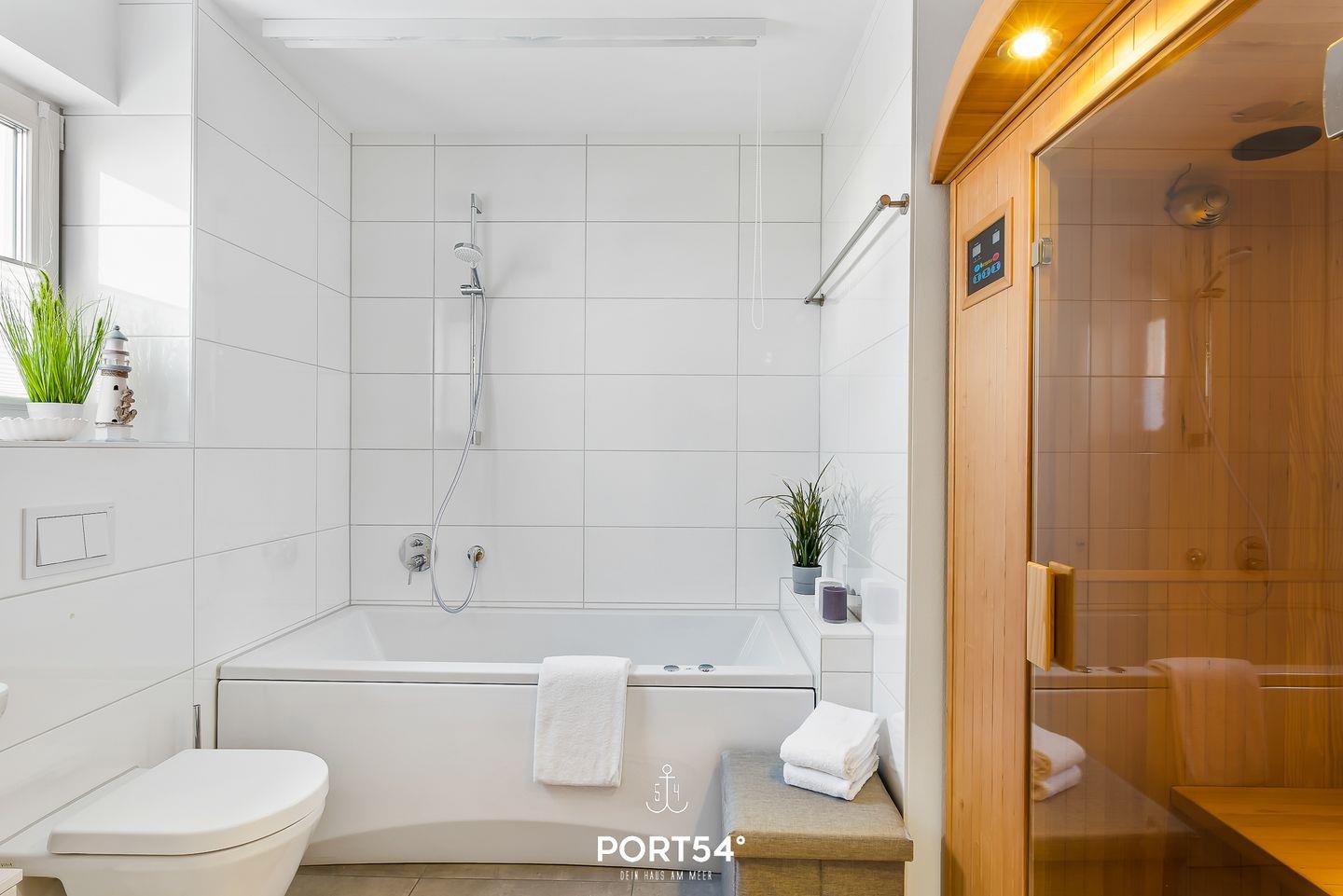 Ein weiteres Highlight ist die Infrarot-Sauna im Badezimmer, die zu einem ausgiebigen Wellness-Tag einlädt. Zudem steht Ihnen eine Badewanne zur Verfügung – ideal für Wellnessmomente und zur Entspannung nach einem aktiven Tag.