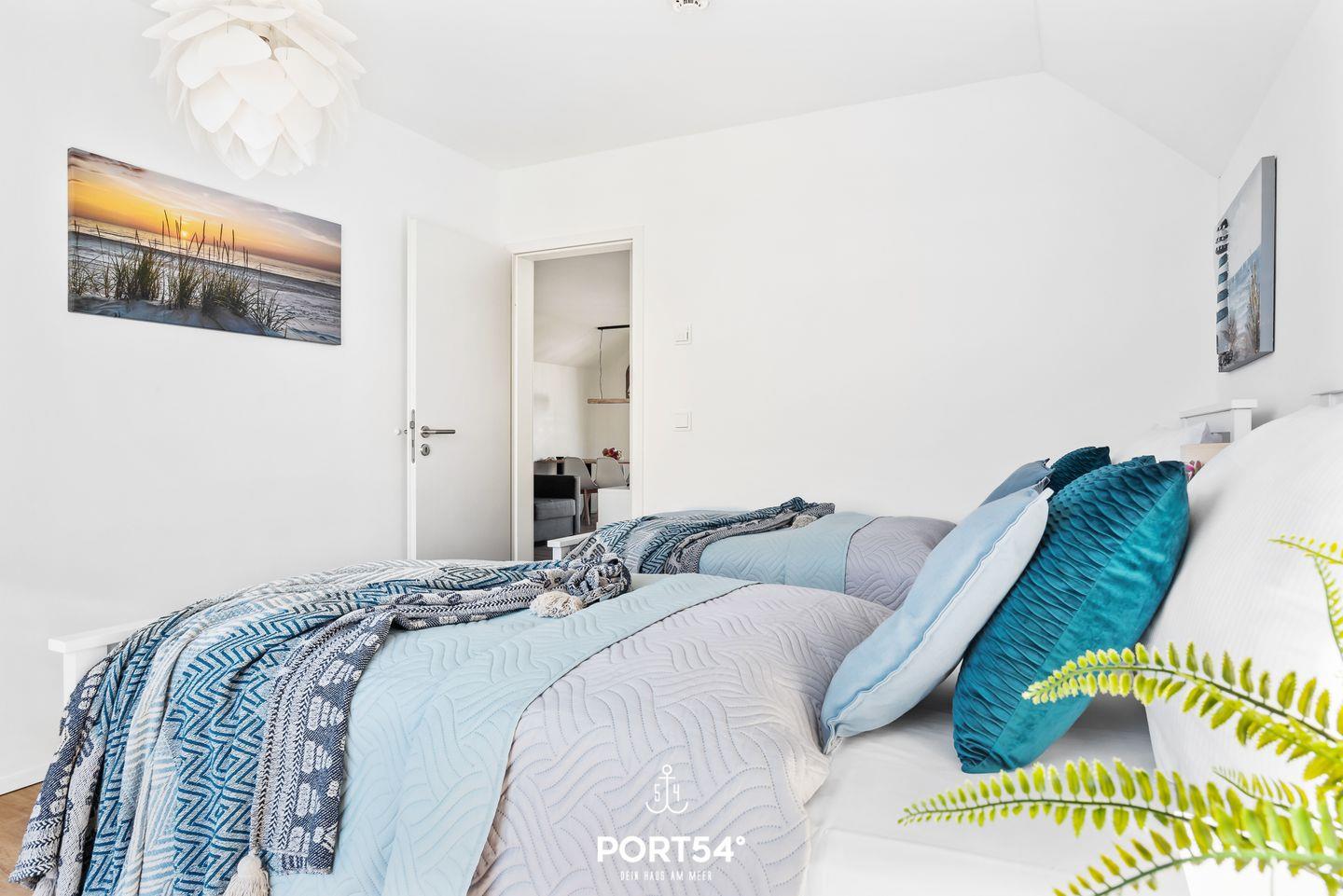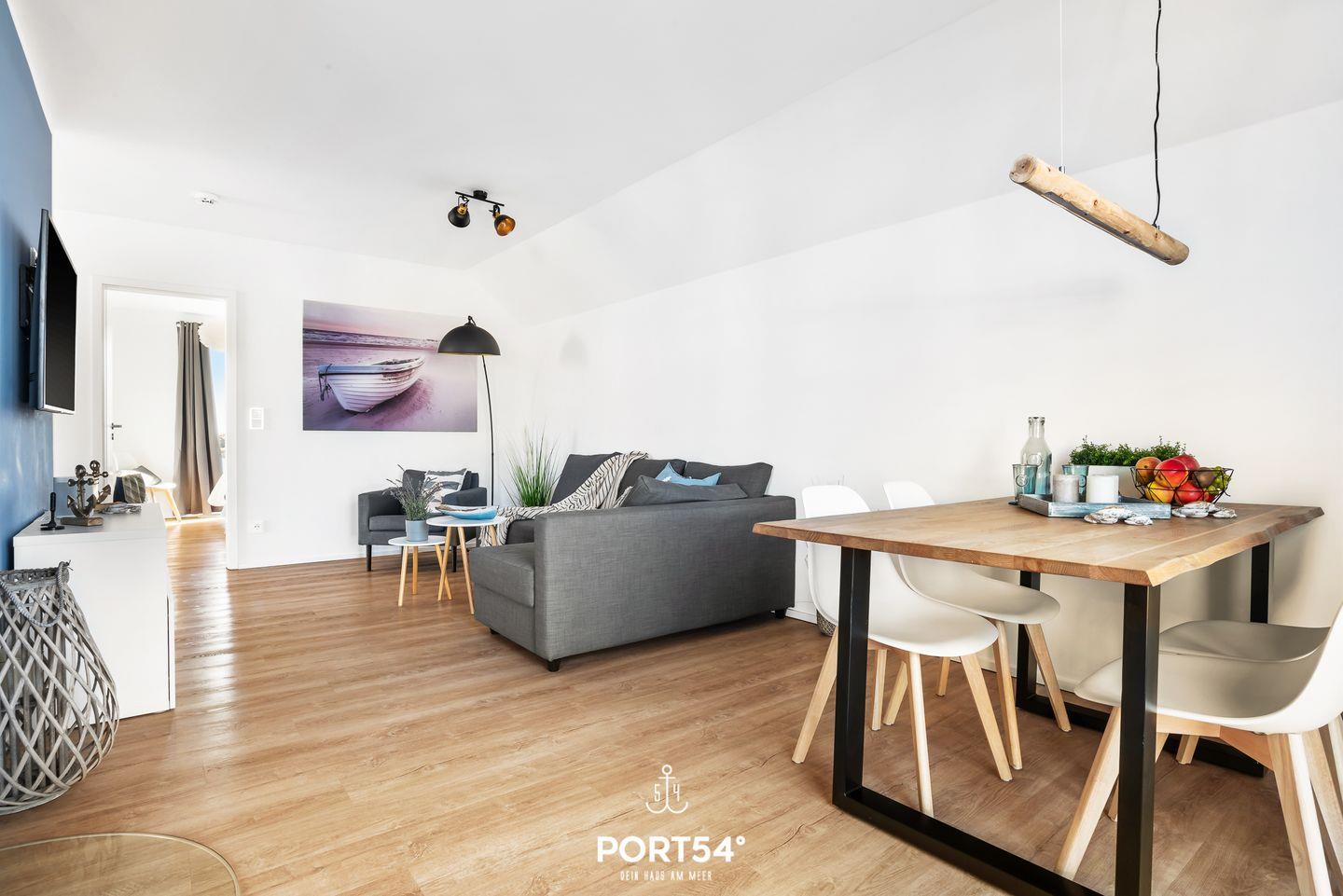In dieser modernen und gemütlich eingerichteten Wohnung fühlen Sie sich schnell wie im Urlaub! Mit zwei Schlafzimmern und einem Wohnzimmer bietet reichlich Platz zur Entfaltung für bis zu 4 Erwachsene und zwei Kinder. Das Wohnzimmer ist ausgestattet mit einem Kamin, TV und Musik mit Sonos. Die offene Küche mit großzügigem Essbereich lädt zum Kochen und Genießen ein. Das Appartment verfügt über ein Badezimmer mit Whirlwanne und Infrarot-Sauna zum Entspannen und Relaxen. Die beiden Schlafzimmer sind mit einem Doppelbett und zwei Einzelbetten ausgestattet. Das Schlafsofa im Wohnzimmer lässt sich ausziehen und bietet zwei Kindern Platz. Auch die Kleinen kommen nicht zu kurz: Hier finden Sie Gesellschaftsspiele, Spielzeug, Strandspielzeug, einen Kinderroller sowie einen Bollerwagen. Die exzellente Lage mit Hafenblick bringt sofort Entspannung pur, sodass der Alltag schnell in Vergessenheit gerät. Auch der Strand ist fußläufig in wenigen Minuten erreichbar und in den Sommermonaten DLRG überwacht. Hier können die Kinder baden, buddeln und toben. Die Natur lädt mit ihrer ländlichen Weite und wundervollen Ausblicke auf die Schlei und Ostsee zum Wandern und Radfahren ein. Das OstseeResort Olpenitz bietet viel Platz zum Entdecken und Erkunden. Abends kann man wunderbar den Tag mit einem Glas Wein auf dem großen Balkon ausklingen lassen und die Sonne am Horizont untergehen sehen. Ein Stellplatz und ein abschließbarer Fahrradschuppen sind vorhanden.