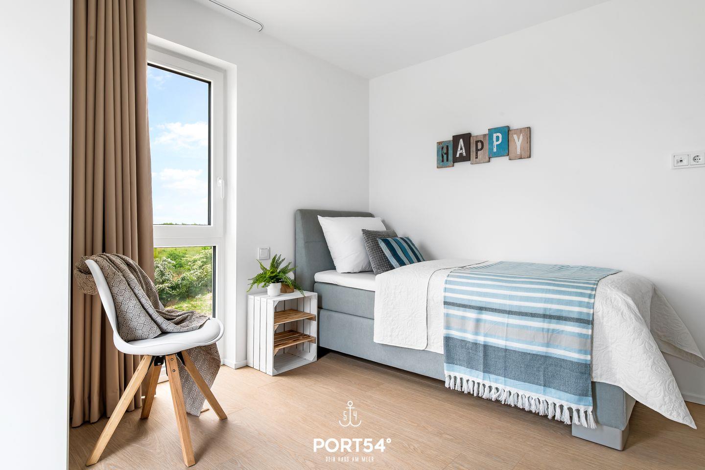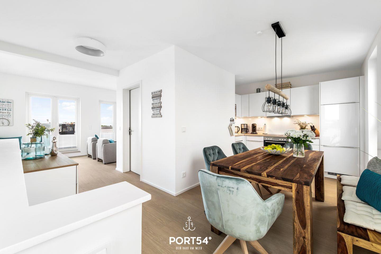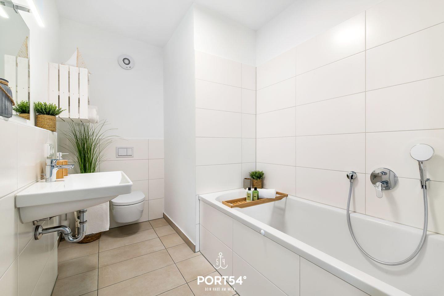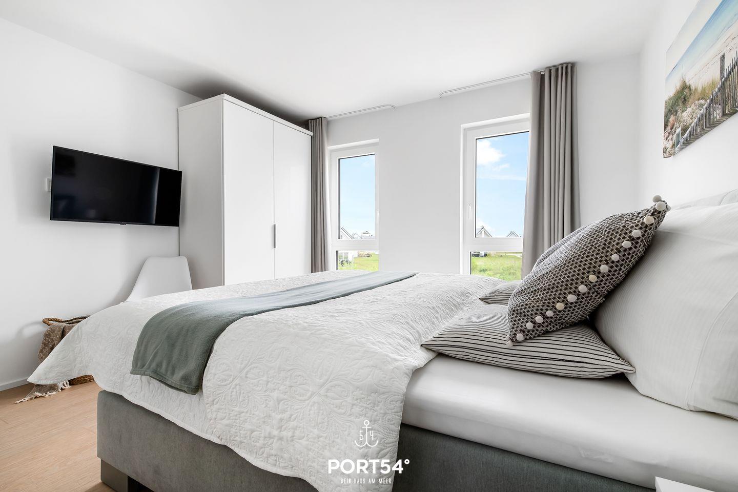 Die Wohnung verfügt über eine voll ausgestattete Küche, bodentiefe Fenster, einen Kamin und eine 28 m² große Dachterrasse. 2 Schlafzimmer sind mit Doppelbetten ausgestattet, das dritte mit 2 Einzelbetten. Eines der beiden Bäder verfügt über eine bodengleiche Dusche und eine Infrarotkabine, das andere lädt zum Entspannen in der Badewanne ein. Bitte beachten Sie, dass sich das OstseeResort Olpenitz derzeit im Aufbau befindet und es in der Nähe Ihrer Unterkunft zu Bautätigkeiten kommen kann.