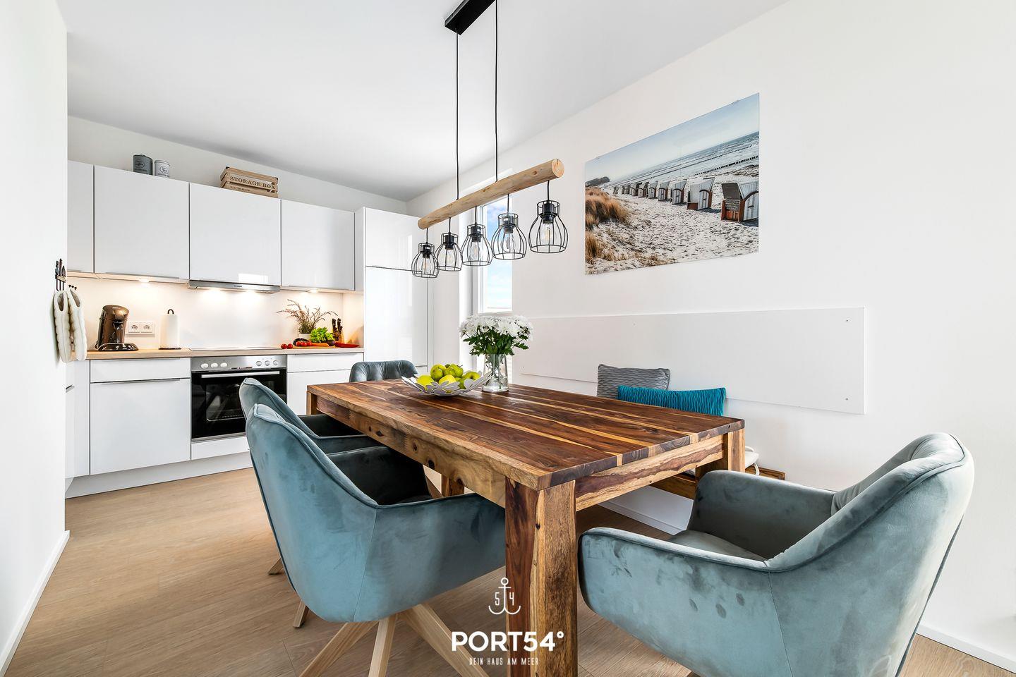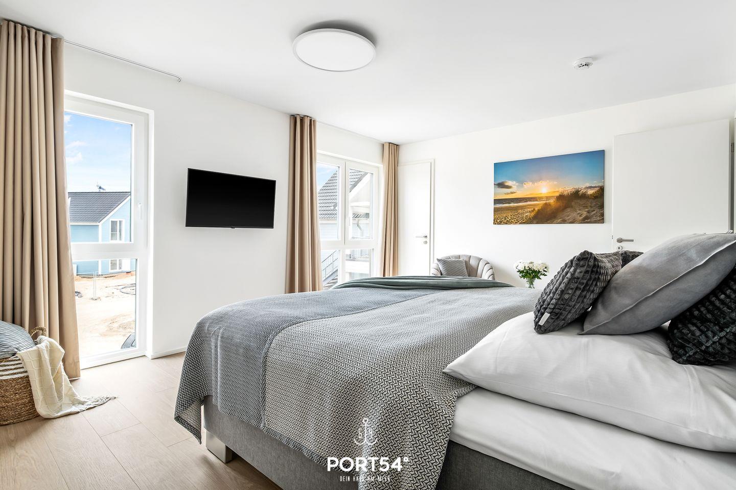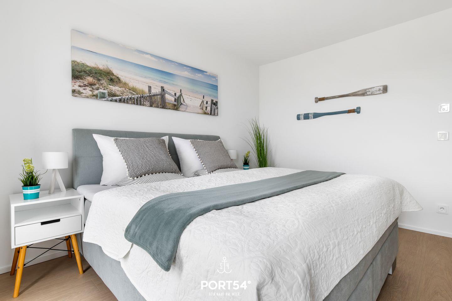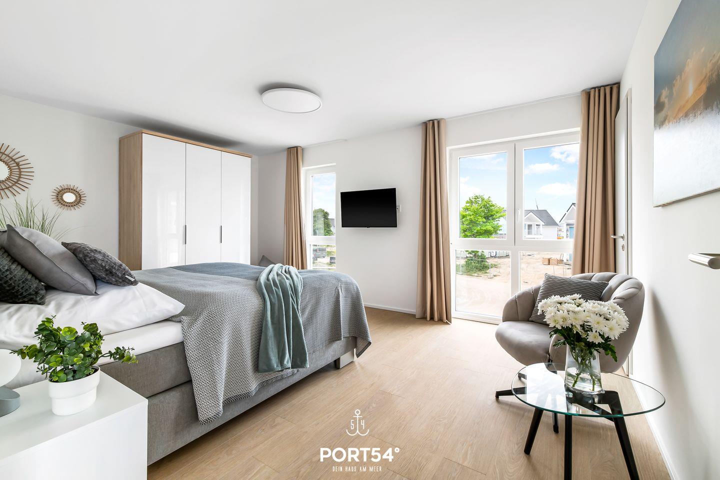 Die Wohnung verfügt über eine voll ausgestattete Küche, bodentiefe Fenster, einen Kamin und eine 28 m² große Dachterrasse. 2 Schlafzimmer sind mit Doppelbetten ausgestattet, das dritte mit 2 Einzelbetten. Eines der beiden Bäder verfügt über eine bodengleiche Dusche und eine Infrarotkabine, das andere lädt zum Entspannen in der Badewanne ein. Bitte beachten Sie, dass sich das OstseeResort Olpenitz derzeit im Aufbau befindet und es in der Nähe Ihrer Unterkunft zu Bautätigkeiten kommen kann.