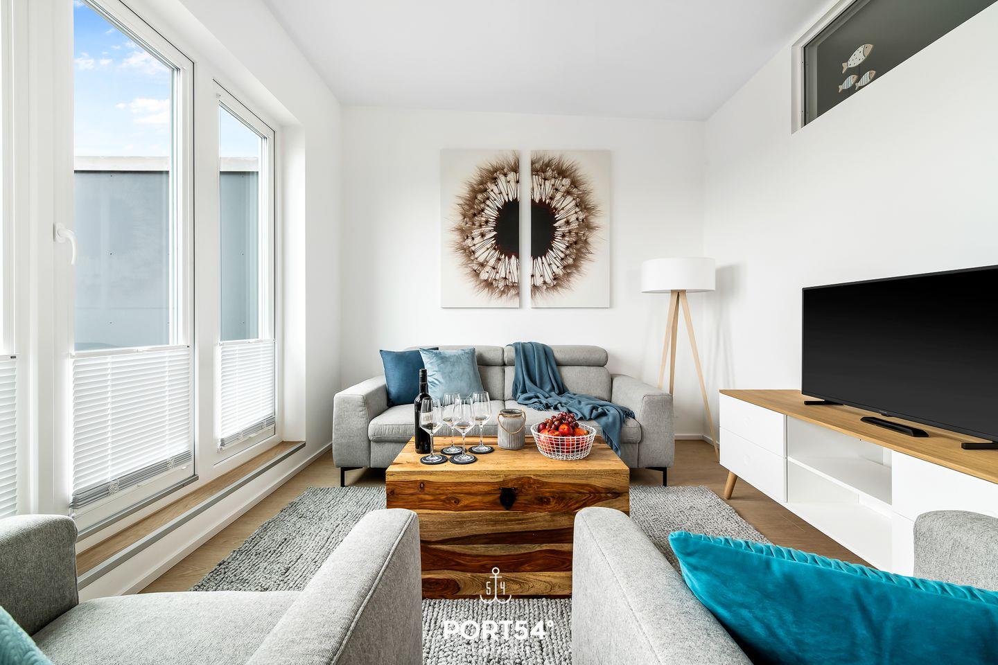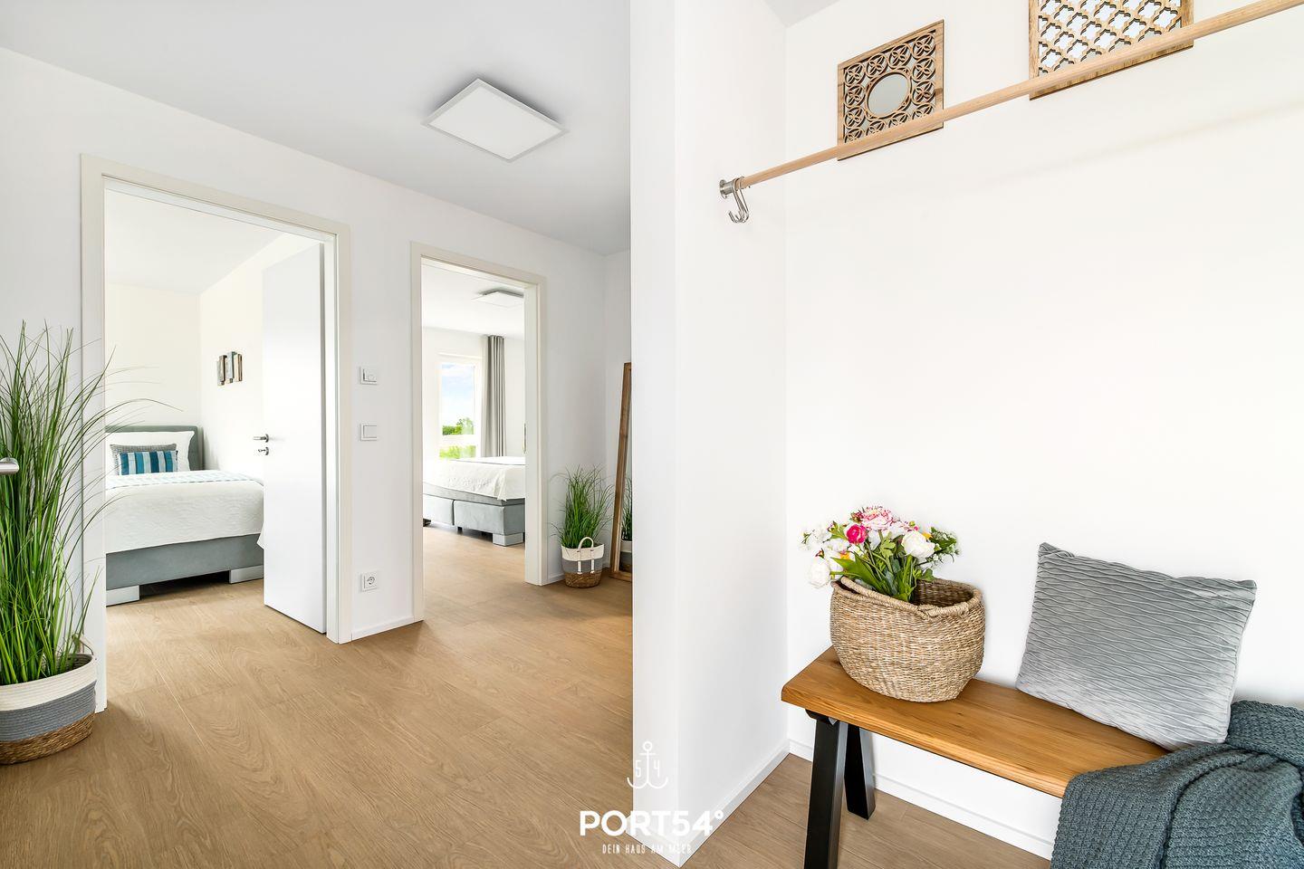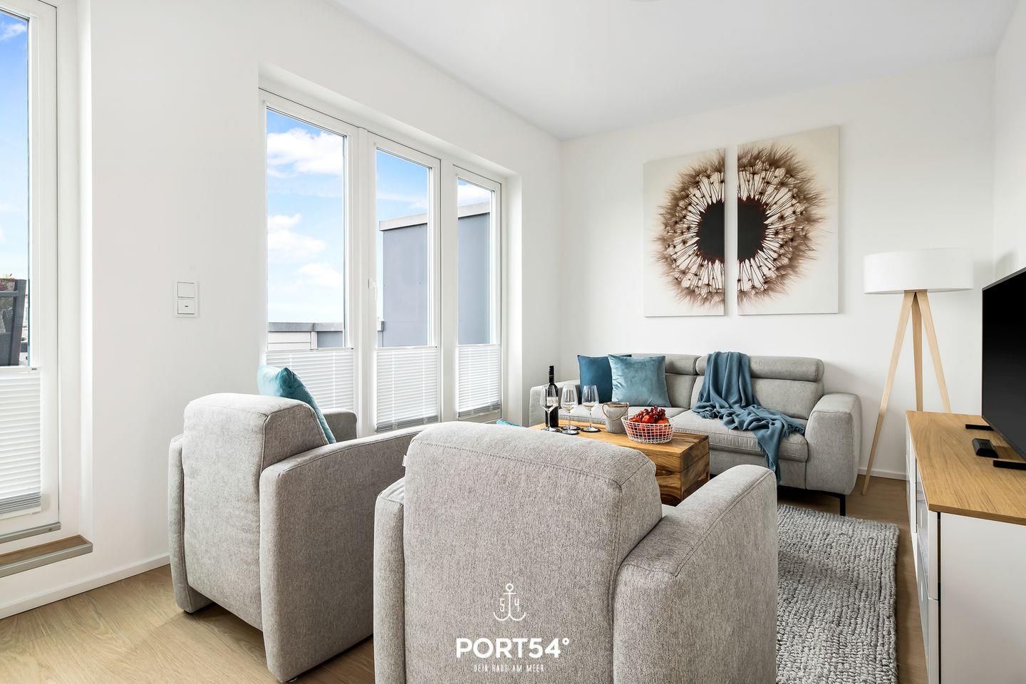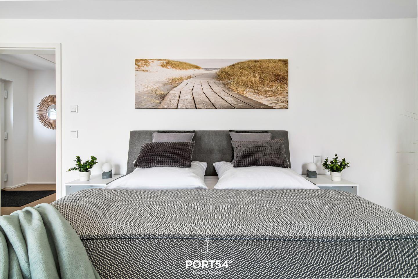 Die Wohnung verfügt über eine voll ausgestattete Küche, bodentiefe Fenster, einen Kamin und eine 28 m² große Dachterrasse. 2 Schlafzimmer sind mit Doppelbetten ausgestattet, das dritte mit 2 Einzelbetten. Eines der beiden Bäder verfügt über eine bodengleiche Dusche und eine Infrarotkabine, das andere lädt zum Entspannen in der Badewanne ein. Bitte beachten Sie, dass sich das OstseeResort Olpenitz derzeit im Aufbau befindet und es in der Nähe Ihrer Unterkunft zu Bautätigkeiten kommen kann.