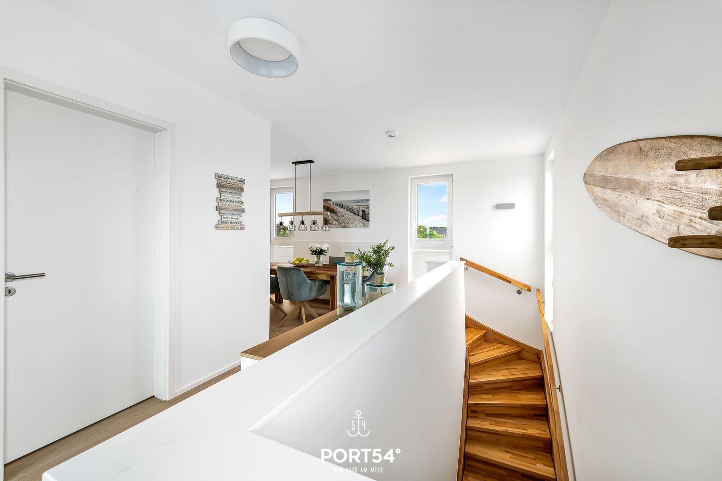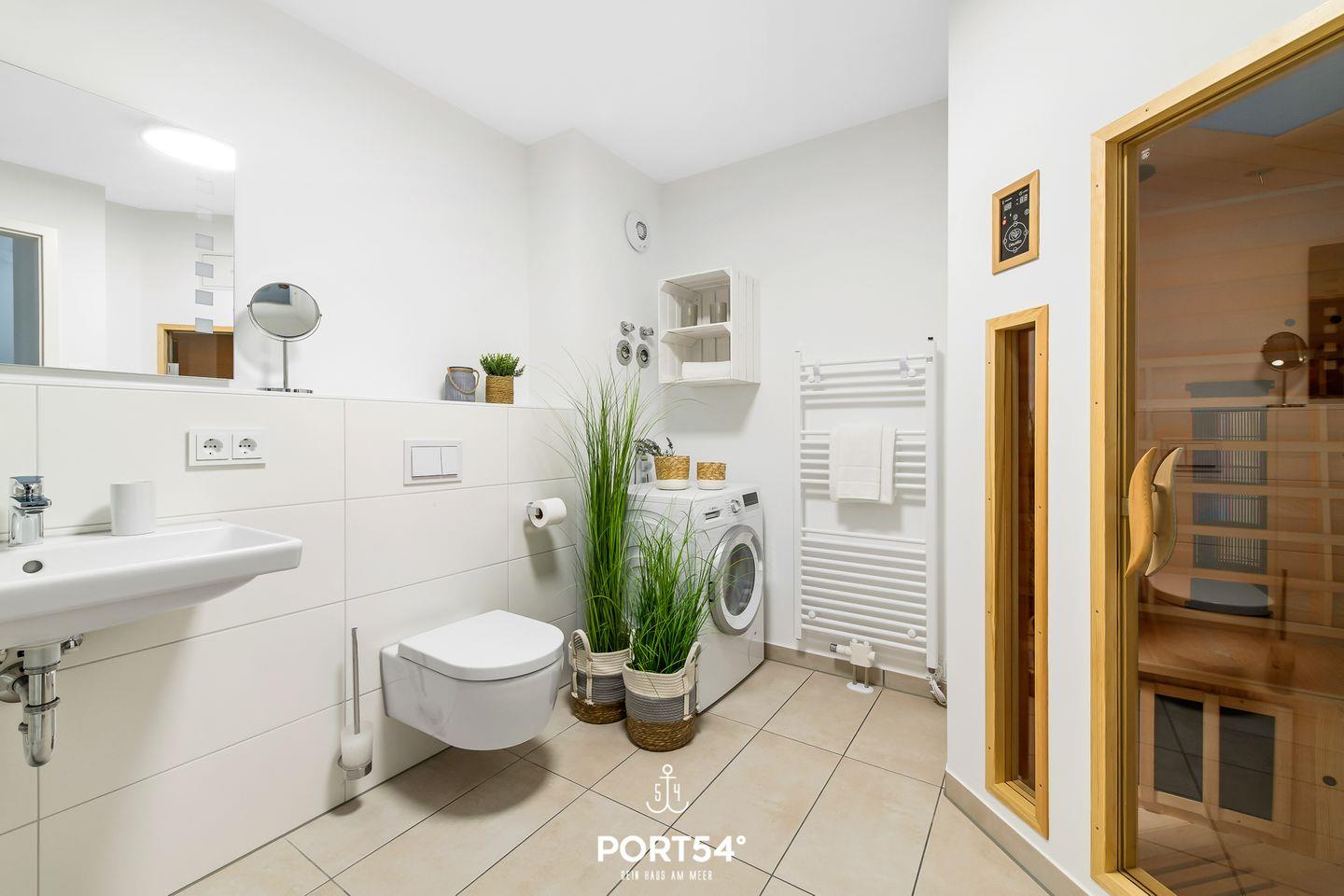 Die wunderschöne "OstseeOase" bietet auf 130m² Platz für bis zu 6 Personen. Die großzügige Wohnung erstreckt sich über zwei Etagen und bietet einen herrlichen Blick auf die Ostsee. Die gesamte Einrichtung ist stilvoll und hochwertig. Beim Betreten der Ferienwohnung im ersten Obergeschoss, beginnt vom ersten Moment an die Entschleunigung. Sie befinden sich direkt im Ruhebereich der "OstseeOase". Auf dieser Etage finden Sie die drei geräumigen Schlafzimmer der Wohnung. Egal für welches Schlafzimmer Sie sich entscheiden, erholsamer Schlaf ist Ihnen, dank der komfortablen Betten, sicher. 2 Schlafzimmer sind mit einem breiten Boxspringbett (180x200cm), sowie einem Flatscreen-TV ausgestattet. In dem dritten Schlafzimmer bieten 2 Einzelboxspringbetten noch weiteren Platz für 2 Personen. Auf dieser Etage befindet sich zudem ein bestens ausgestattetes Badezimmer mit ebenerdiger Dusche und Infrarot-Sauna. Eine Wohlfühl-Oase, die zu jeder Jahreszeit für Entspannung sorgt. Im zweiten Obergeschoss angekommen, macht die "OstseeOase" ihrem Namen alle Ehre. Hier erwartet Sie ein lichtdurchfluteter Wohnbereich mit gemütlichem Sofa und Flatscreen-TV. Der vorhandene Kamin sorgt im Winter für wohlige Wärme. Die angrenzende, offen gestaltete Küche bietet Ihnen alles, was Sie für ein gemütliches Essen mit der Familie oder Freunden benötigen. Vom Wohnbereich aus gelangen Sie direkt auf die große Sonnenterrasse, von der aus Sie einen wundervollen Ausblick Richtung Ostsee genießen können. Ausgestattet mit Gartenmöbeln, sowie einem Elekto-Webergrill, können Sie hier wunderbare Stunden verbringen. Ebenfalls in der oberen Etage befindet sich ein zweites Badezimmer mit Dusch-Badewanne, welches das Wohlfühlfeeling abrundet. Für die kleinen Gäste stellen wir einen Kinderhochstuhl und ein Kinderreisebett bereit. In der gesamten Unterkunft gibt es Highspeed-WLAN. Außerdem verfügt die Wohnung über eine Waschmaschine und einen Wäscheständer. Im Außenbereich steht Ihnen ein abschließbarer Schuppen zur Verfügung, in dem Sie Ihre Fahrräder, Kinderwagen oder Spielfahrzeuge sicher abstellen können. Weiterhin ist ein kostenloser Stellplatz direkt vor der Haustür für Sie reserviert.