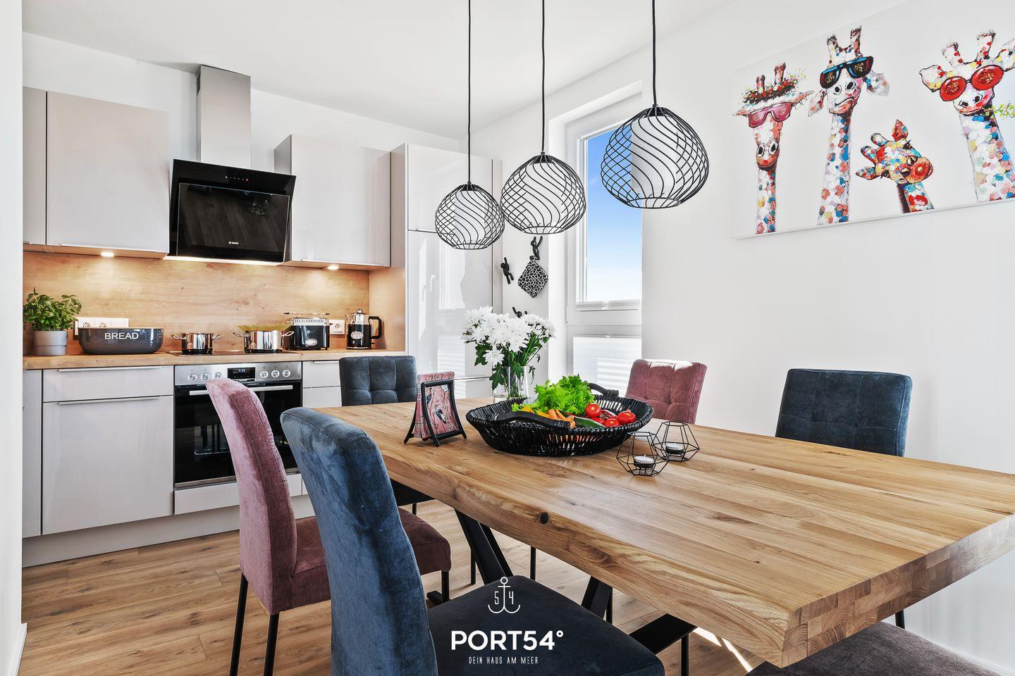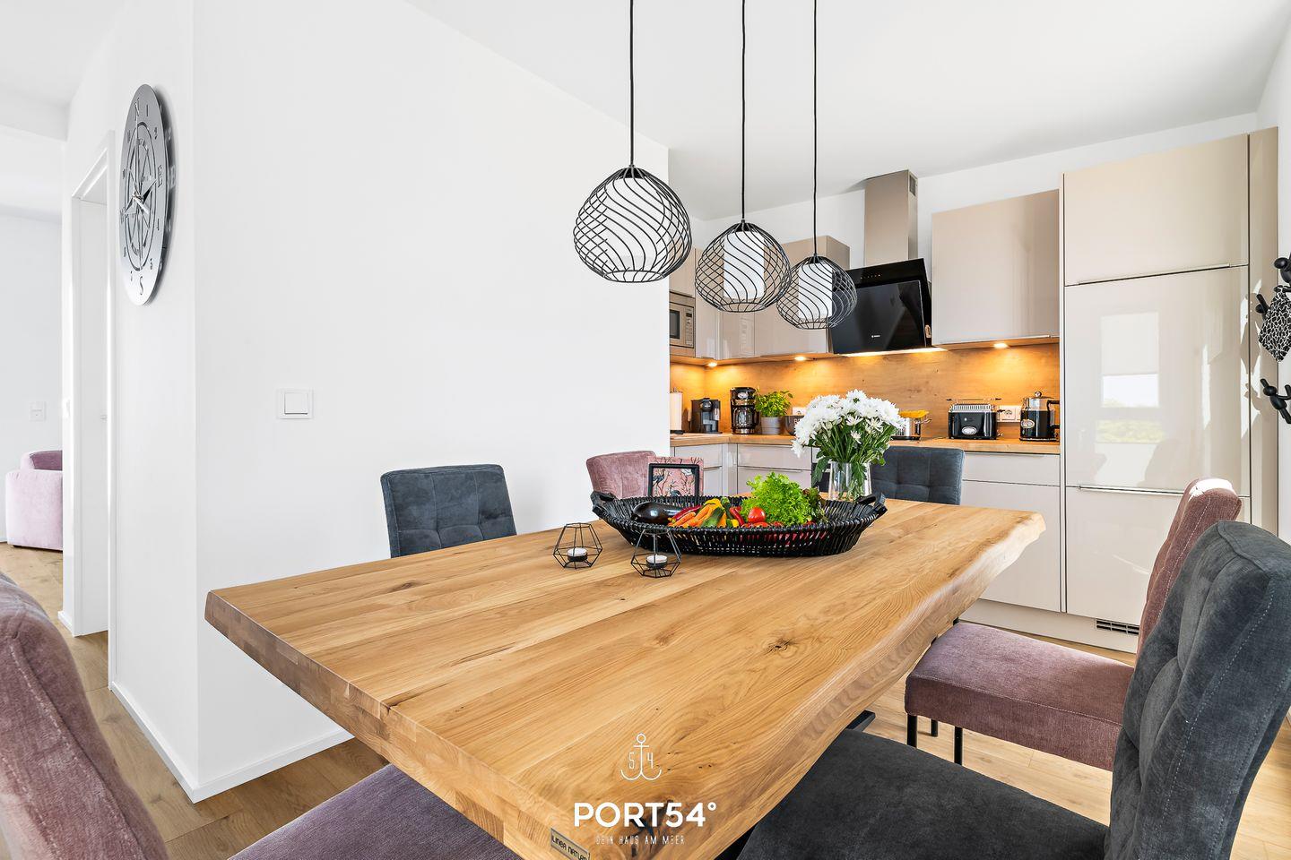 Ein weiteres Highlight der Wohnung ist die eigene Sauna, die zur Entspannung nach einem Tag am Strand einlädt. Und nach erholsamen Wellness-Momenten können Sie auf dem Balkon mit Gartenmöbeln den frischen Ostseewind genießen oder bei einem Grillabend mit der gesamten Familie Zeit verbringen. Für die kleinen Gäste stehen ein Babybett und ein Kinderhochstuhl bereit, sodass Eltern entspannt ihren Urlaub genießen können.