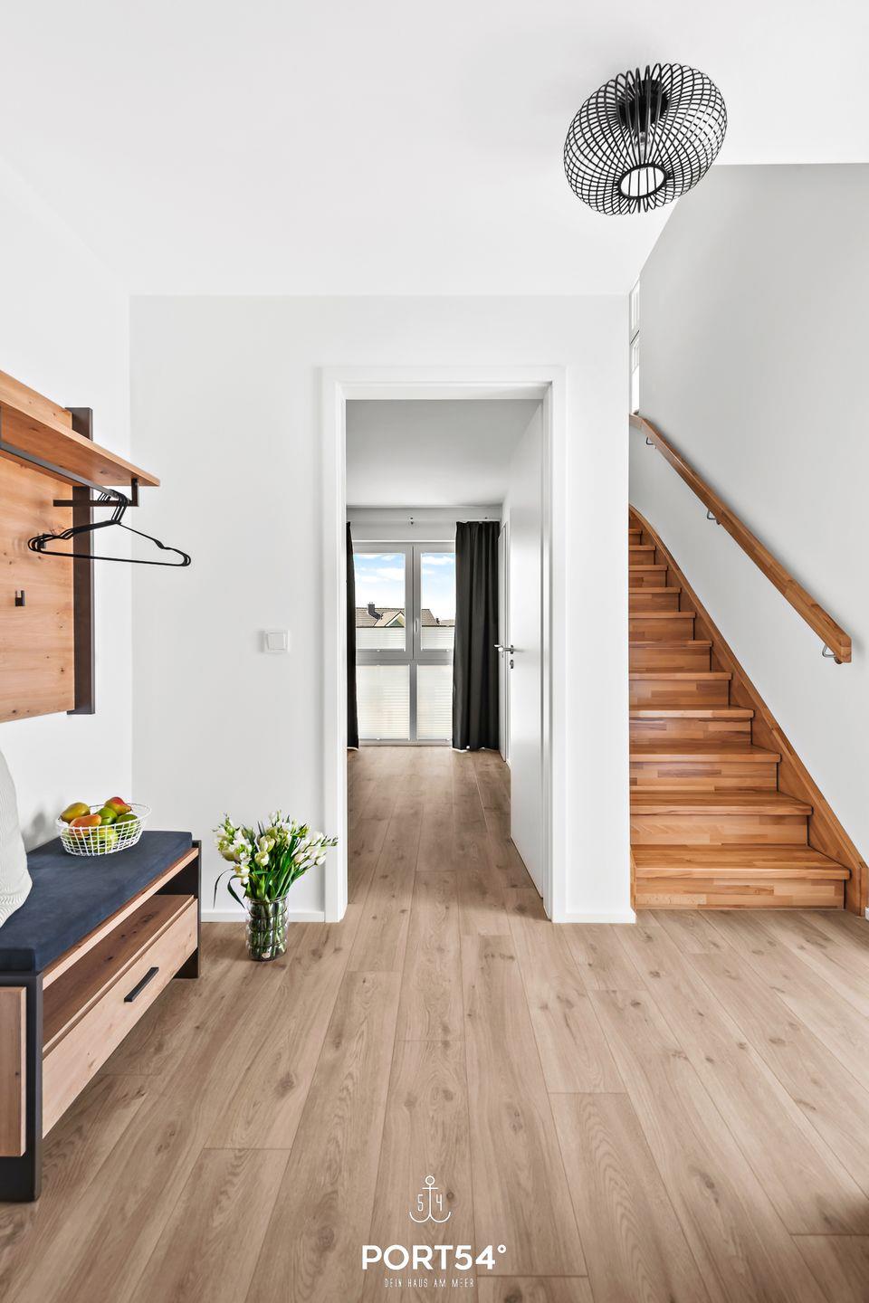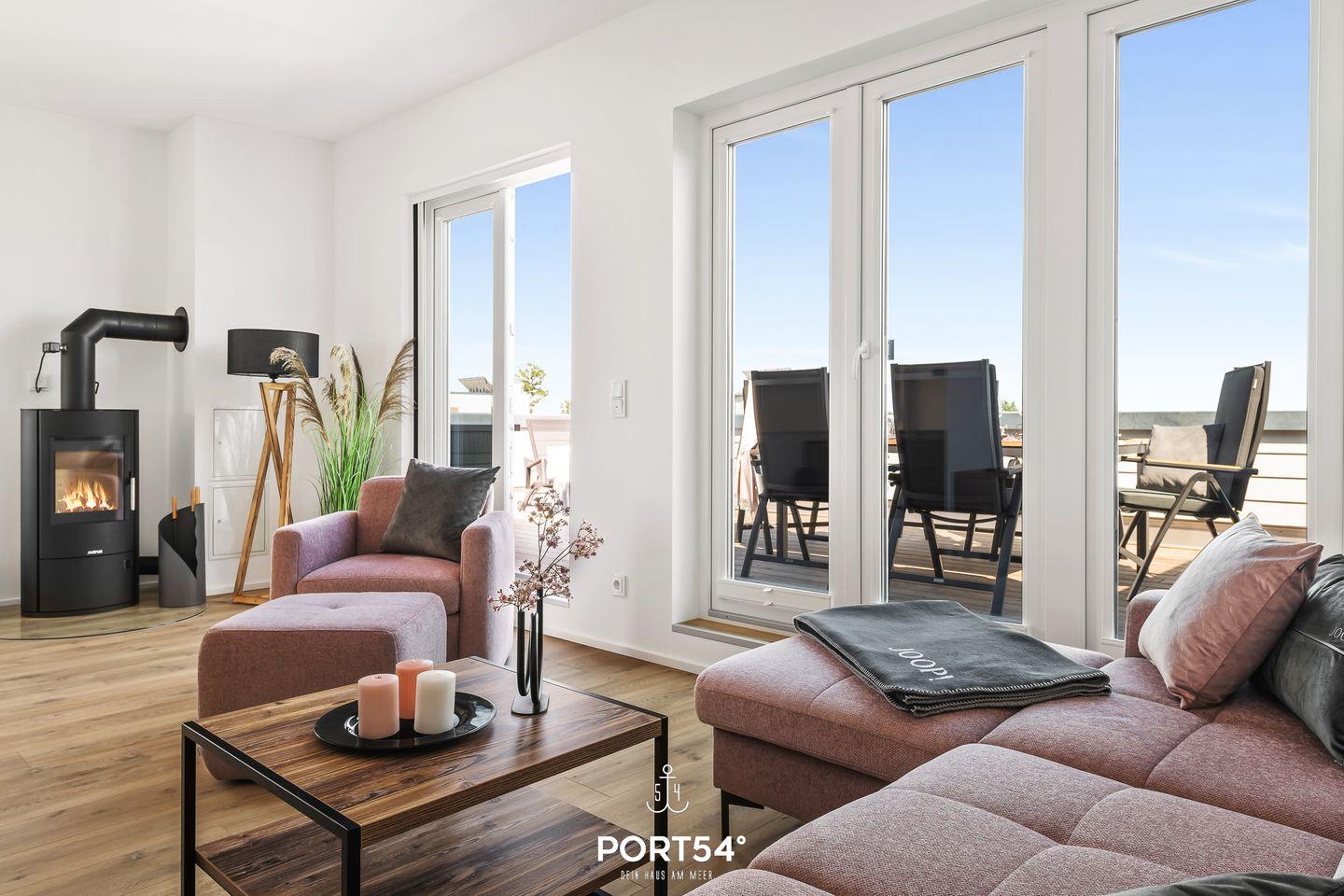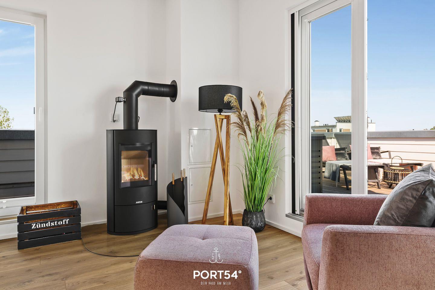 Moderne Ferienwohnung OstseePerle in Olpenitz mit Sauna, Kamin, Dachterrasse und E-Ladesäule für erholsame Urlaubstage.