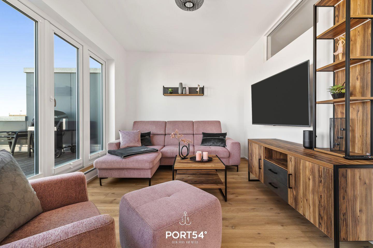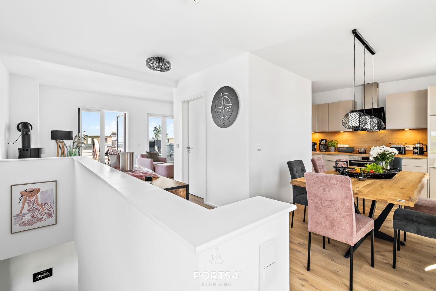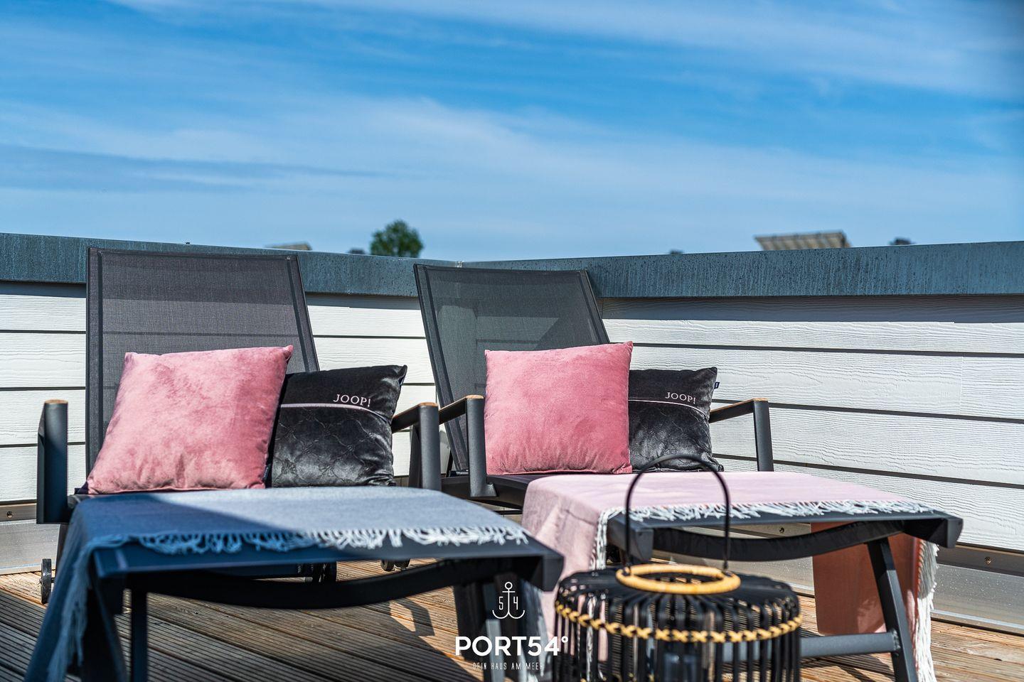 Moderne Ferienwohnung OstseePerle in Olpenitz mit Sauna, Kamin, Dachterrasse und E-Ladesäule für erholsame Urlaubstage.