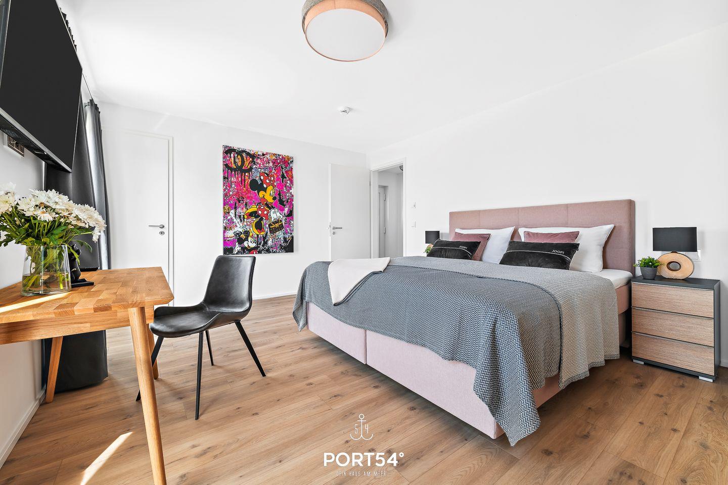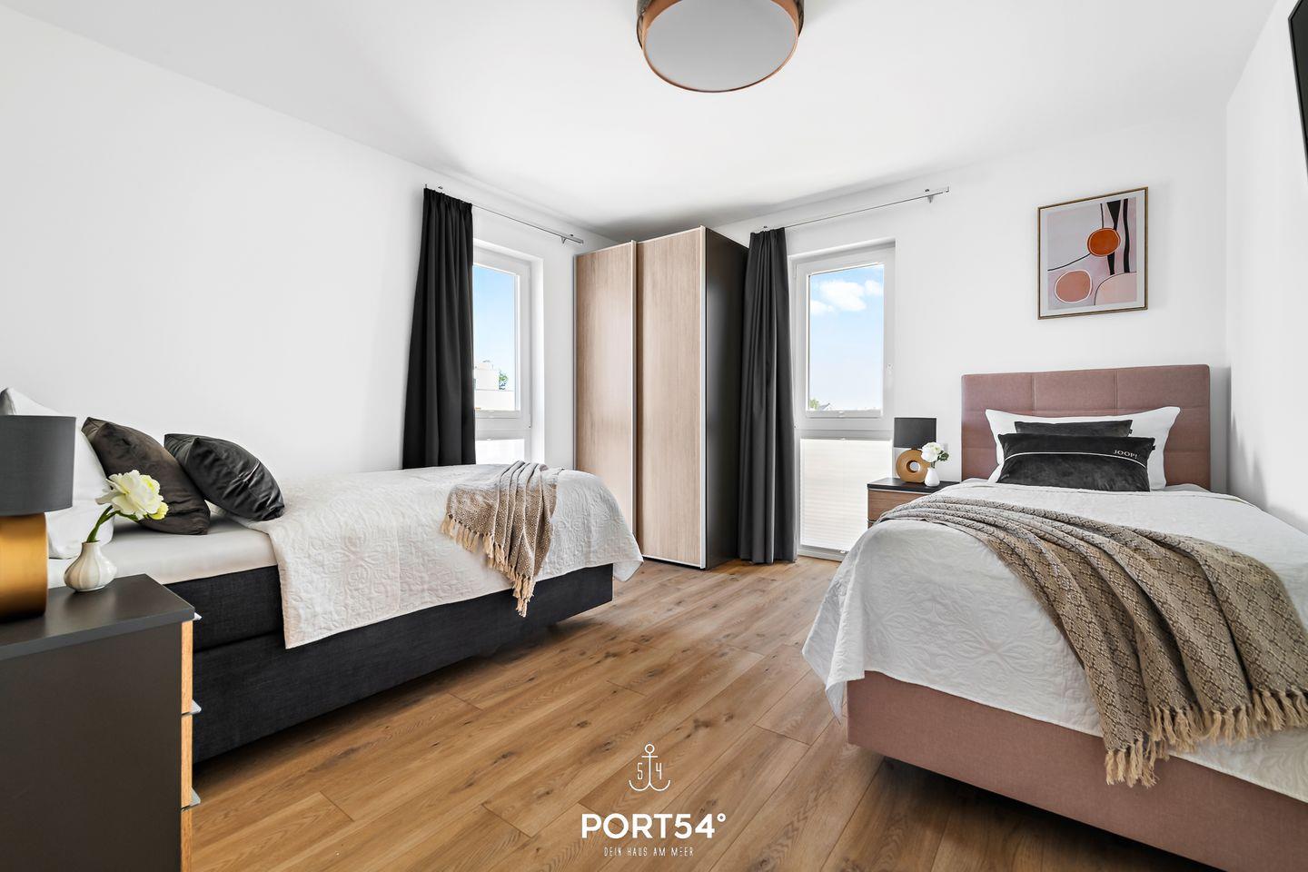 Die Ferienwohnung bietet Ihnen eine voll ausgestattete Küche, bodentiefe Fenster & einen Kamin. Zwei, der drei Schlafzimmer, verfügen über Doppelboxspringbetten, das dritte über 2 Einzelbetten. Zudem gibt es 2 Badezimmer, eines hiervon mit Infrarot-Sauna & großzügiger Dusche & eines mit einer Badewanne zum Entspannen. Bitte beachten Sie, dass der Aufbau des OstseeResort Olpenitz noch nicht abgeschlossen ist und es in der Nähe zu Bautätigkeiten kommen kann.