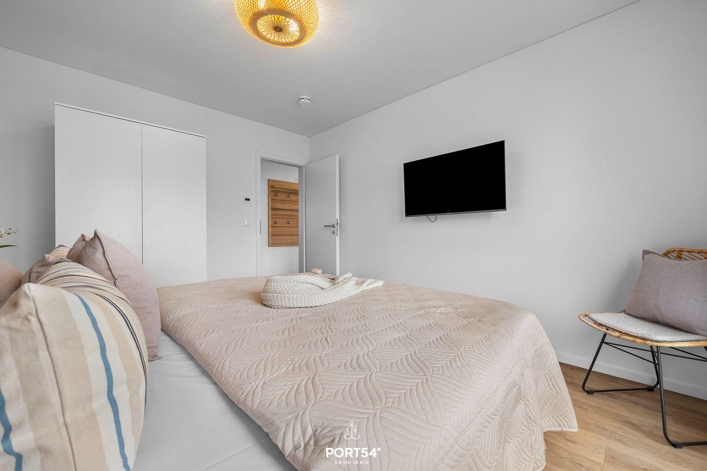 Ein Schlafzimmer ist mit einem Doppelbett (180 × 200 cm) ausgestattet, das zweite Schlafzimmer bietet Dir zusätzlich zu einem Doppelbett (140 × 200 cm) ein Einzelbett (90 × 200 cm).
