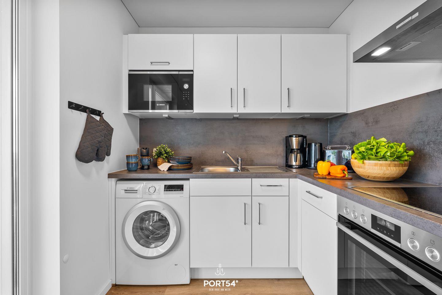 Die offene Küche mit großzügigem Essbereich lädt Dich zum Kochen und Genießen ein.
