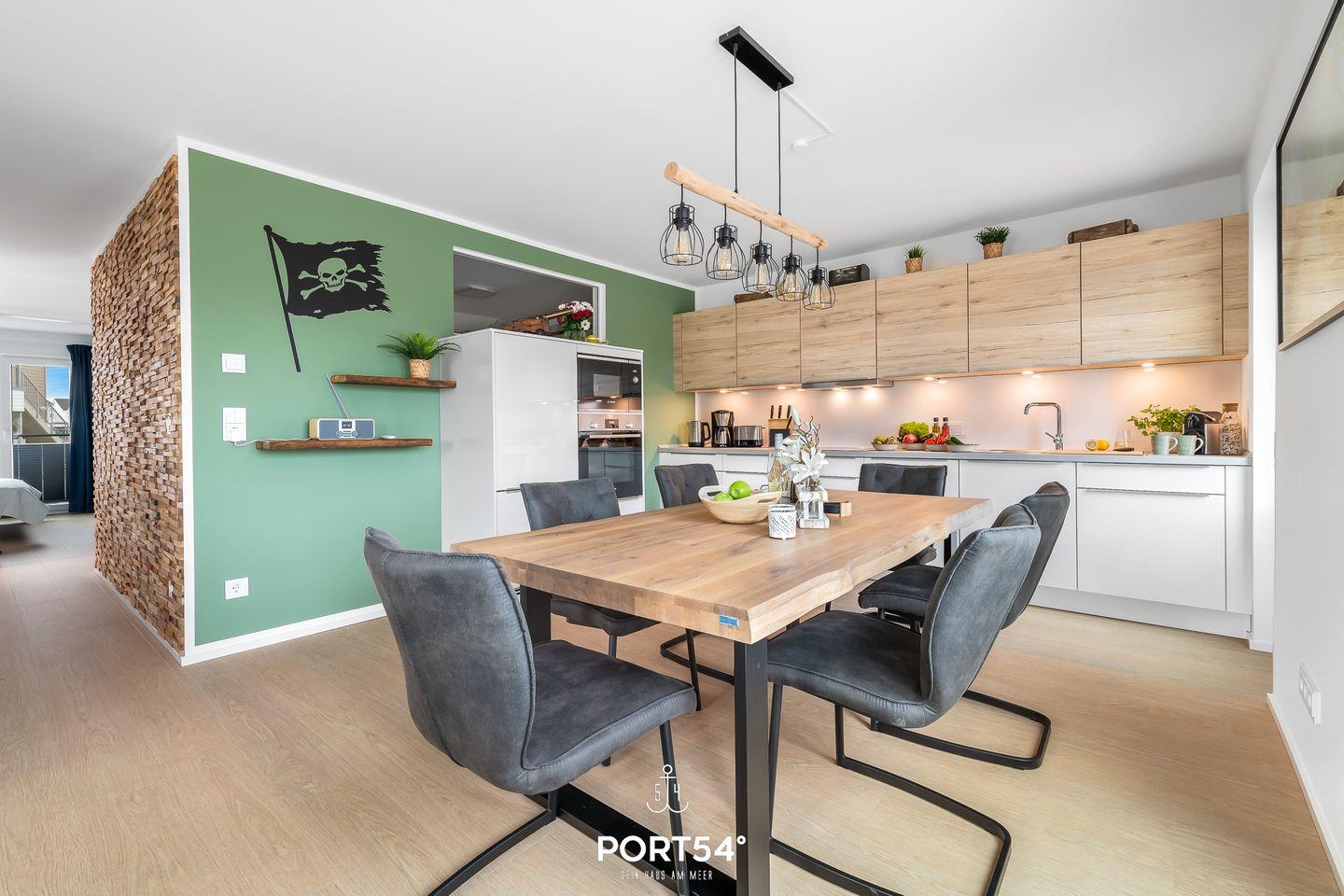 Im lichtdurchfluteten Wohnzimmer mit angrenzender, offener Küche, zwei Schlafzimmern und einem Badezimmer bietet Dir das „Piraten Nest“ alles, was Du für einen Ostseeurlaub brauchst.