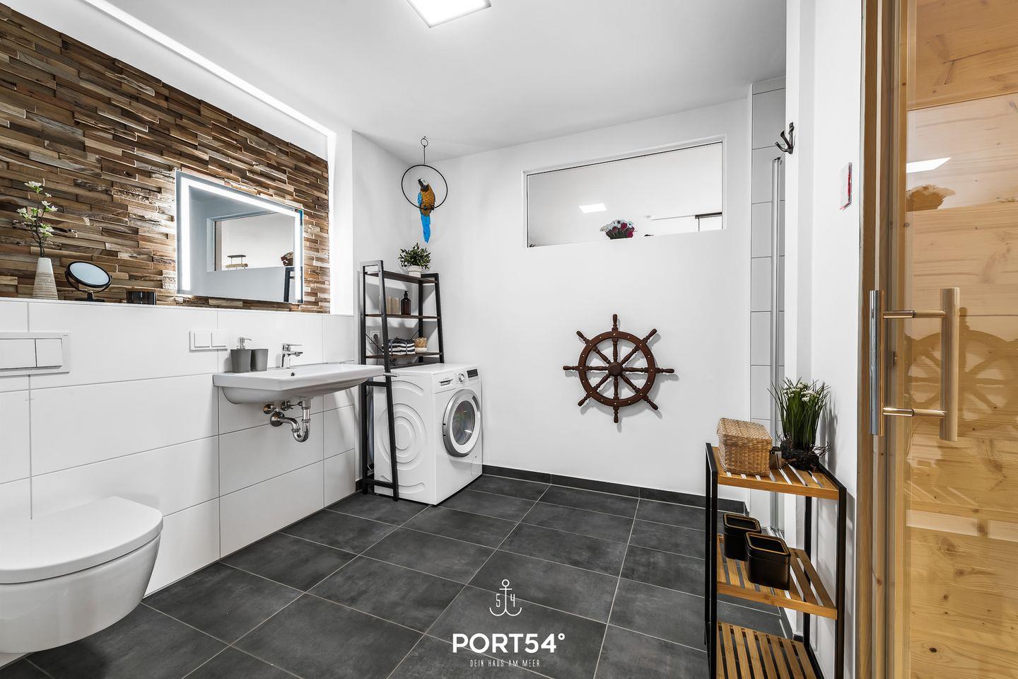 Das Badezimmer verfügt über eine ebenerdige Dusche und für den kleinen Wellnessurlaub über eine Infrarot-Sauna.