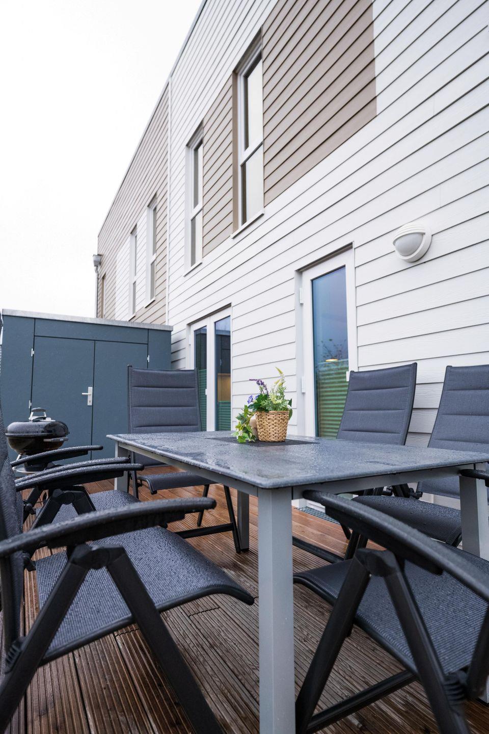 Zur Ferienwohnung gehört eine möblierte Terrasse.