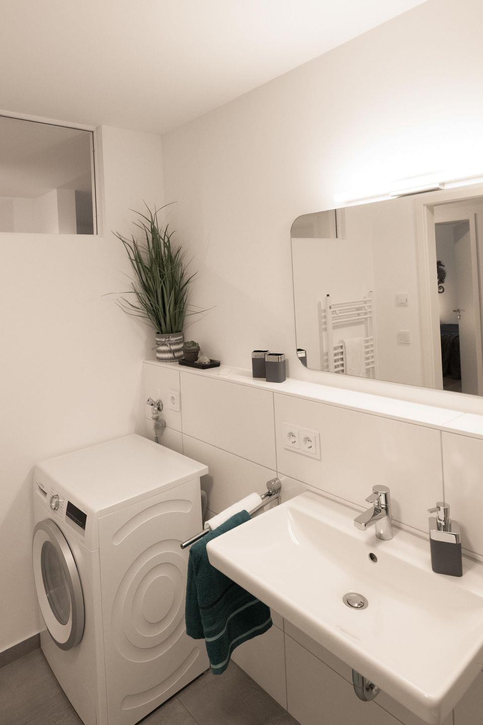 Die Ferienwohnung verfügt über eine Waschmaschine und einen Wäscheständer.