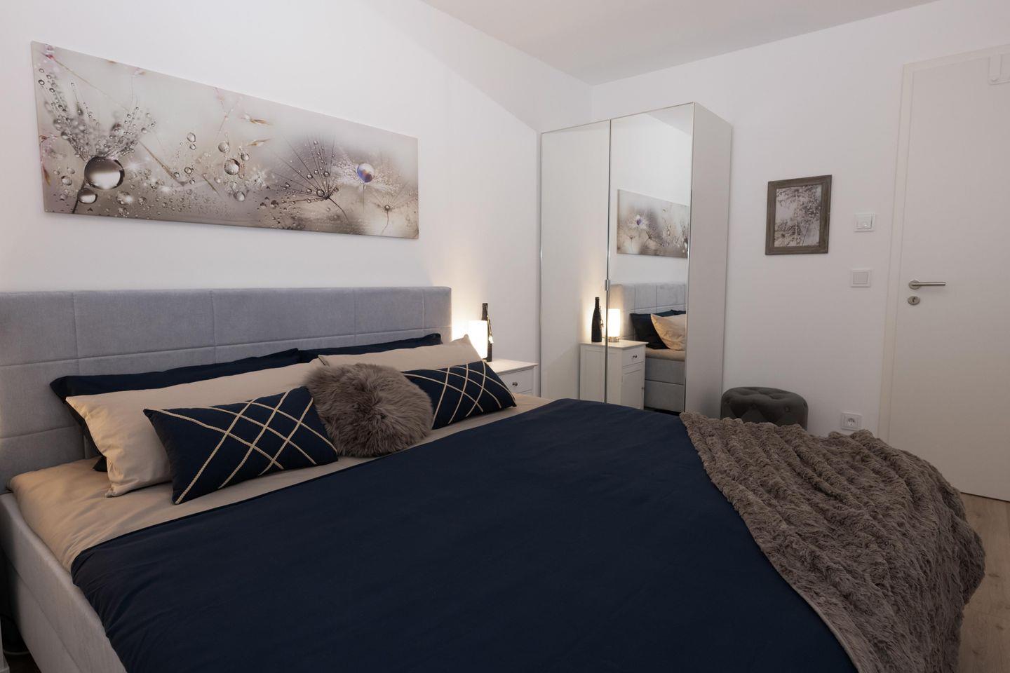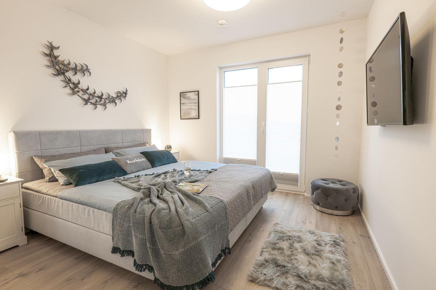 Beide Schlafzimmer verfügen über große Doppelbetten (180×200 cm) und jeweils einen Flatscreen-TV.