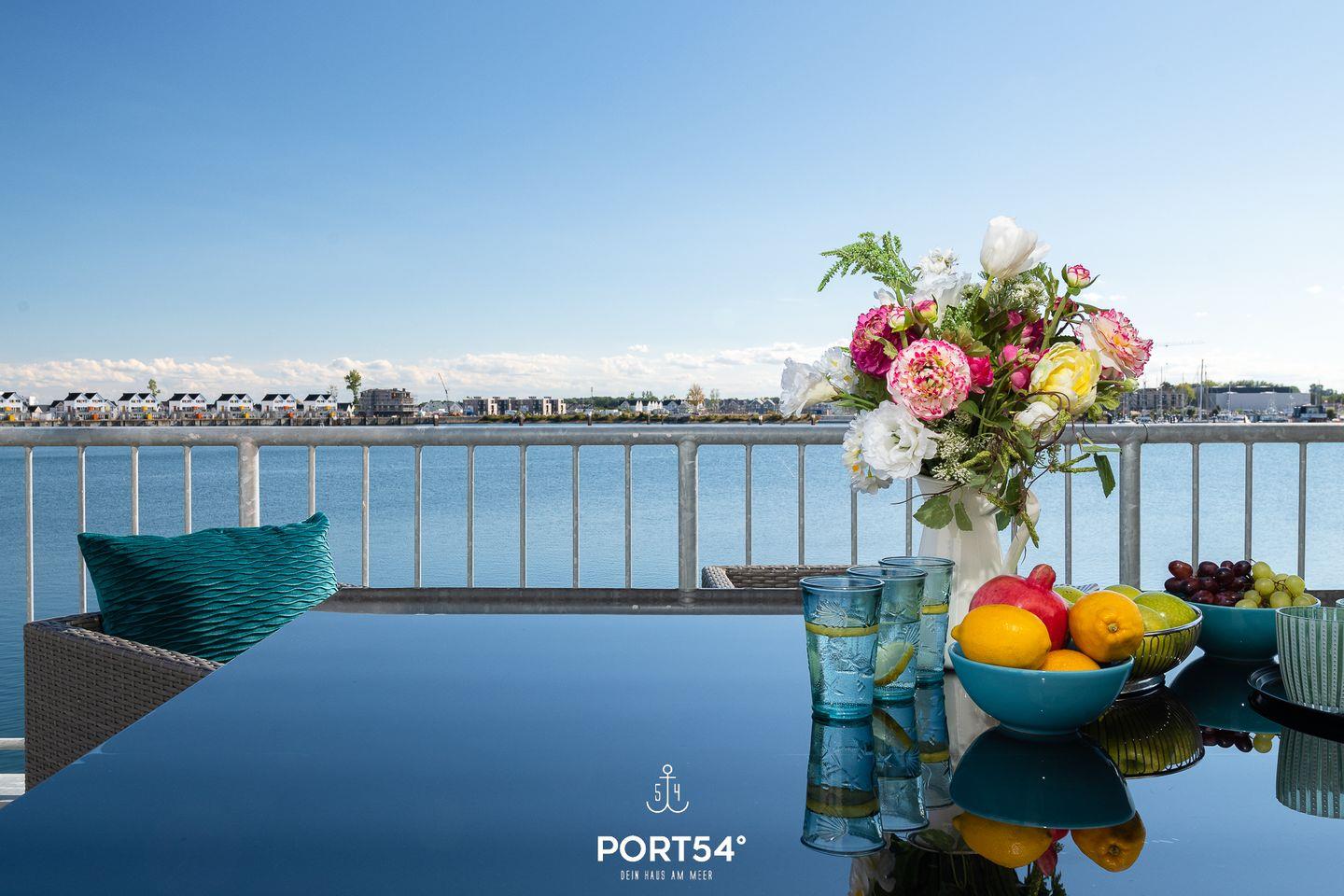 Genießen Sie in der Maisonettewohnung Sea Bay einen fast 360-Grad-Wasserblick mit Terrasse, Kamin und Infrarot-Sauna.