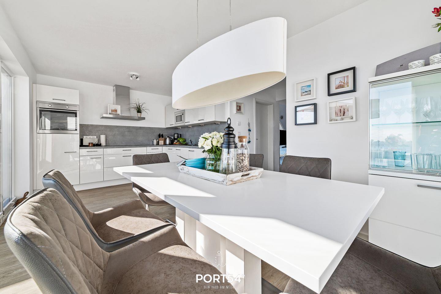 Herzlich willkommen in der Ferienwohnung "Sea Bay" - hier erleben Sie nicht nur einen, sondern gleich zwei atemberaubende Aussichten mit einem fast 360-Grad-Wasserblick! Diese großzügige Wohnung erstreckt sich über zwei Etagen und bietet auf ca. 97m² zu jeder Jahreszeit den perfekten Ausgangspunkt für einen unvergesslichen Ostseeurlaub. Das erste Obergeschoss präsentiert einen lichtdurchfluteten Wohnbereich mit einem einladenden Kaminofen, perfekt für gemütliche Stunden. Hier finden Sie zudem ein modernes Duschbad vor. Die angrenzende und halboffene Küche mit Essbereich gewährt Ihnen den Zugang zur großzügigen Terrasse. Hier lassen sich laue Sommerabende, ausgestattet mit gemütlichen Gartenmöbeln, einem Sonnenschirm und einem praktischen Elektro-Grill, in vollen Zügen genießen. Im zweiten Obergeschoss erwarten Sie zwei Schlafzimmer und ein weiteres Tageslichtbad. Ein Schlafzimmer ist mit einem TV und einem komfortablen Doppelbett (180x200cm) ausgestattet, während das andere mit zwei Einzelbetten (je 90x200cm) erholsame Nächte verspricht. Beide Schlafzimmer lassen sich durch Vorhänge vollständig verdunkeln. Das große Bad besticht nicht nur durch eine Badewanne, sondern auch mit einer Infrarot-Sauna, die für ultimative Entspannung sorgt. Ob Erholung im Wellnessbad, geselliges Kochen in der vollausgestatteten Küche oder gemütliche Abende vor dem Kamin - in der "Sea Bay" findet jeder sein persönliches Wohlfühlplätzchen. Für die kleinsten Gäste stehen ein Kinderreisebett, ein Hochstuhl und ein Hocker bereit. Auch Ihre vierbeinigen Begleiter sind gegen eine Gebühr herzlich willkommen, damit auch sie die Ostsee in vollen Zügen genießen können.