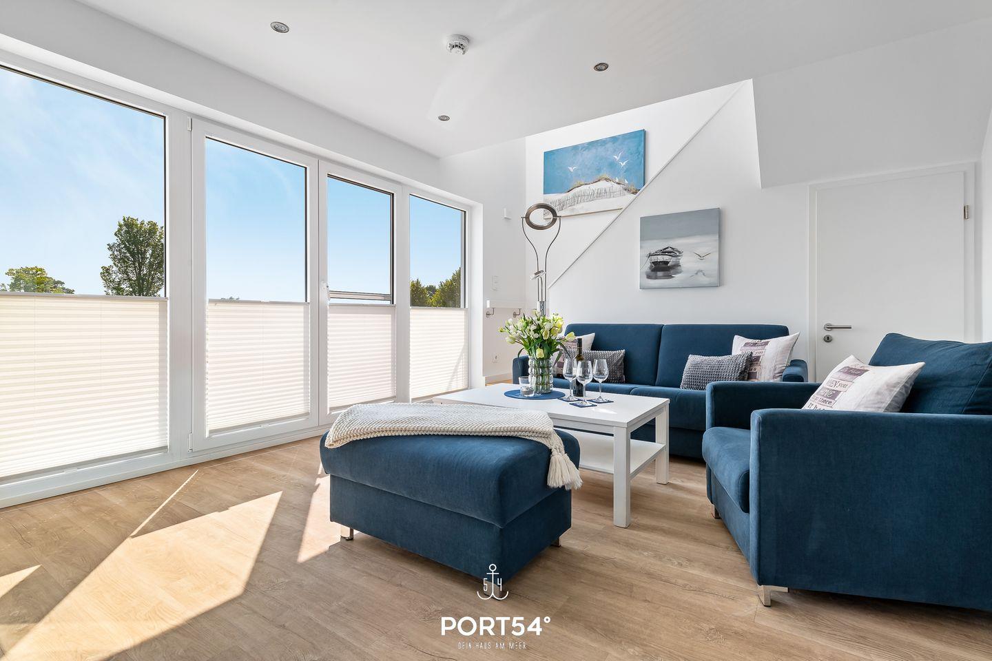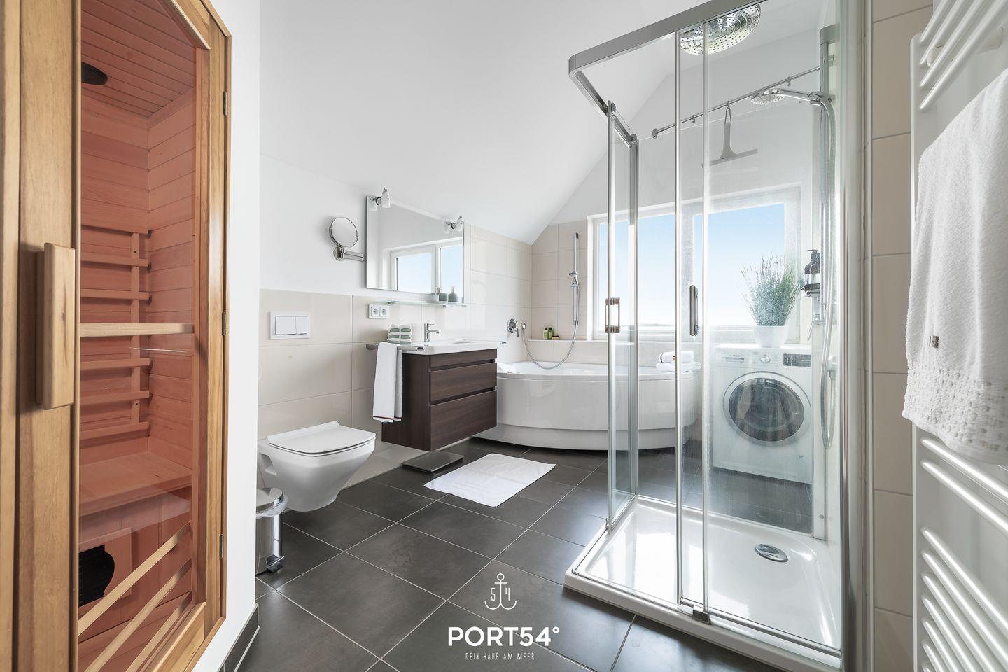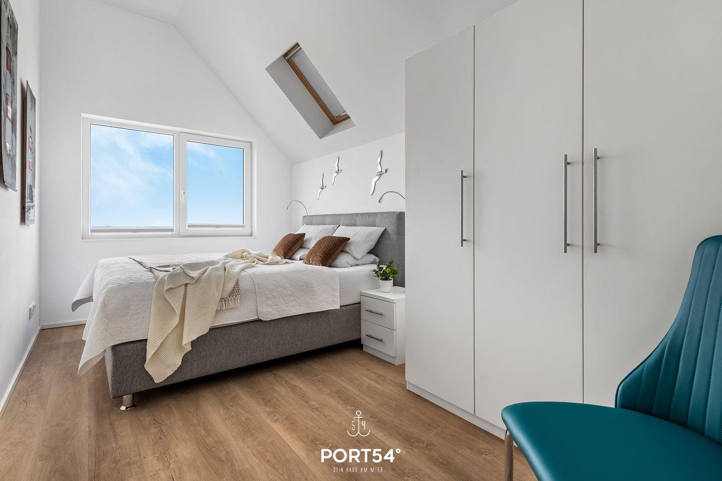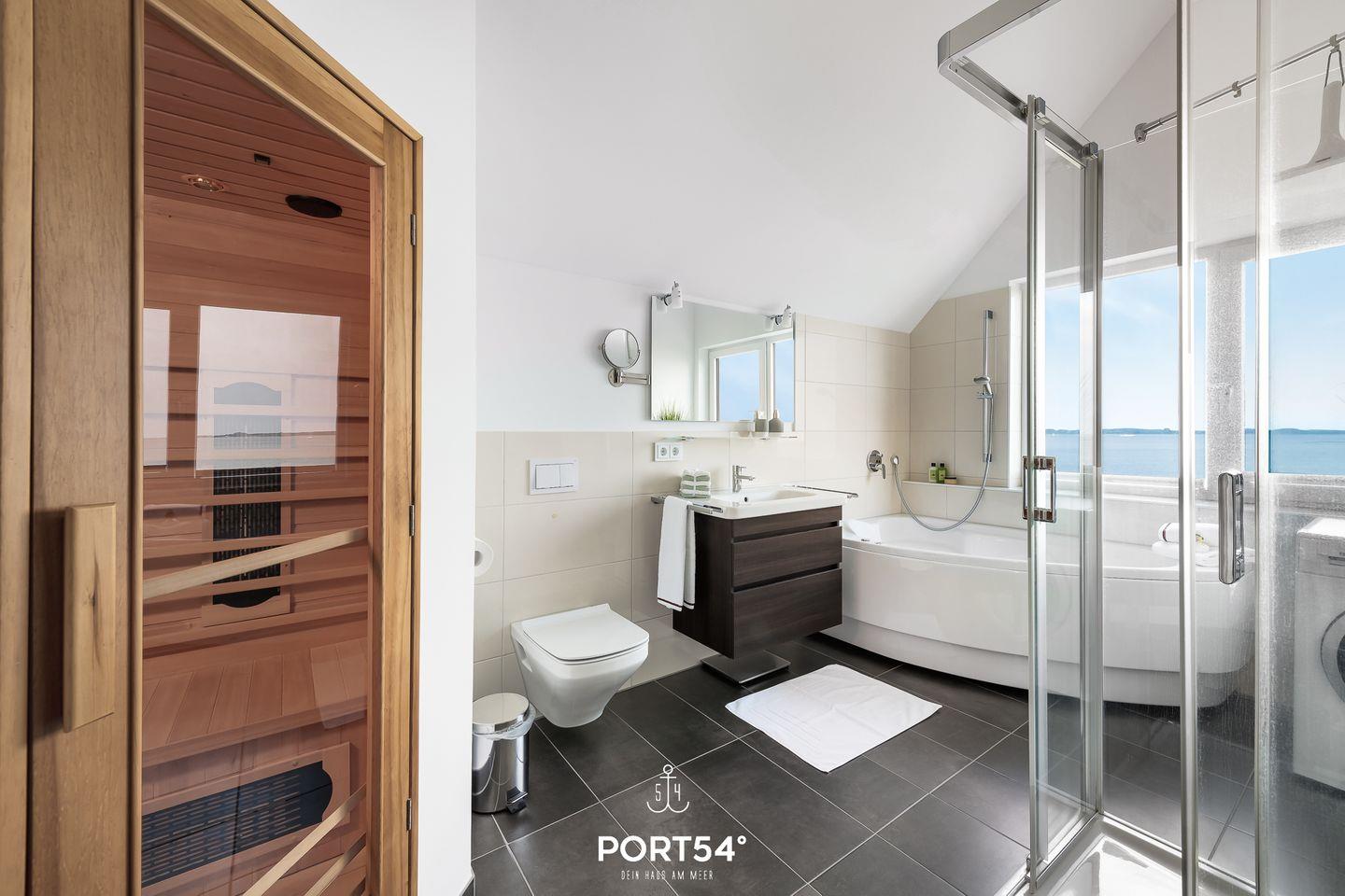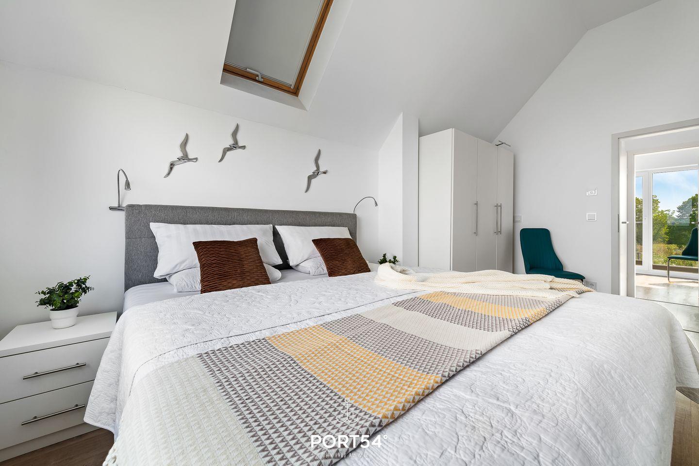 Nur 20 Meter vom Wasser entfernt, direkt am Ufer des malerischen Ostseearms Schlei gelegen, erstreckt sich die traumhafte Ferienwohnung "Fjordblick Schlei" über zwei Etagen (1. + 2. Obergeschoss) und beeindruckt mit ausgewählten Luxusmöbeln. Die atemberaubende Aussicht erwartet Sie schon in der offenen Küche mit Essbereich, dank der Panoramafenster. Treten Sie hinaus auf den Balkon und genießen Sie die fantastische Sicht auf vorbeiziehende Segelboote und die Schleimündung. Das Wohnzimmer öffnet sich zum zweiten Balkon mit Blick ins Grüne – ein perfekter Ort, um die Seele baumeln zu lassen. Hier befindet sich auch das Gäste-WC mit Dusche für zusätzlichen Komfort. Im 2. Obergeschoss erwartet Sie ein Vollbad, das mit einer Dusche, einer Whirlwanne und einer privaten Infrarot-Sauna für pure Entspannung im Urlaub sorgt. Die beiden Schlafzimmer auf dieser Etage sind mit einem Boxspring Doppelbett (180x200cm) und zwei Einzelbetten (90x200cm) ausgestattet, bieten ausreichend Stauraum und eine fantastische Aussicht.