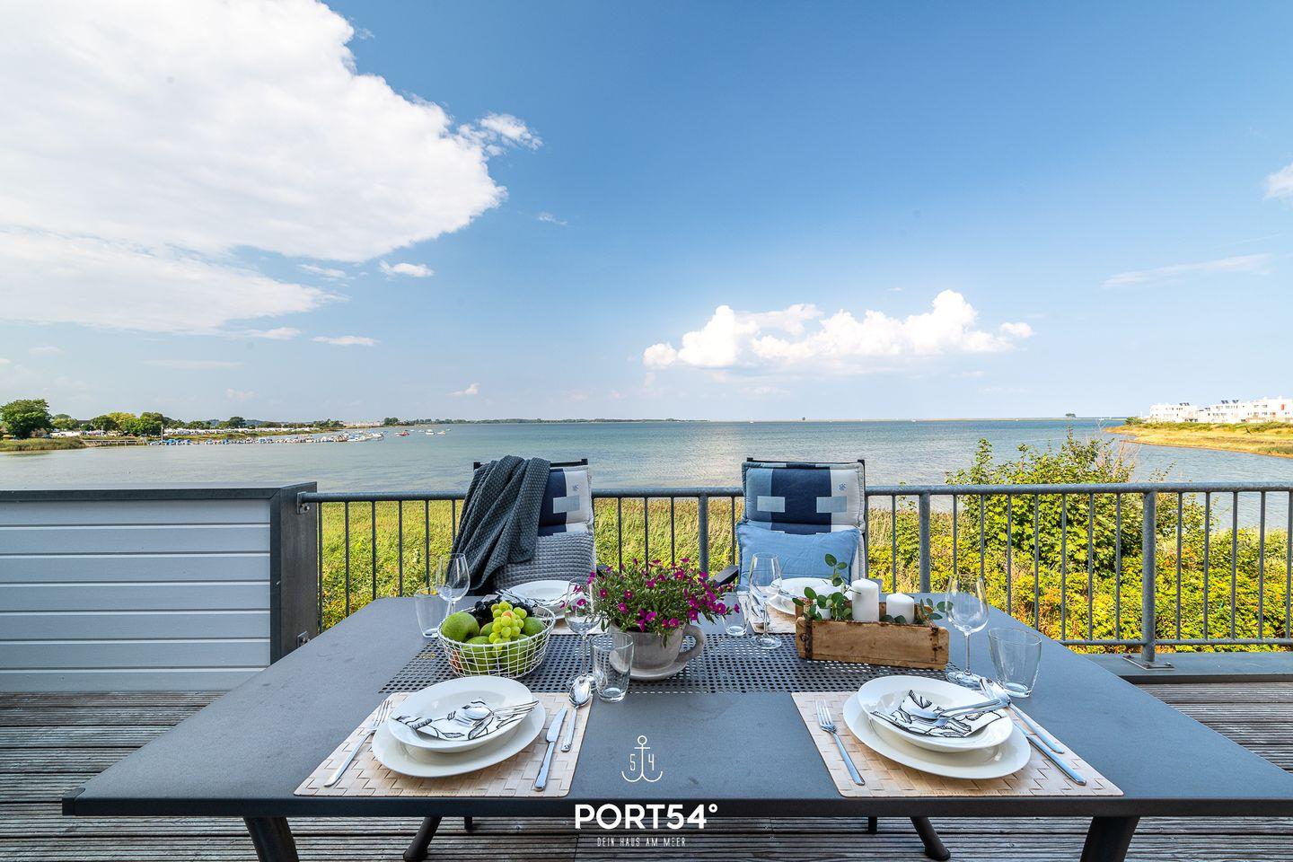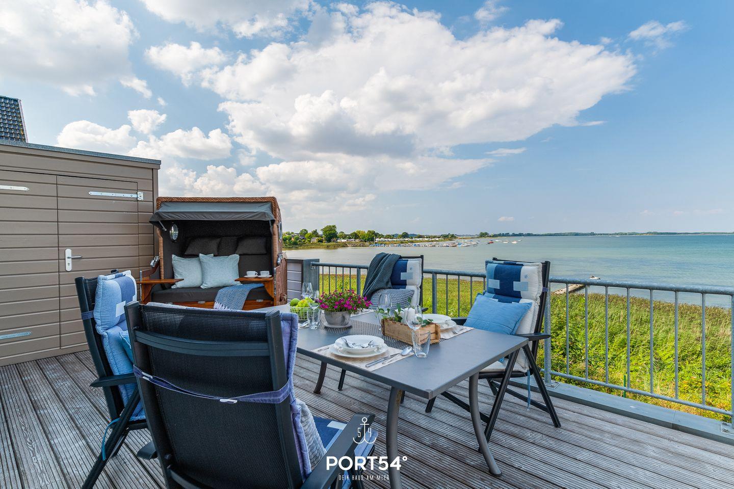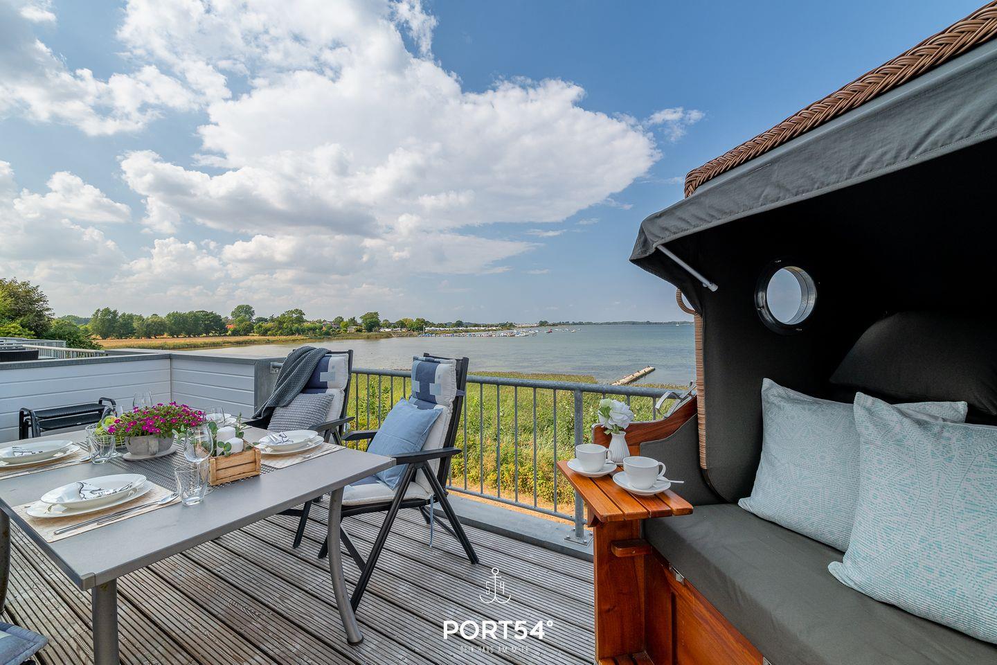 Luxuriöse Ferienwohnung mit Fjordblick, Sauna, Kamin und zwei Balkonen direkt am Wasser in Olpenitz.