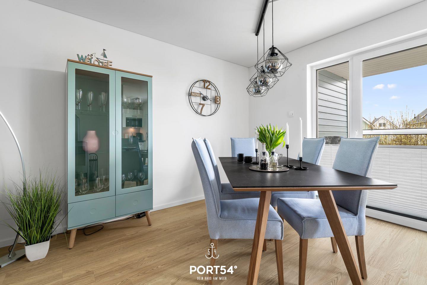 Der großzügige Wohn- und Essbereich ist modern eingerichtet und durch bodentiefe Fenster besonders lichtdurchflutet.