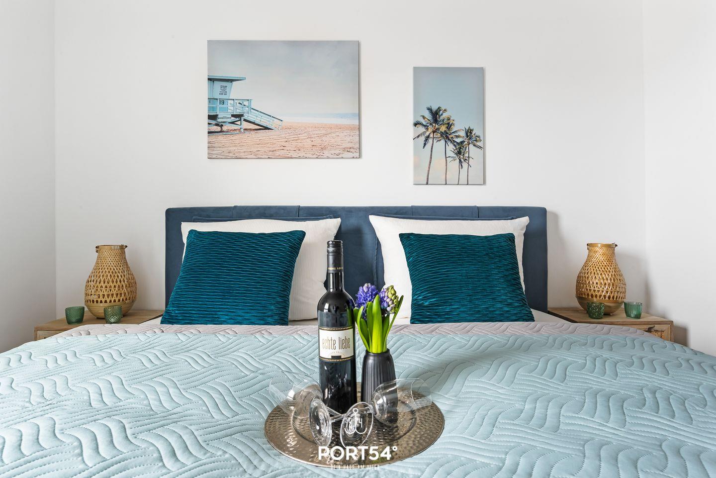 Die Ferienwohnung "Henrys Beachbude" befindet sich im neuerbauten OstseeResort Olpenitz. Die luxuriöse, loft-ähnliche Ferienwohnung mit 120m² bietet Platz für bis zu 6 Personen. Sowohl durch die bodentiefen Fenster als auch auf der großen Dachterrasse genießen Sie atemberaubende Ausblicke auf das Wasser. Die Ferienwohnung verfügt über einen Wohn-/Essbereich mit Kamin und eine offene, perfekt ausgestattete Küche sowie 3 Schlafzimmer. Zwei der drei Schlafzimmer verfügen über gemütliche Doppelboxspringbetten (180x200cm). Eins der Zimmer bietet zusätzlich einen TV sowie eine kleine Terrasse. Das dritte Schlafzimmer verfügt über zwei einladende Einzelbetten (je 90x200cm). Alle Schlafzimmer versprechen dank Verdunkelung und Insektenschutzgittern einen erholsamen Schlaf. In jeder Etage befindet sich ein modernes und helles Badezimmer. Im 1. OG können Sie in der Badewanne entspannen. Ebenfalls steht Ihnen hier eine Waschmaschine zur Verfügung. Im 2. OG finden Sie eine ebenerdige Dusche, sowie eine Infrarot-Sauna - gönnen Sie sich eine Auszeit! Auf der teilweise überdachten Terrasse können Sie dank des Elektrogrills gemütliche Grillabende mit toller Aussicht auf das Hafenbecken veranstalten. Alternativ können Sie es sich im Strandkorb gemütlich machen. Es steht Ihnen vor der Unterkunft ein eigener PKW Parkplatz zur Verfügung.