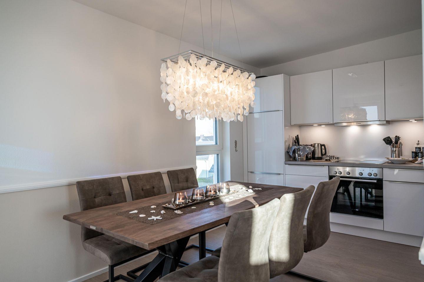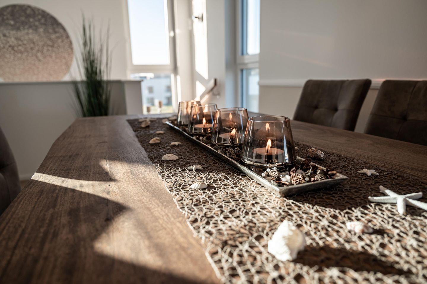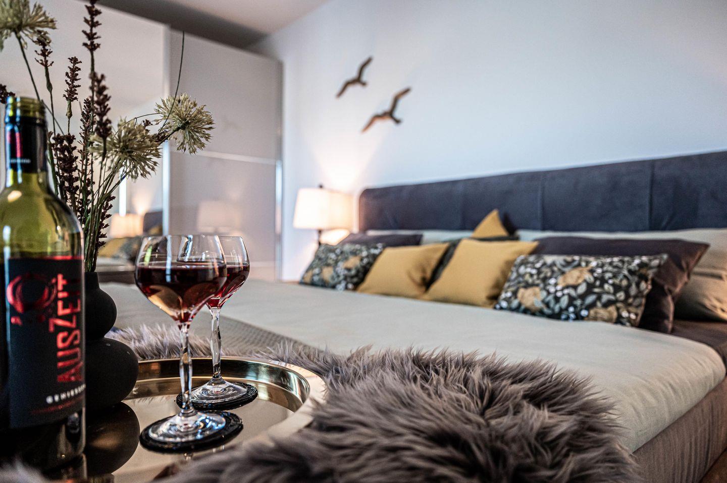 Die schöne Ferienwohnung "cloud nine‘‘ bietet auf 130m² Platz für bis zu 6 Personen. Die moderne Wohnung erstreckt sich über zwei Etagen und bietet einen wundervollen Blick auf die Ostsee. Die gesamte Wohnung wurde von der Wohlfühlmanufaktur stilvoll und hochwertig eingerichtet. Hier fühlen Sie sich schnell wie zu Hause. Die Wohnküche bietet Ihnen alles, um einen gemeinsamen Kochabend zu veranstalten. Im Winter, wenn Sie von einem langen Spaziergang nach Hause kommen, spendet der Kamin mollige Wärme. Danach können Sie sich es auf dem Sofa bequem machen und noch einen Film auf dem Flachbild-TV schauen. Drei Schlafzimmer bieten genügend Platz für 6 Personen. Zwei Schlafzimmer verfügen jeweils über 2 Einzelbetten und das Dritte über ein Doppelboxspringbett. Alle Schlafzimmer sind mit Verdunklungsmöglichkeiten und Flachbild-TVs ausgestattet, perfekt für die nächtliche Ruhe. Zwei Badezimmer bieten genügend Platz, um sich morgens in Ruhe fertig zu machen. Das erste Bad ist mit einer ebenerdigen Dusche ausgestattet, sowie mit einer Infrarot-Sauna, die Ihnen gerade in der kalten Jahreszeit viel Wärme und Entspannung nach einem ausgiebigen Spaziergang schenkt. Im zweiten Badezimmer können Sie auch in der Badewanne den Tag ausklingen lassen. In der gesamten Unterkunft gibt es Highspeed-WLAN. Außerdem verfügt die Wohnung über eine Waschmaschine und einen Wäscheständer. Auf der 32m² großen Dachterrasse können Sie perfekt den atemberaubenden Blick aufs Wasser genießen, tagsüber auf den Gartenliegen entspannen und abends gemeinsam bei einem Barbecue zusammensitzen. Das Haus verfügt über eine Barbecue-Ecke mit einem Holzkohlegrill. Auch ein eigener PKW Stellplatz ist vor der Tür vorhanden.