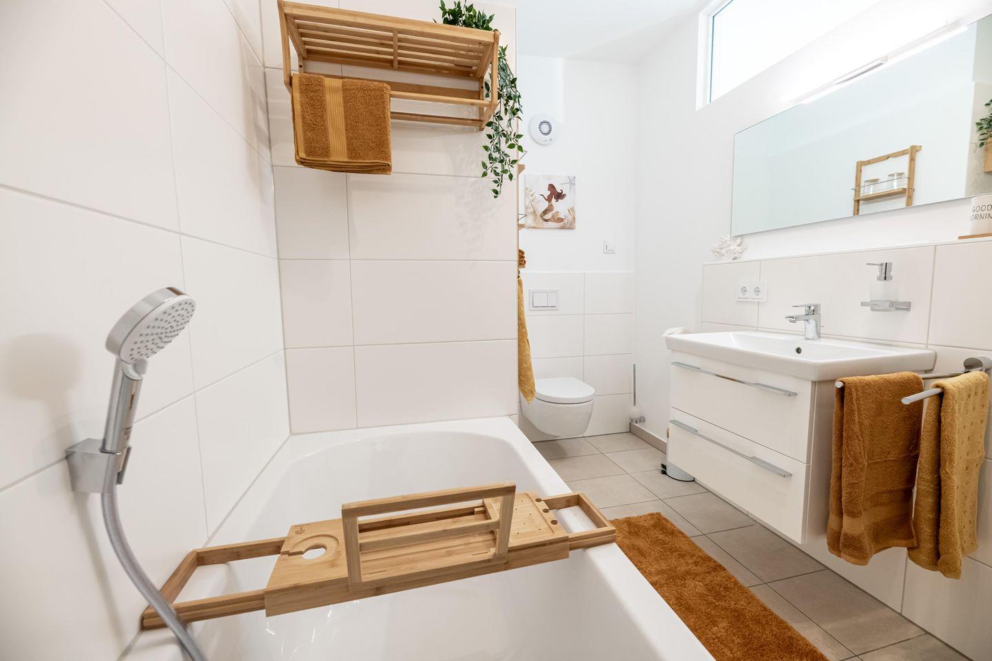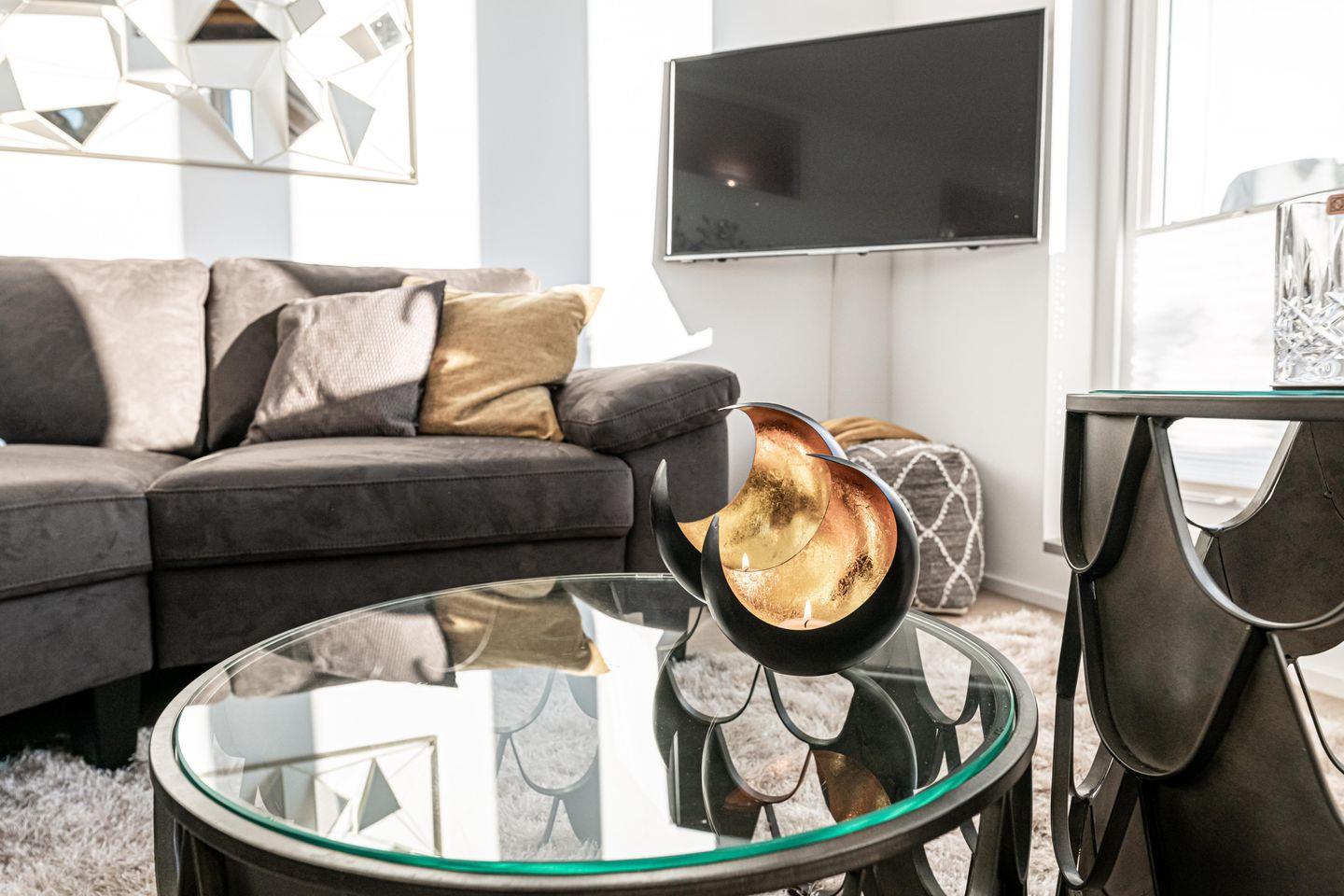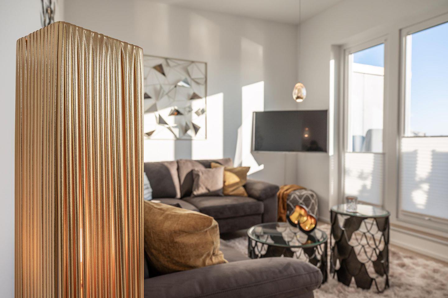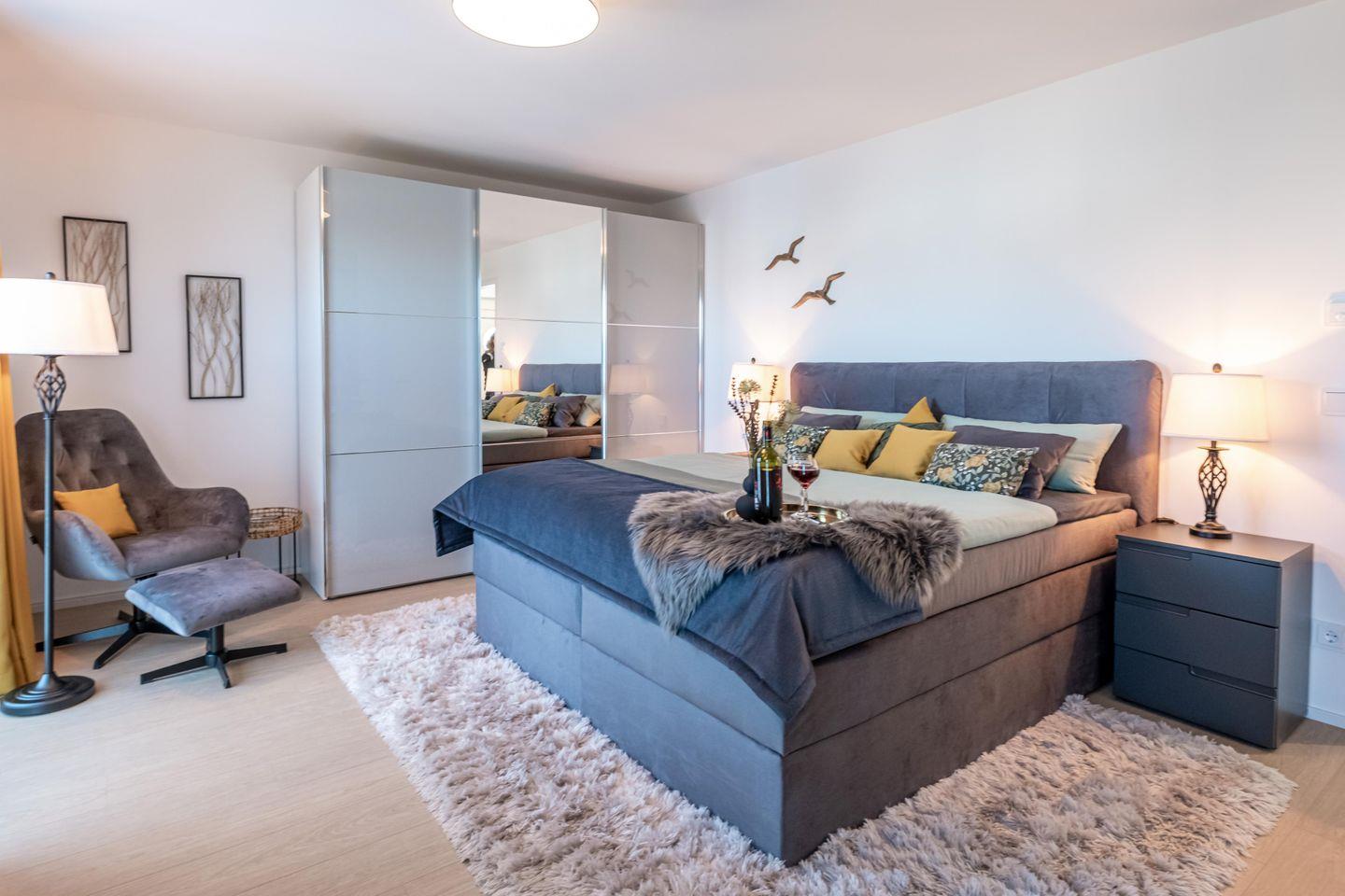 Die schöne Ferienwohnung "cloud nine‘‘ bietet auf 130m² Platz für bis zu 6 Personen. Die moderne Wohnung erstreckt sich über zwei Etagen und bietet einen wundervollen Blick auf die Ostsee. Die gesamte Wohnung wurde von der Wohlfühlmanufaktur stilvoll und hochwertig eingerichtet. Hier fühlen Sie sich schnell wie zu Hause. Die Wohnküche bietet Ihnen alles, um einen gemeinsamen Kochabend zu veranstalten. Im Winter, wenn Sie von einem langen Spaziergang nach Hause kommen, spendet der Kamin mollige Wärme. Danach können Sie sich es auf dem Sofa bequem machen und noch einen Film auf dem Flachbild-TV schauen. Drei Schlafzimmer bieten genügend Platz für 6 Personen. Zwei Schlafzimmer verfügen jeweils über 2 Einzelbetten und das Dritte über ein Doppelboxspringbett. Alle Schlafzimmer sind mit Verdunklungsmöglichkeiten und Flachbild-TVs ausgestattet, perfekt für die nächtliche Ruhe. Zwei Badezimmer bieten genügend Platz, um sich morgens in Ruhe fertig zu machen. Das erste Bad ist mit einer ebenerdigen Dusche ausgestattet, sowie mit einer Infrarot-Sauna, die Ihnen gerade in der kalten Jahreszeit viel Wärme und Entspannung nach einem ausgiebigen Spaziergang schenkt. Im zweiten Badezimmer können Sie auch in der Badewanne den Tag ausklingen lassen. In der gesamten Unterkunft gibt es Highspeed-WLAN. Außerdem verfügt die Wohnung über eine Waschmaschine und einen Wäscheständer. Auf der 32m² großen Dachterrasse können Sie perfekt den atemberaubenden Blick aufs Wasser genießen, tagsüber auf den Gartenliegen entspannen und abends gemeinsam bei einem Barbecue zusammensitzen. Das Haus verfügt über eine Barbecue-Ecke mit einem Holzkohlegrill. Auch ein eigener PKW Stellplatz ist vor der Tür vorhanden.