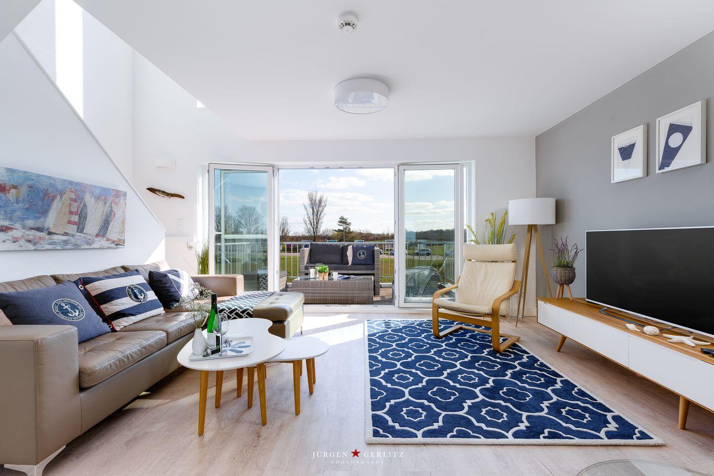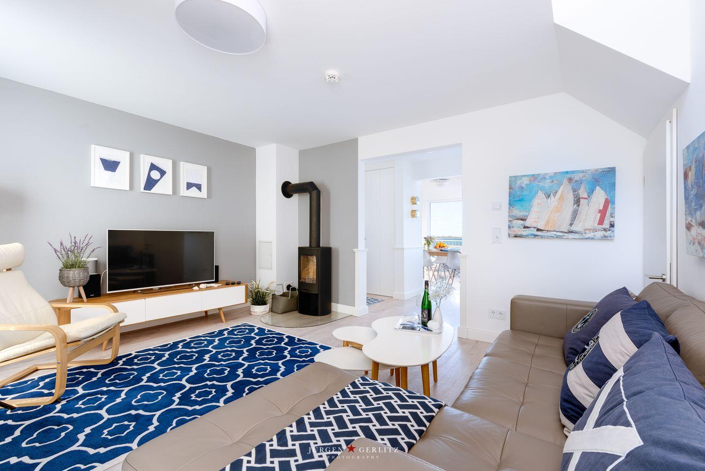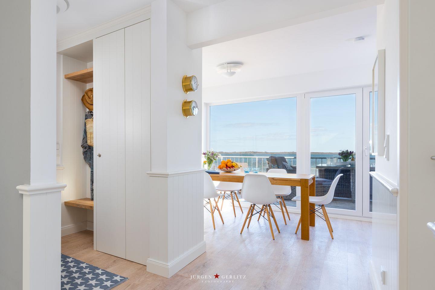 Bereits beim Betreten werden Sie von einer einladenden Atmosphäre empfangen. Die Panoramafenster im Essbereich, im Schlafzimmer und im großzügigen Badezimmer eröffnet Euch einen atemberaubenden Panoramablick auf vorbeiziehende Segelboote und die malerische Schleimündung.