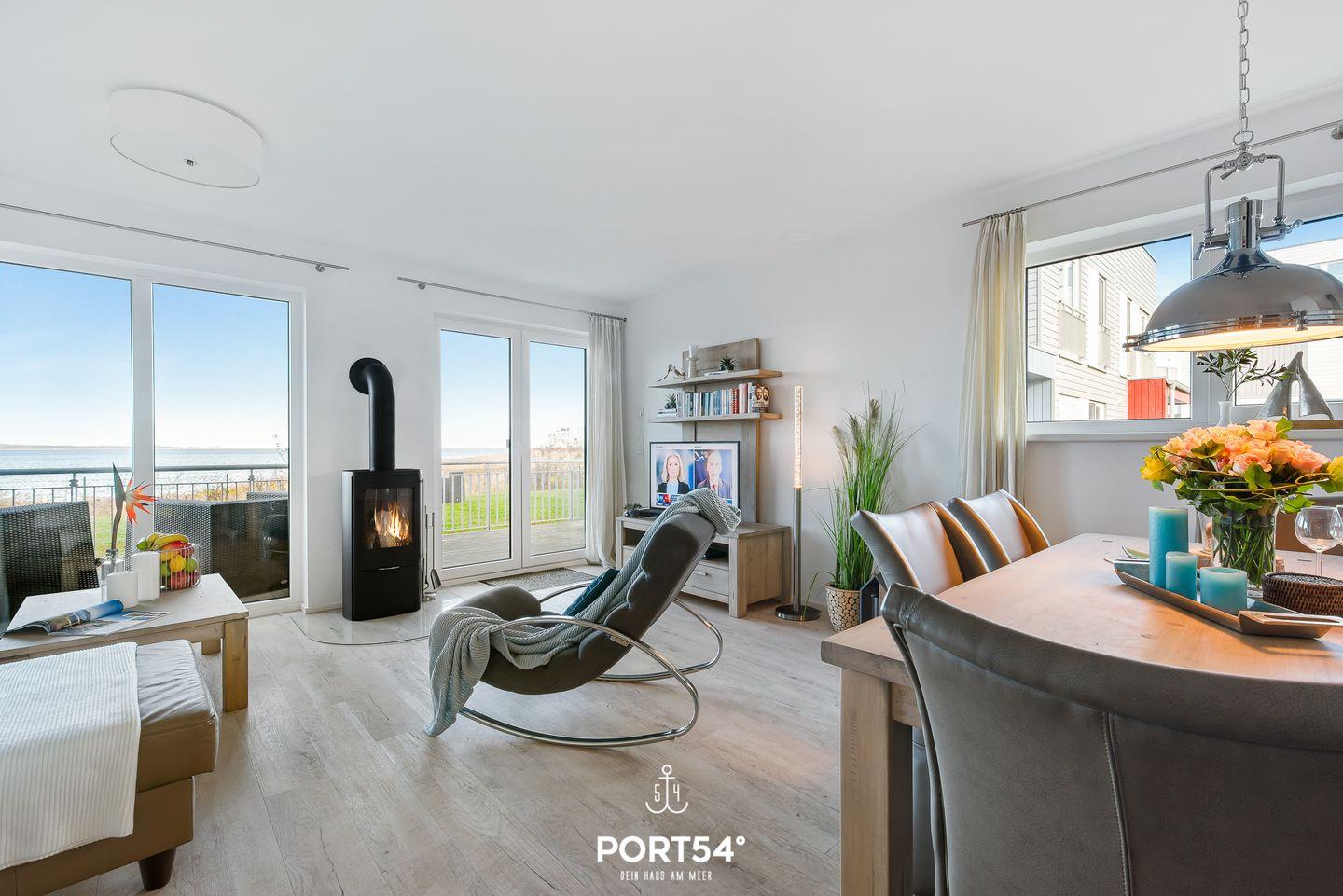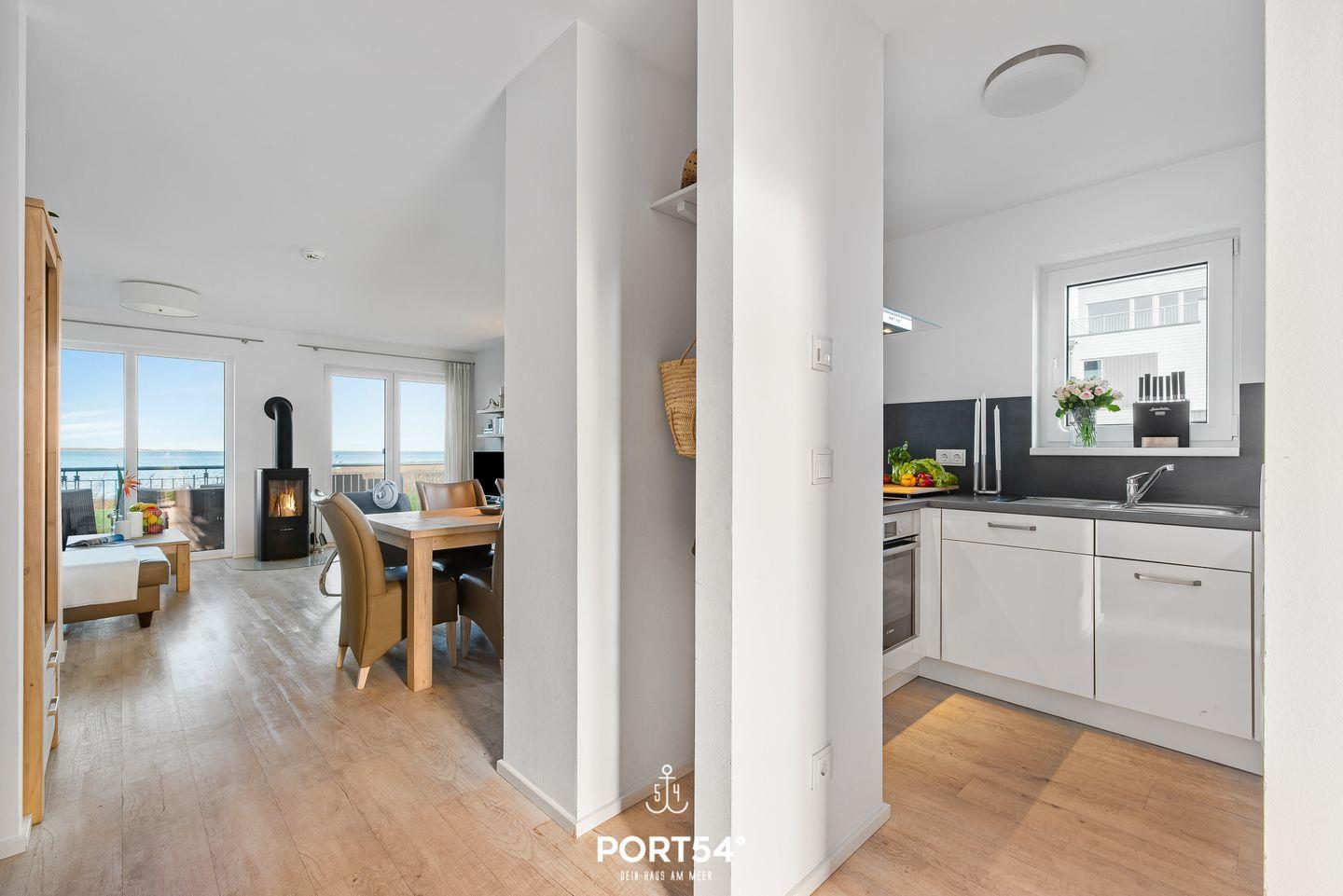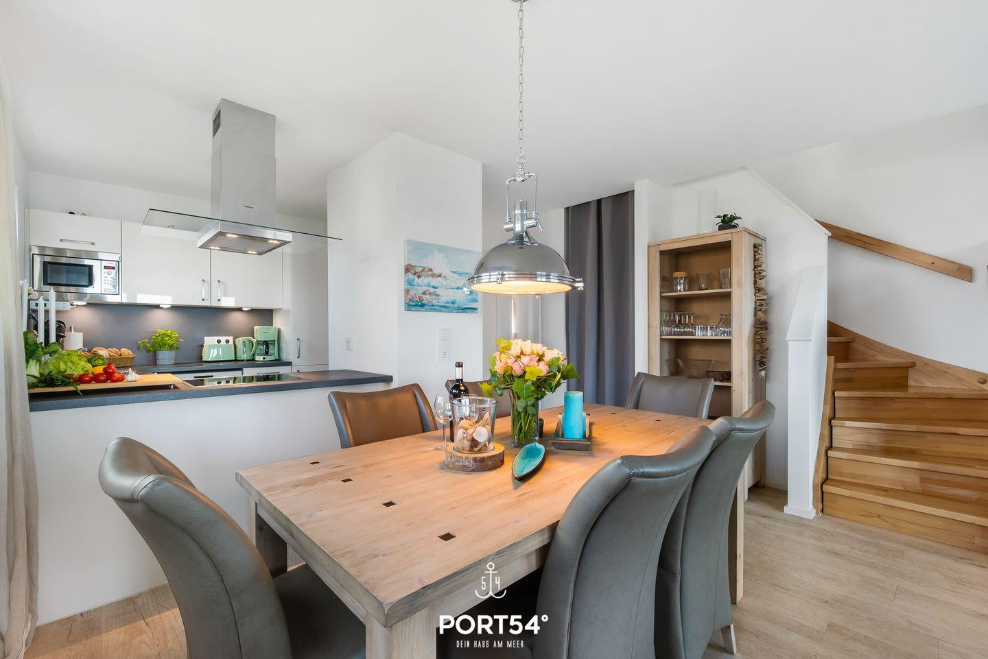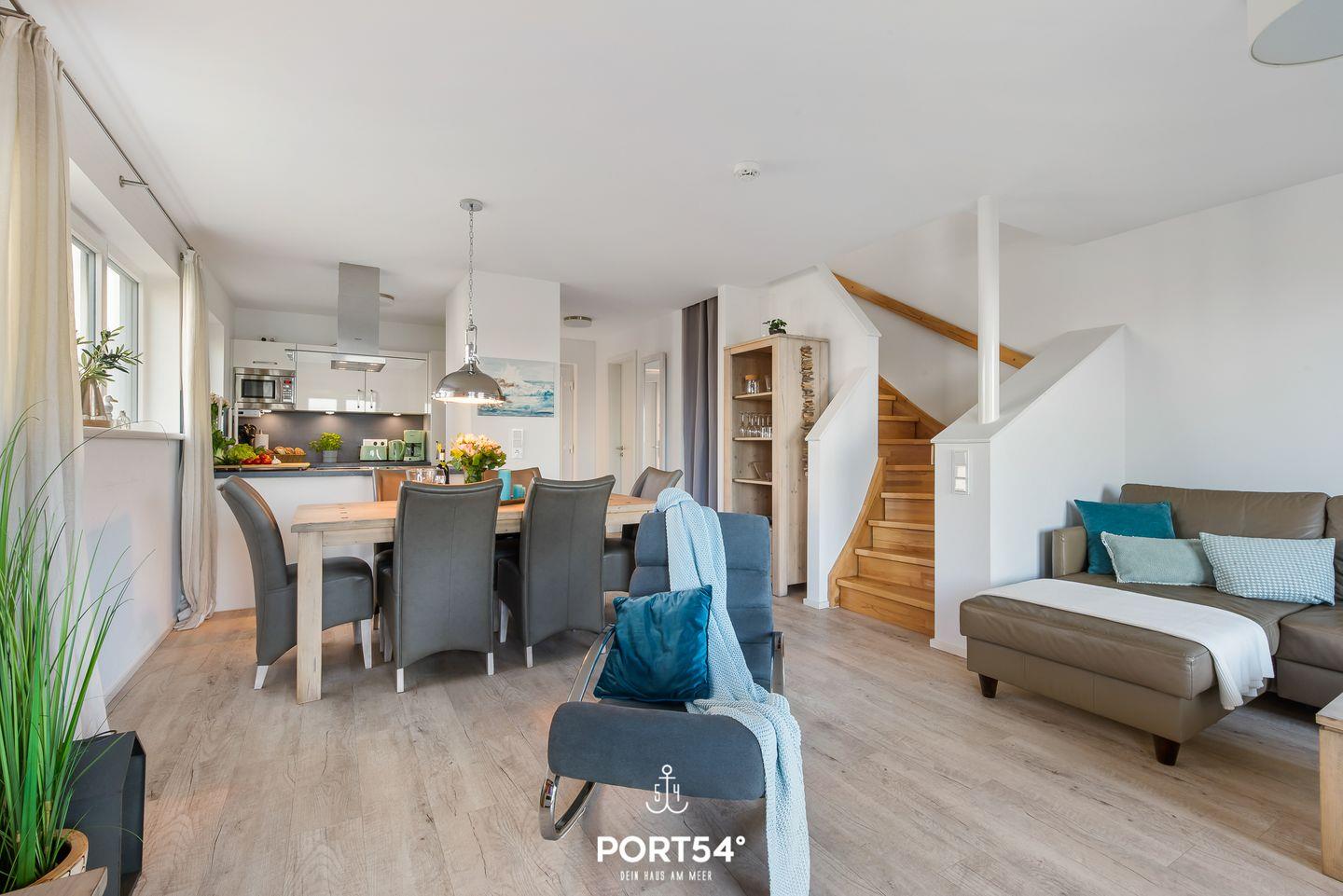 Diese traumhafte Doppelhaushälfte bietet allen Luxus, den man sich wünschen kann! Nach Betreten dieser Doppelhaushälfte finden Sie sich im modernen und exklusiv eingerichteten Wohn- und Essbereich wieder. Dank seiner bodentiefen Panoramafenster ist es ein lichtdurchfluteter Raum mit einem atemberaubenden Ausblick auf die Schleimündung und die Ostsee. Von hier aus gelangen Sie zur Terrasse, auf der Sie hervorragend frühstücken oder mit dem hauseigenen Grill leckere Menüs zubereiten können. Der Kaminofen im Wohnzimmer trägt zur Wohlfühlatmosphäre bei und bietet Ihnen Entspannung pur an den kälteren Tagen. Die gut ausgestattete Küche ist offen gestaltet und bietet Ihnen so die Möglichkeit beim Kochen alles im Blick zu haben. Ein Duschbad rundet das Raumangebot im Erdgeschoss ab. Im 1.Obergeschoss befinden sich die beiden Schlafzimmer mit Verdunkelungsmöglichkeiten. Das eine Schlafzimmer ist mit zwei Einzelbetten und einem Kleiderschrank ausgestattet. Die Einzelbetten können selbstverständlich an einander geschoben werden. Das andere Schlafzimmer bietet Ihnen ein Doppelbett und trumpft mit einem direkten Balkonzugang auf. Das Highlight auf dieser Etage ist das große Wellnessbad mit Whirlwanne, Dusche und finnischer Sauna. Besonders erwähnenswert ist die Dachterrasse, auf der Sie sicherlich viel Zeit verbringen werden. Der 360° Weitblick auf die Schlei, die Schleimündung, die Ostsee, sowie die Marina des Resorts ist einfach traumhaft. Ein kostenfreier Parkplatz befindet sich direkt vor der Unterkunft.