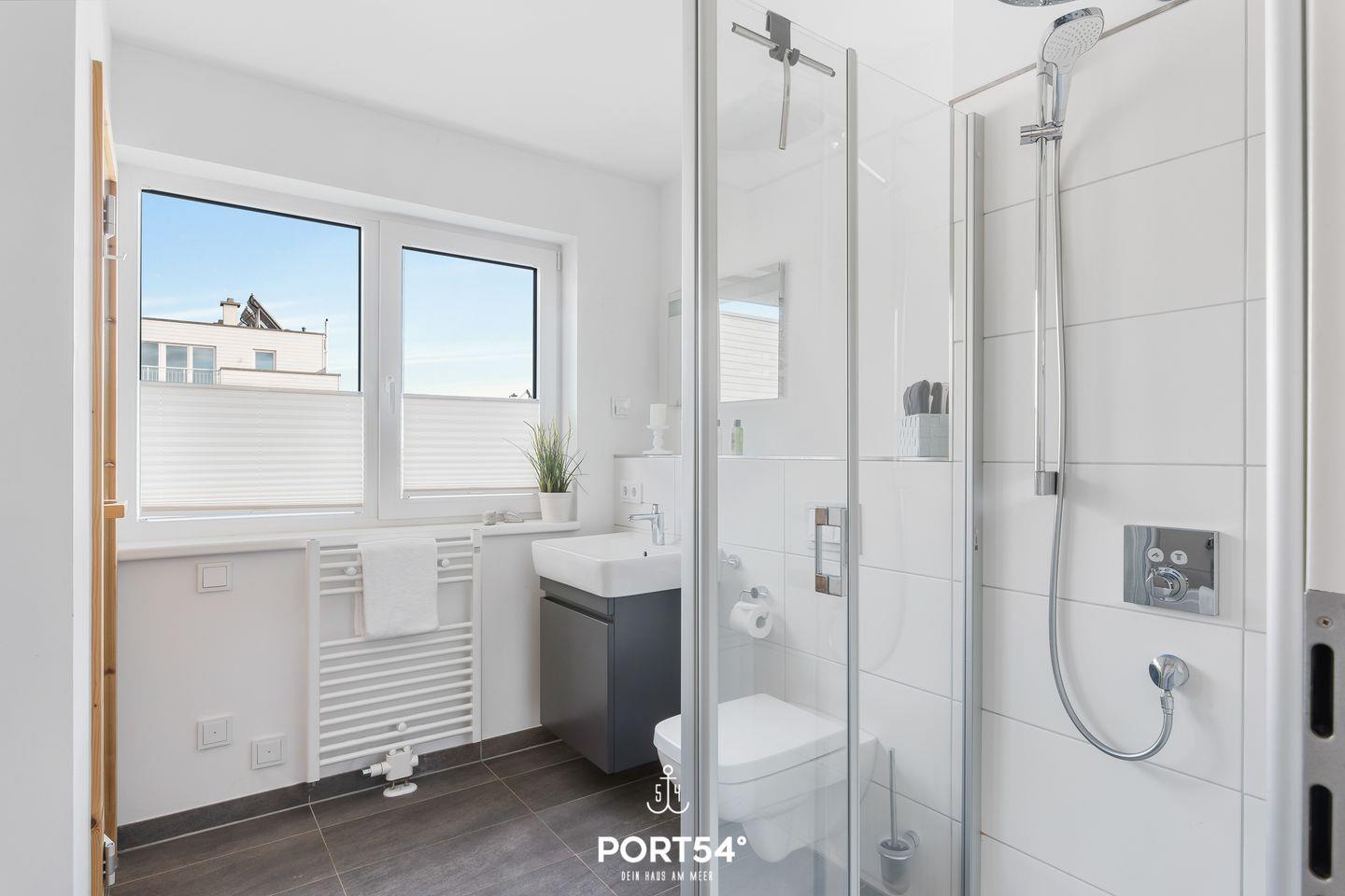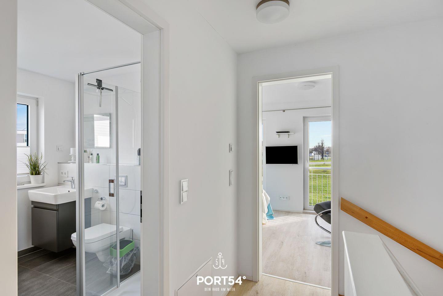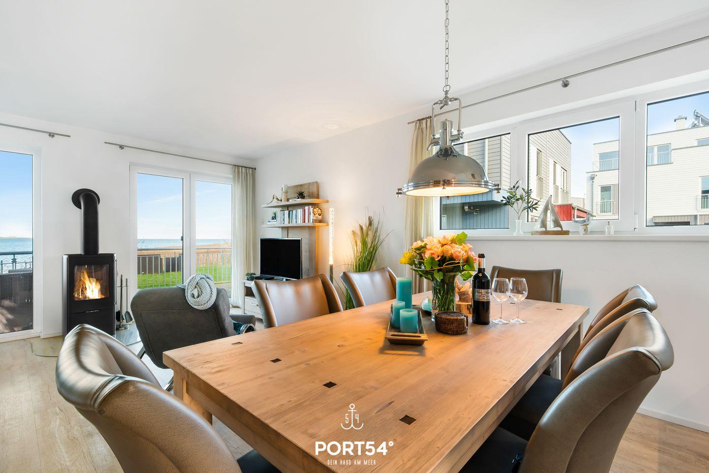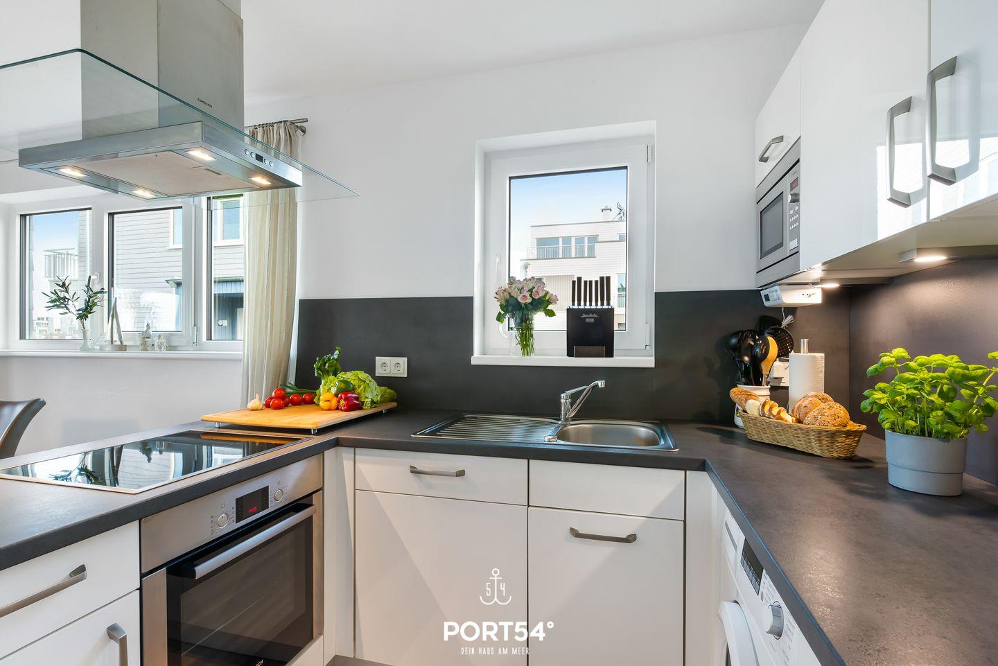 Diese traumhafte Doppelhaushälfte bietet allen Luxus, den man sich wünschen kann! Nach Betreten dieser Doppelhaushälfte finden Sie sich im modernen und exklusiv eingerichteten Wohn- und Essbereich wieder. Dank seiner bodentiefen Panoramafenster ist es ein lichtdurchfluteter Raum mit einem atemberaubenden Ausblick auf die Schleimündung und die Ostsee. Von hier aus gelangen Sie zur Terrasse, auf der Sie hervorragend frühstücken oder mit dem hauseigenen Grill leckere Menüs zubereiten können. Der Kaminofen im Wohnzimmer trägt zur Wohlfühlatmosphäre bei und bietet Ihnen Entspannung pur an den kälteren Tagen. Die gut ausgestattete Küche ist offen gestaltet und bietet Ihnen so die Möglichkeit beim Kochen alles im Blick zu haben. Ein Duschbad rundet das Raumangebot im Erdgeschoss ab. Im 1.Obergeschoss befinden sich die beiden Schlafzimmer mit Verdunkelungsmöglichkeiten. Das eine Schlafzimmer ist mit zwei Einzelbetten und einem Kleiderschrank ausgestattet. Die Einzelbetten können selbstverständlich an einander geschoben werden. Das andere Schlafzimmer bietet Ihnen ein Doppelbett und trumpft mit einem direkten Balkonzugang auf. Das Highlight auf dieser Etage ist das große Wellnessbad mit Whirlwanne, Dusche und finnischer Sauna. Besonders erwähnenswert ist die Dachterrasse, auf der Sie sicherlich viel Zeit verbringen werden. Der 360° Weitblick auf die Schlei, die Schleimündung, die Ostsee, sowie die Marina des Resorts ist einfach traumhaft. Ein kostenfreier Parkplatz befindet sich direkt vor der Unterkunft.