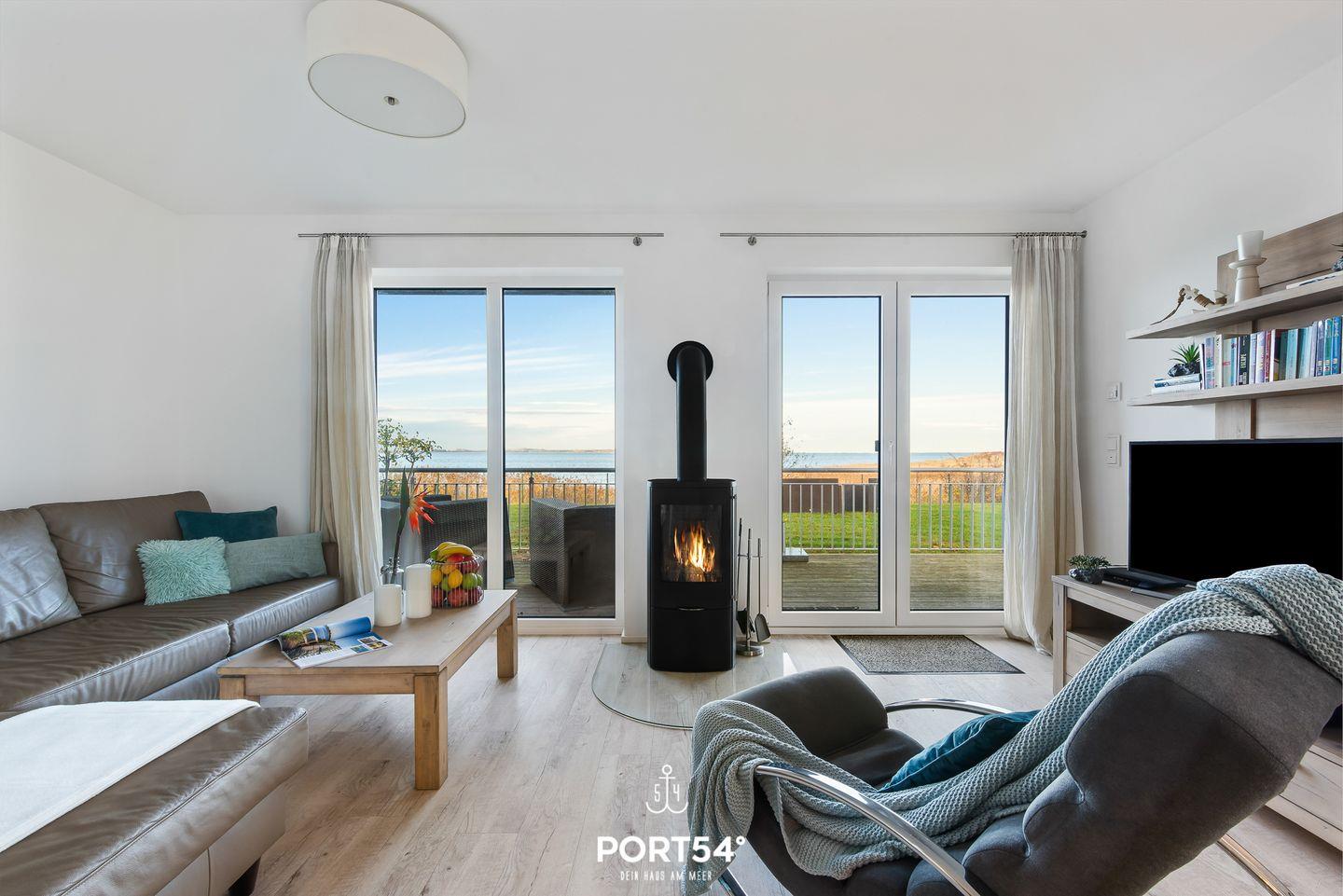 Luxuriöse Doppelhaushälfte mit Sauna, Kamin und 360° Dachterrasse direkt am Wasser in Olpenitz.